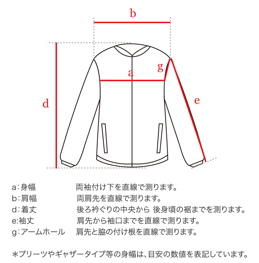 サイズ | 身幅 | 肩幅 | 着丈 | 袖丈 | アームホール |