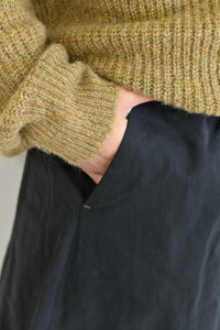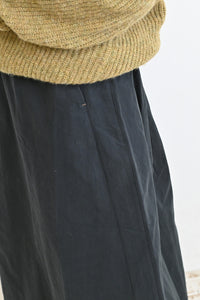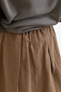 腰回りはギャザーとタック使いでややコンパクトに、