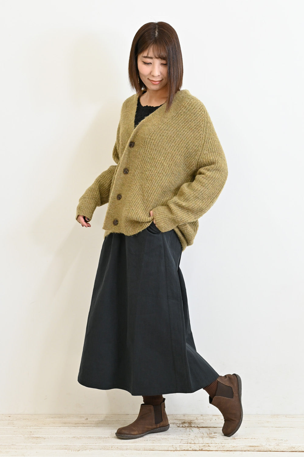 裾に向かって緩やかに広がるAラインシルエットで、