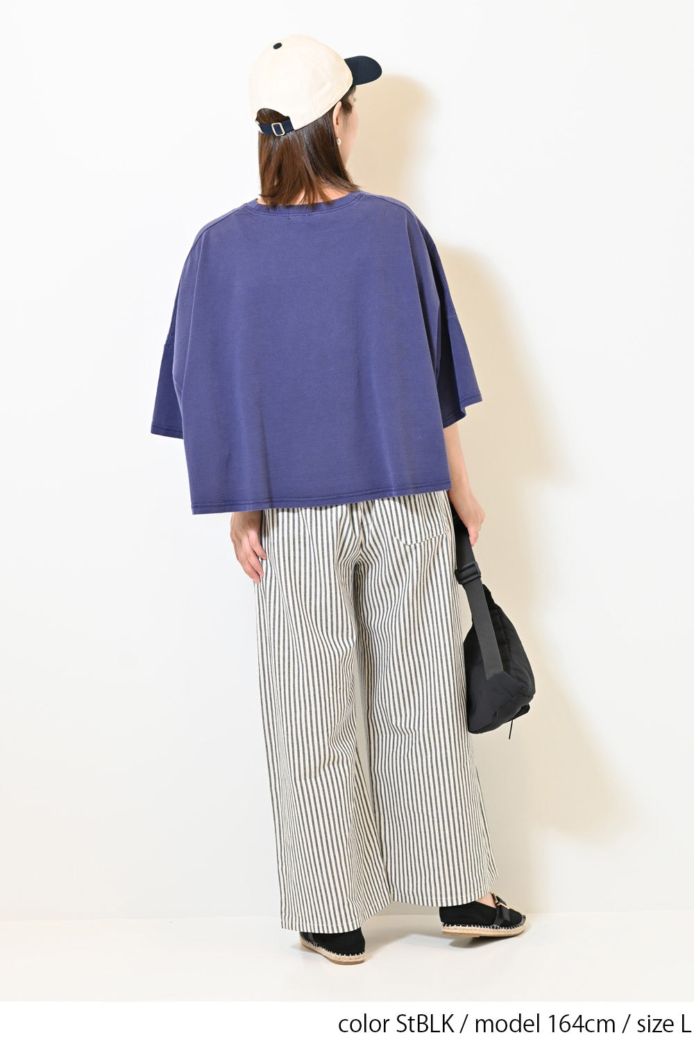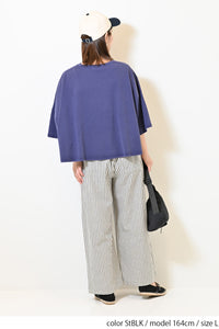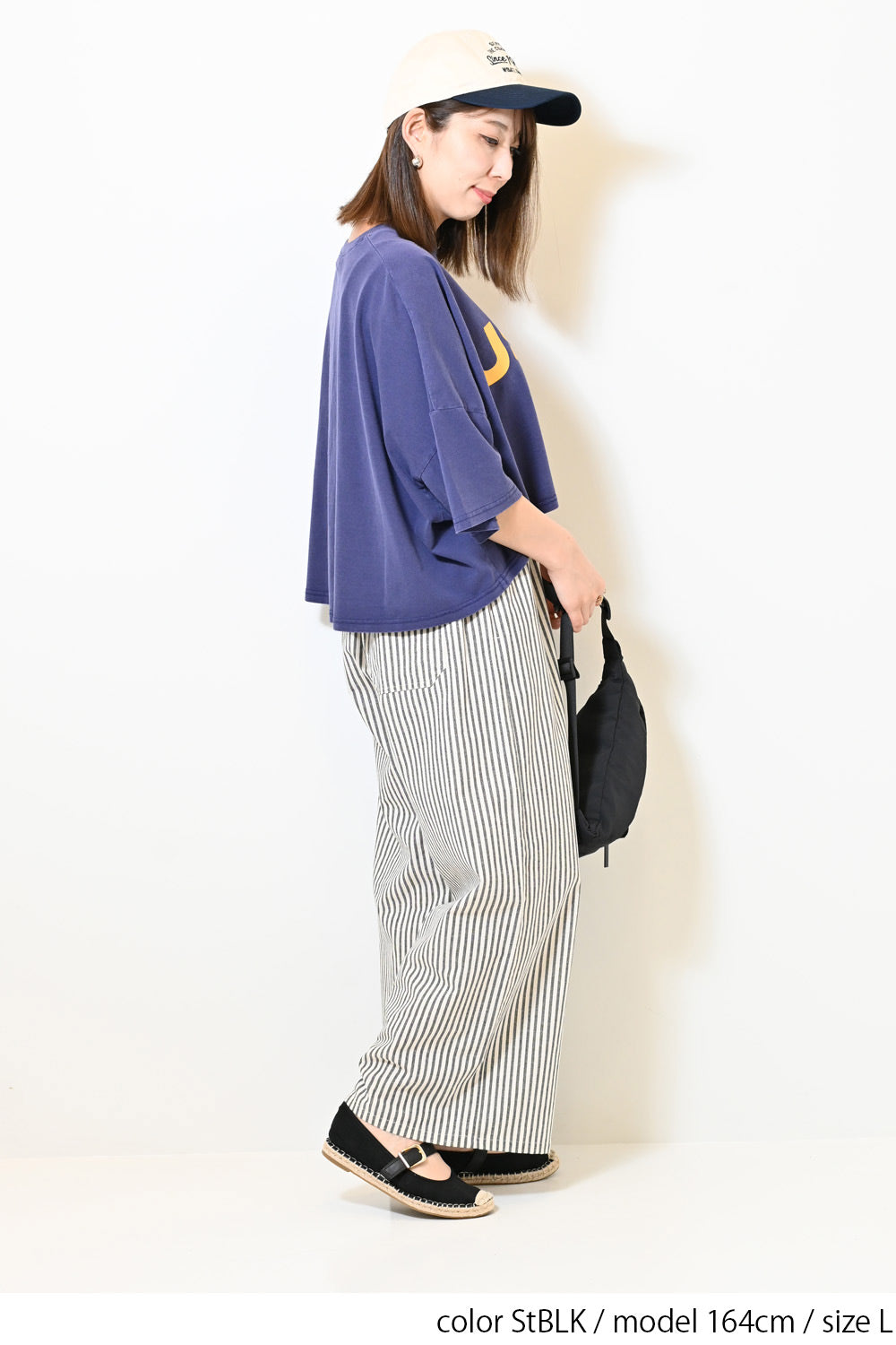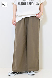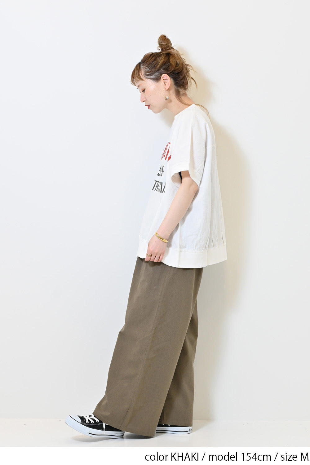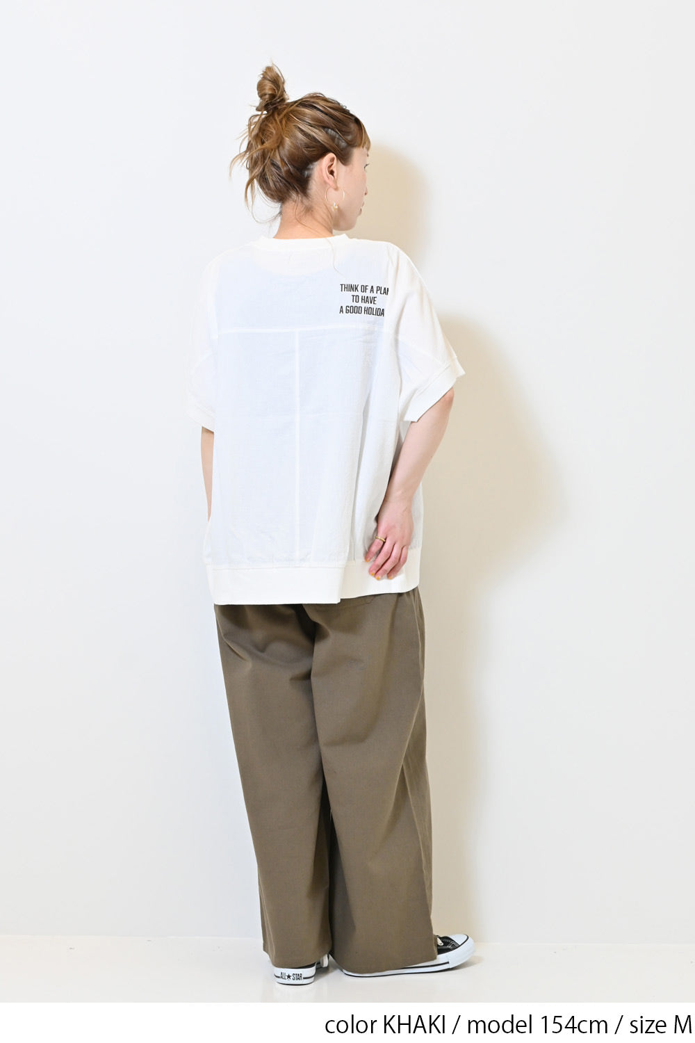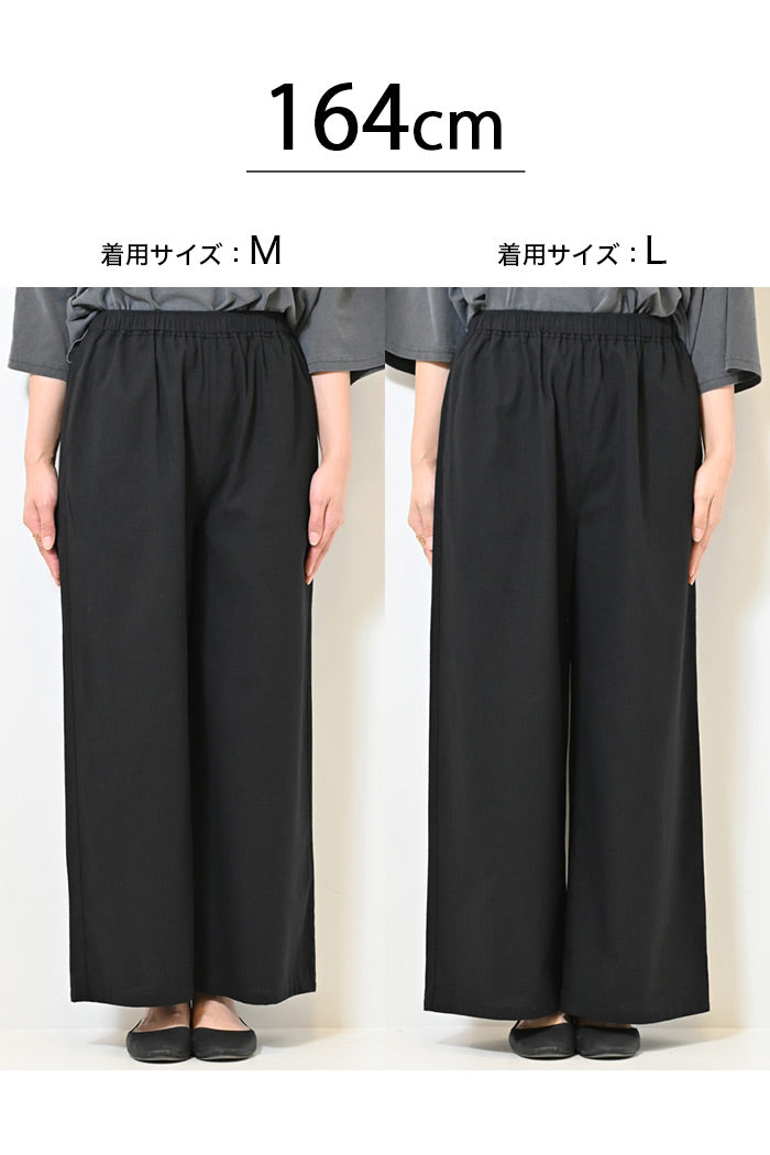 ワイドシルエットが気になる体のラインを拾わず、涼しげで大人っぽい着こなしを演出します。