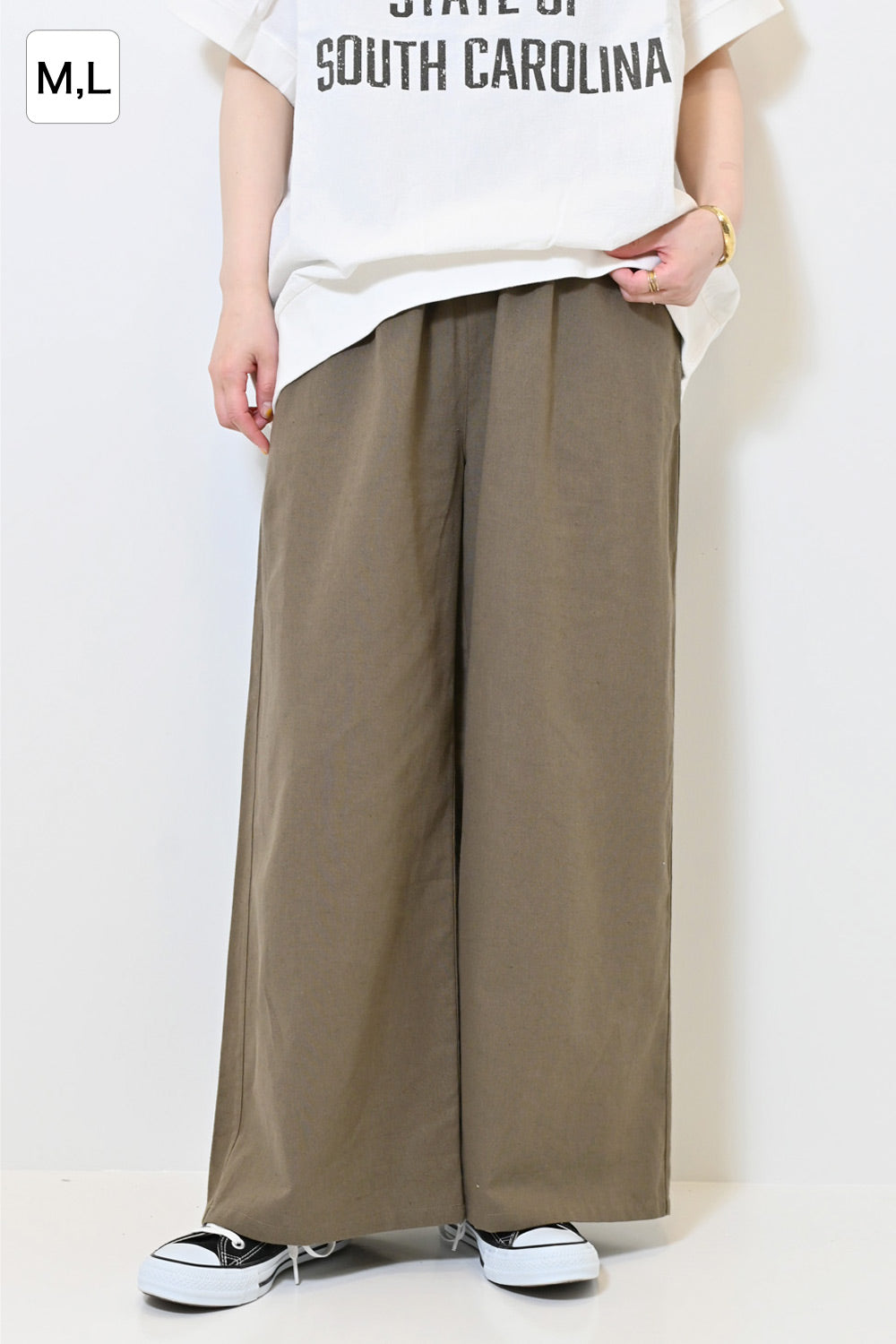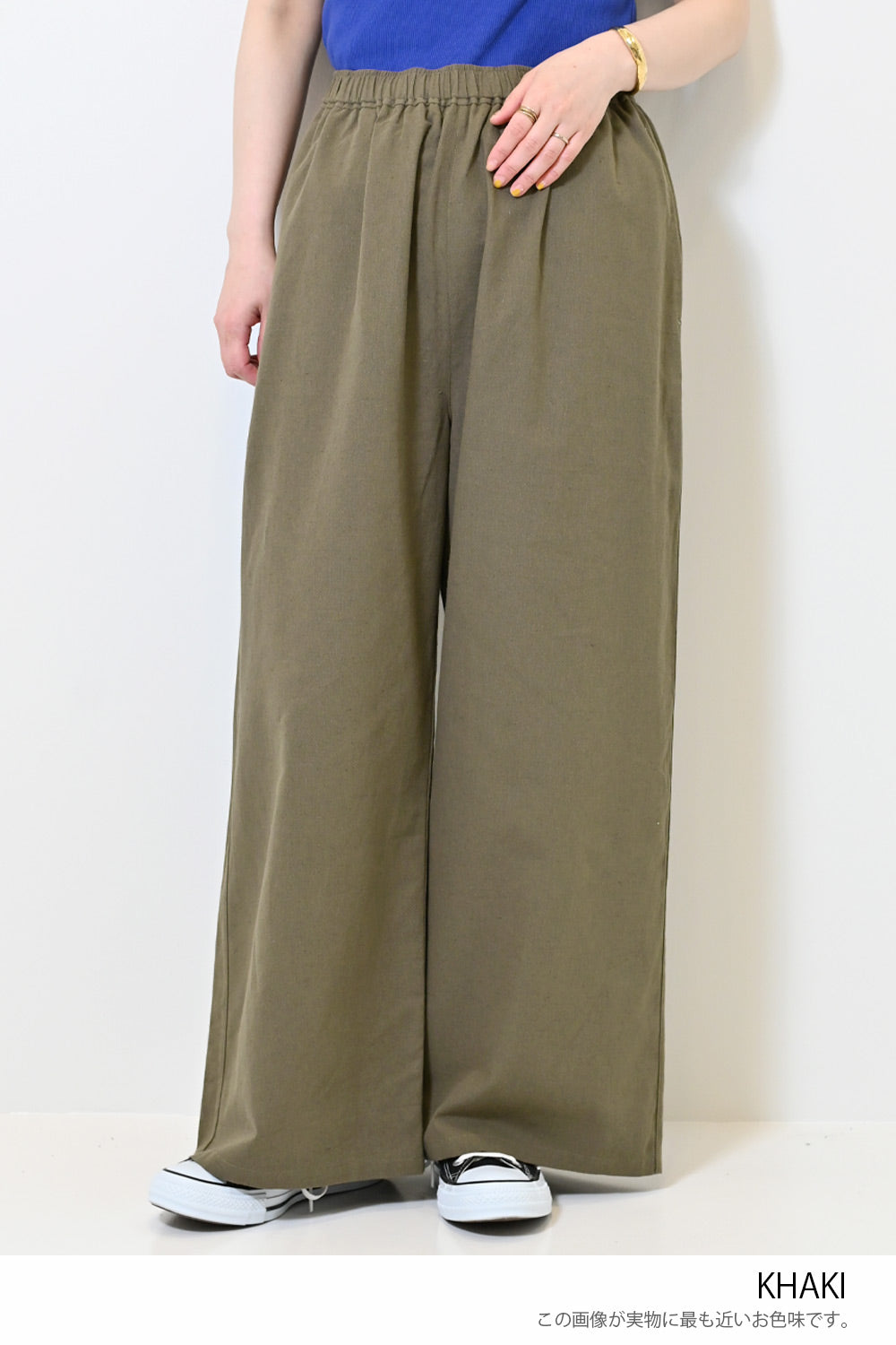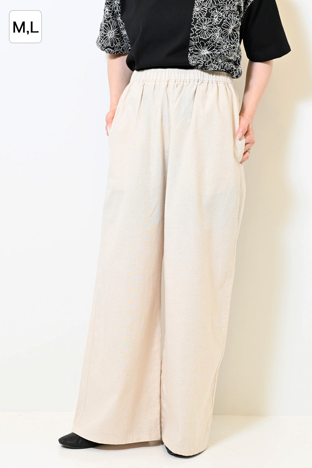 ナチュラルな素材感が心地よい、麻ブレンドのワイドパンツ。