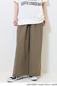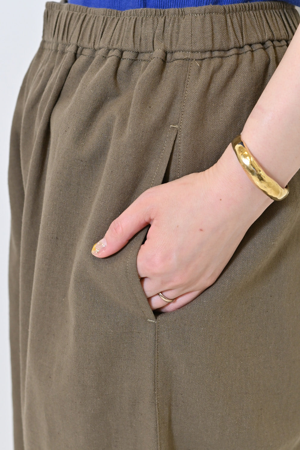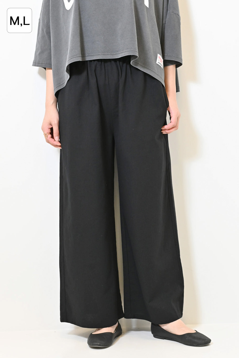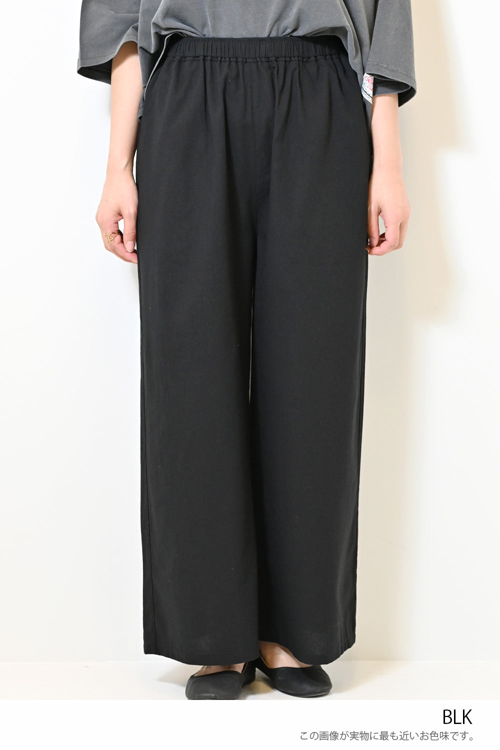 ナチュラルな素材感が心地よい、麻ブレンドのワイドパンツ。