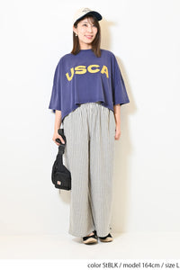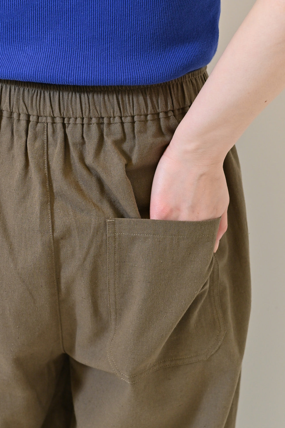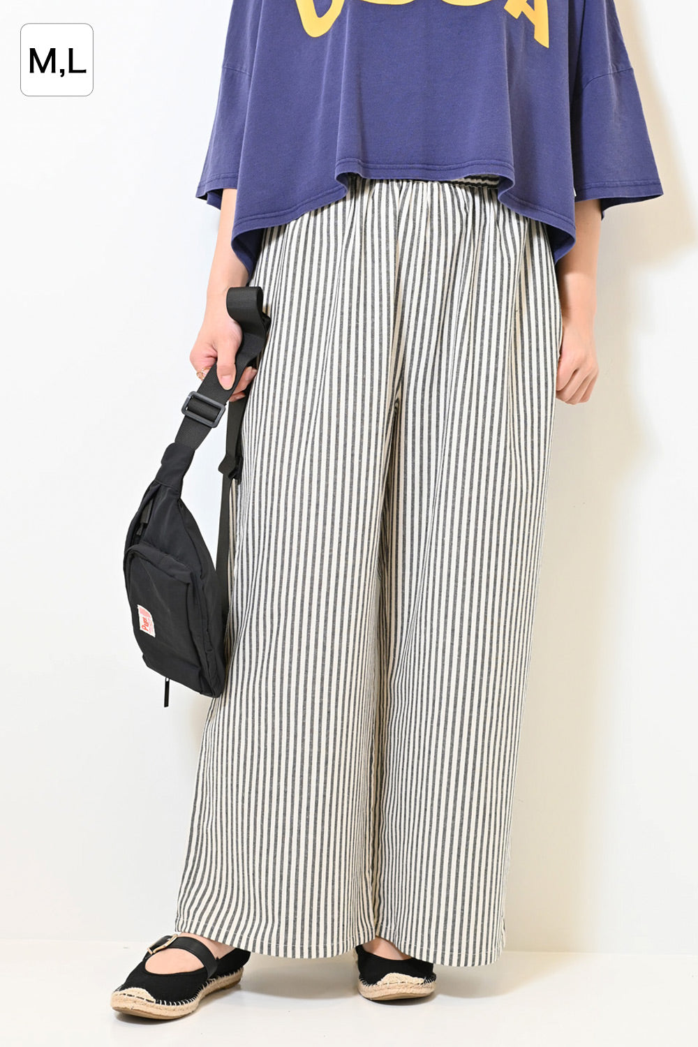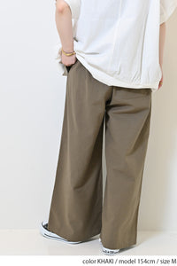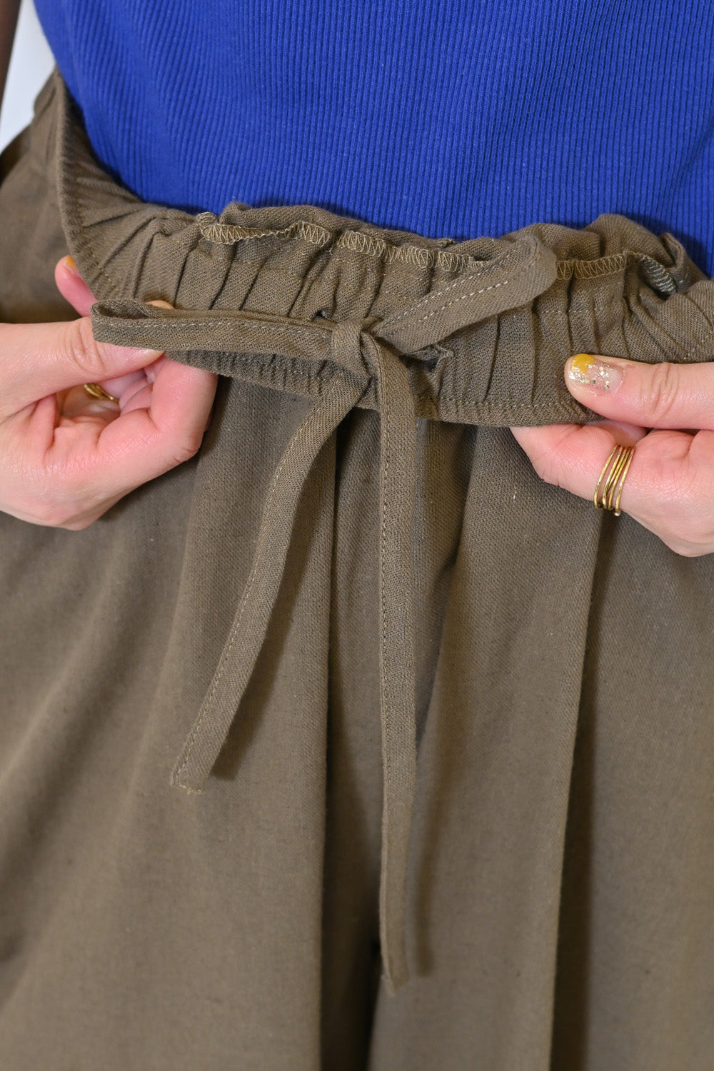 ウエストは総ゴム仕様+調節紐付きで、リラックス感のある履き心地とフィット感を両立。