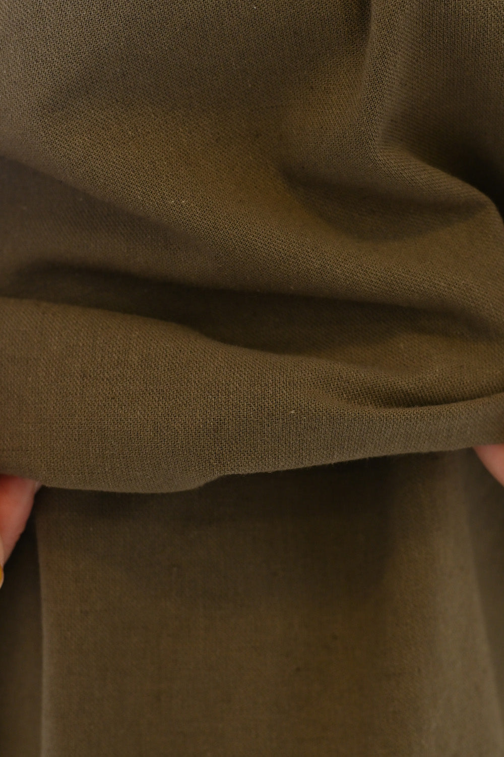軽やかな綿麻素材は肌離れがよく、さらっとした風合いで春夏の装いにぴったり。