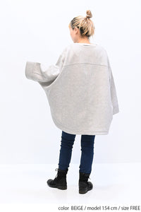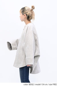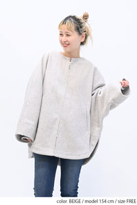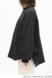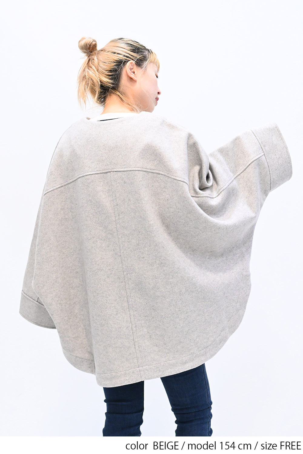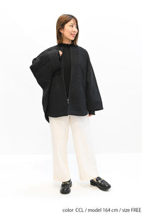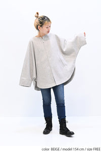 モモンガのようなゆったりドルマンスリーブで、厚手のニットの上からでも楽に羽織れます。