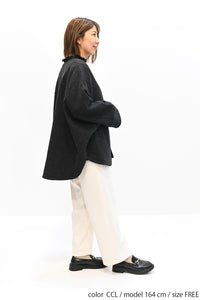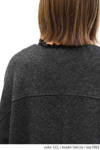 ゆったりしたドルマンスリーブは厚手ニットの上にも羽織りやすく、レイヤードスタイルに最適。