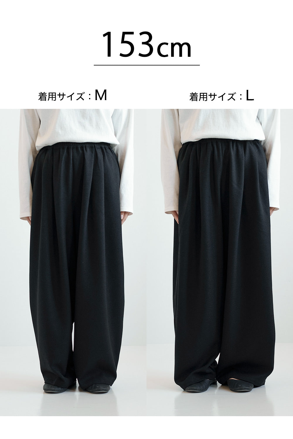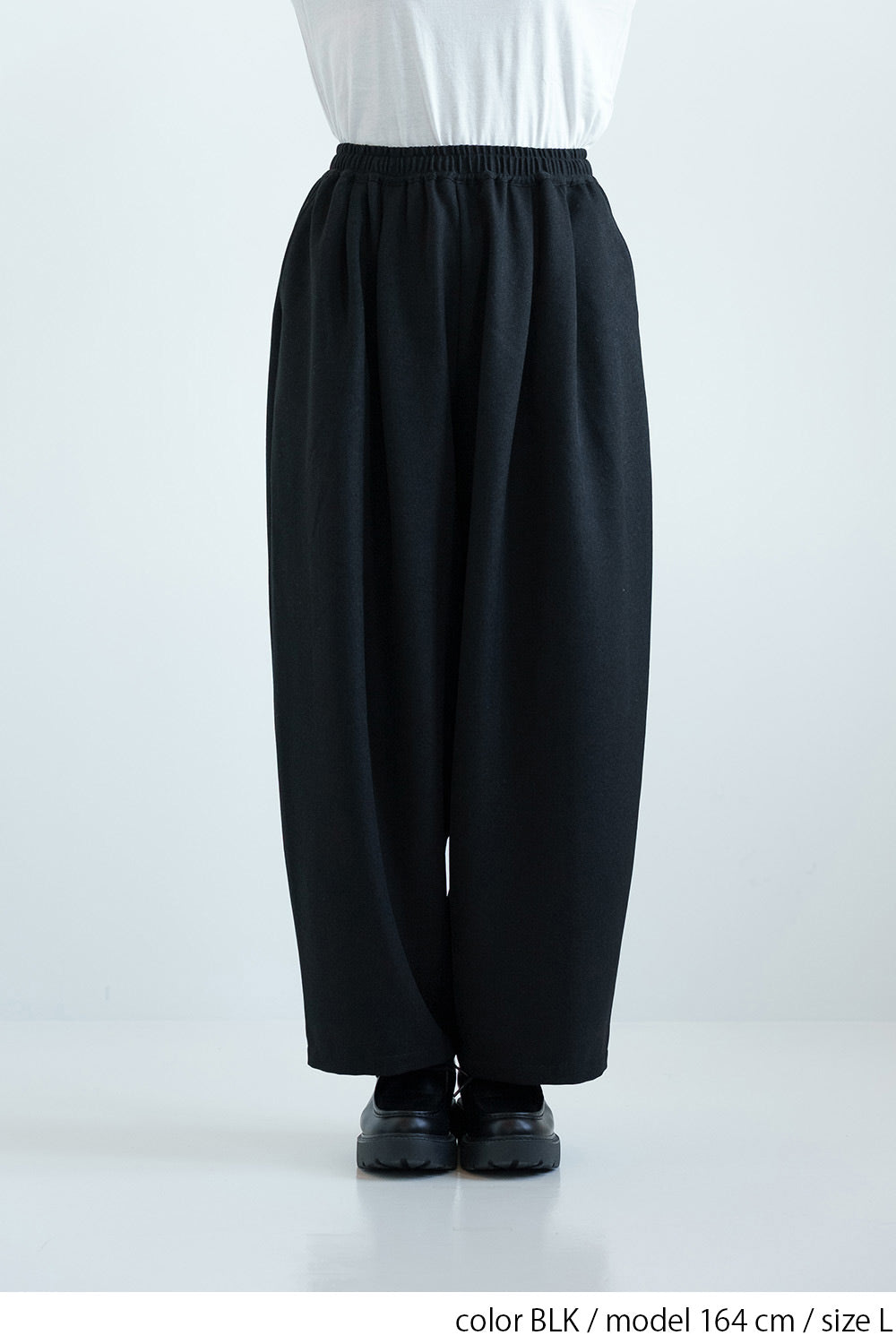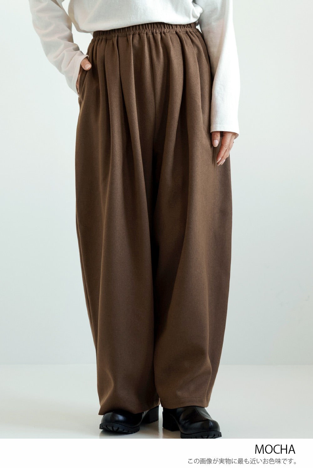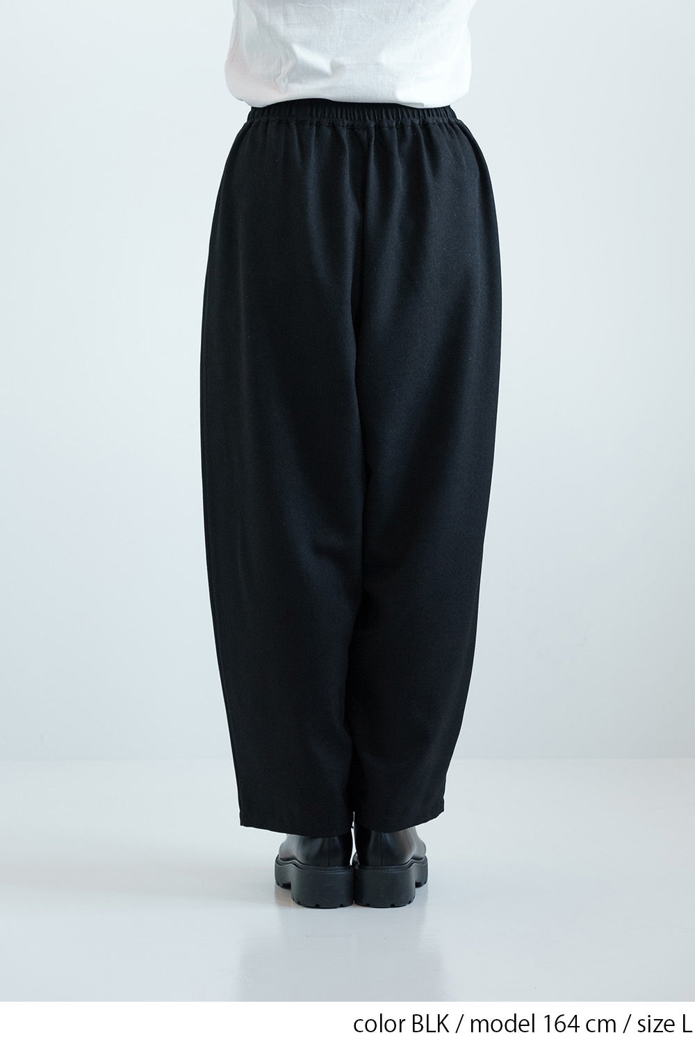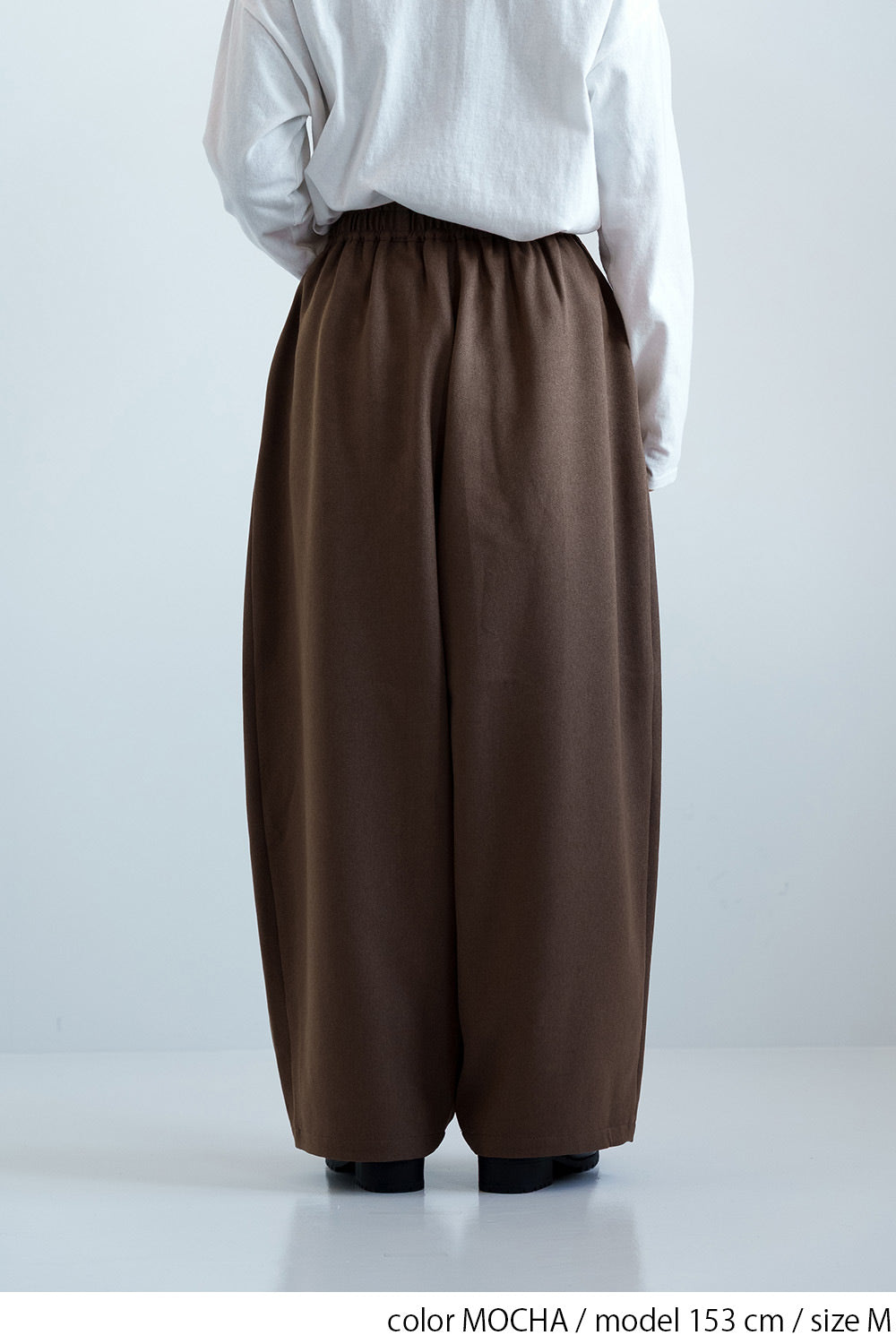 股上が深く、裾に向かって緩やかに細くなるコクーンシルエット。