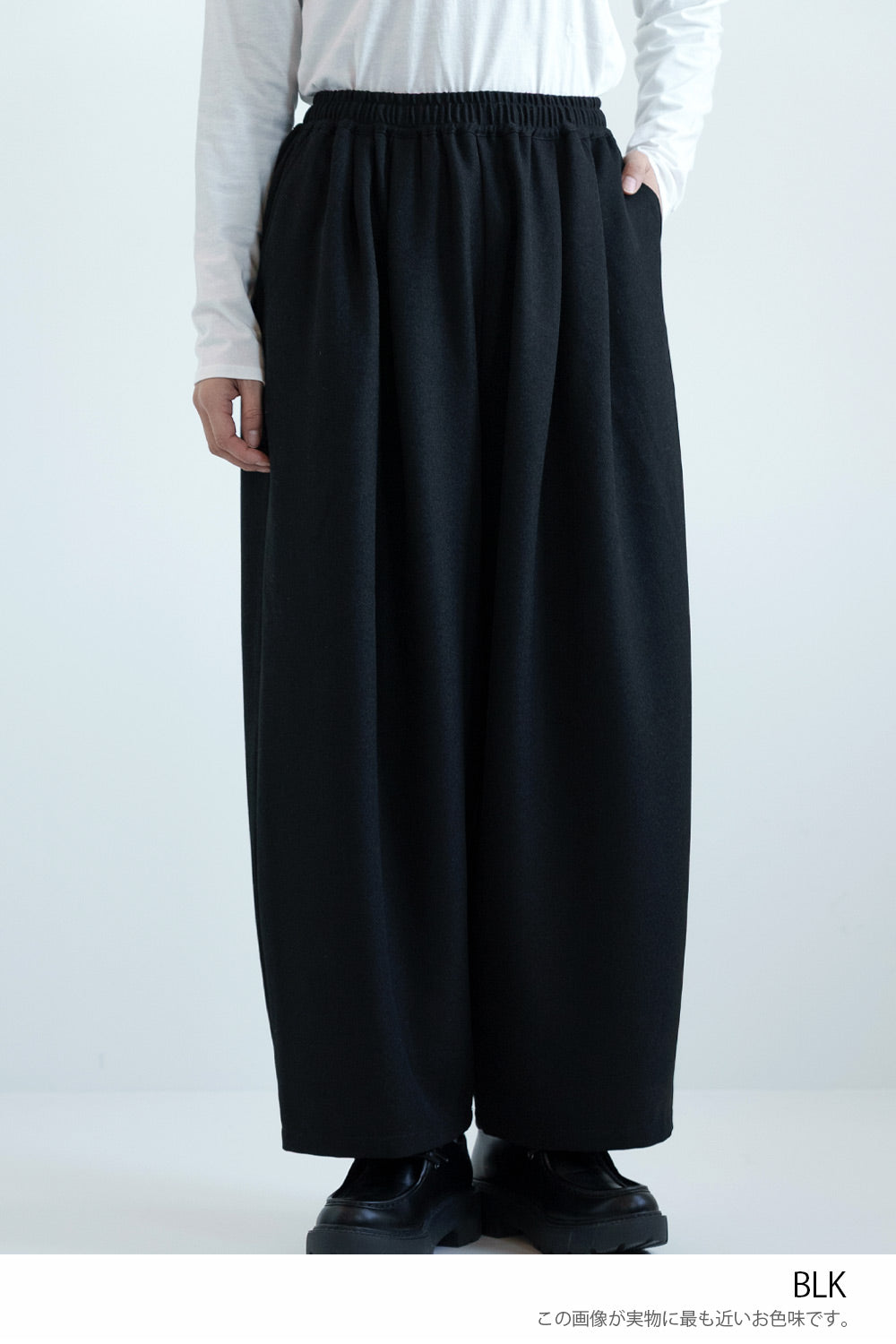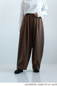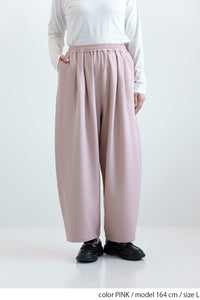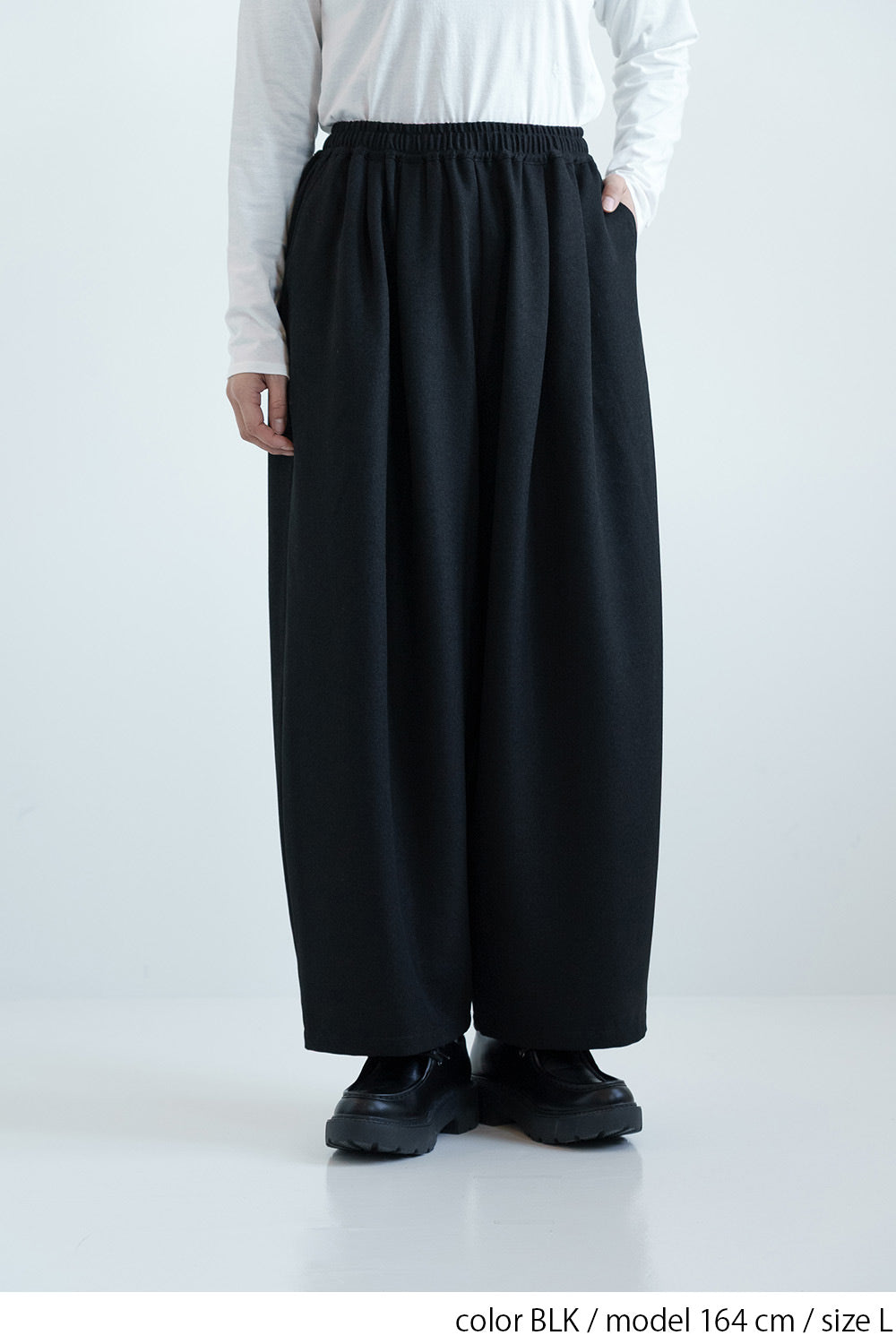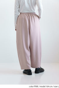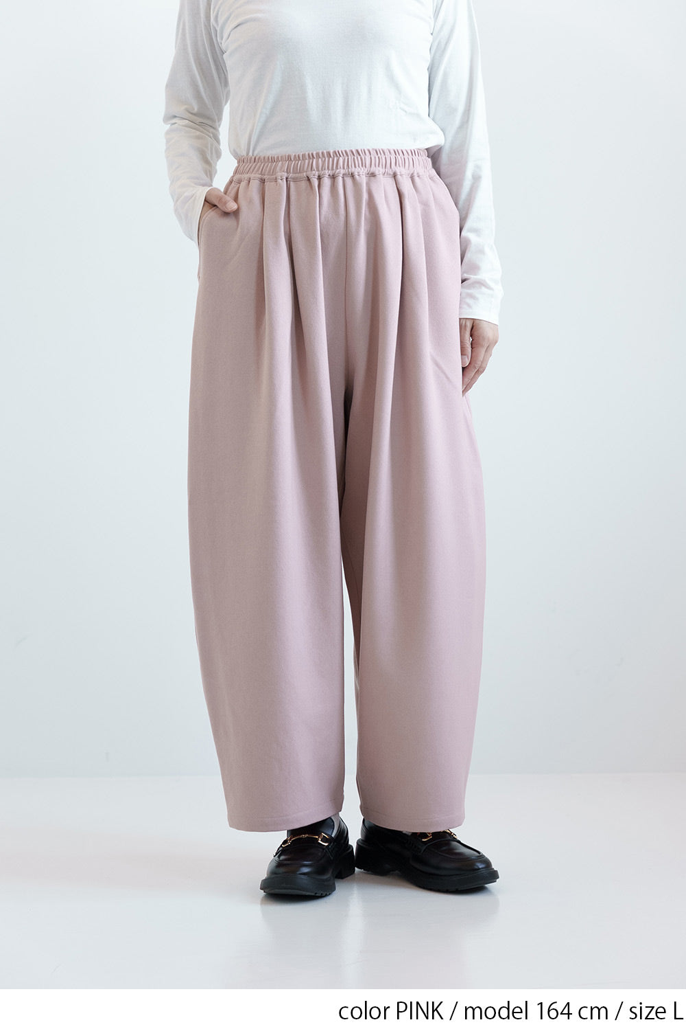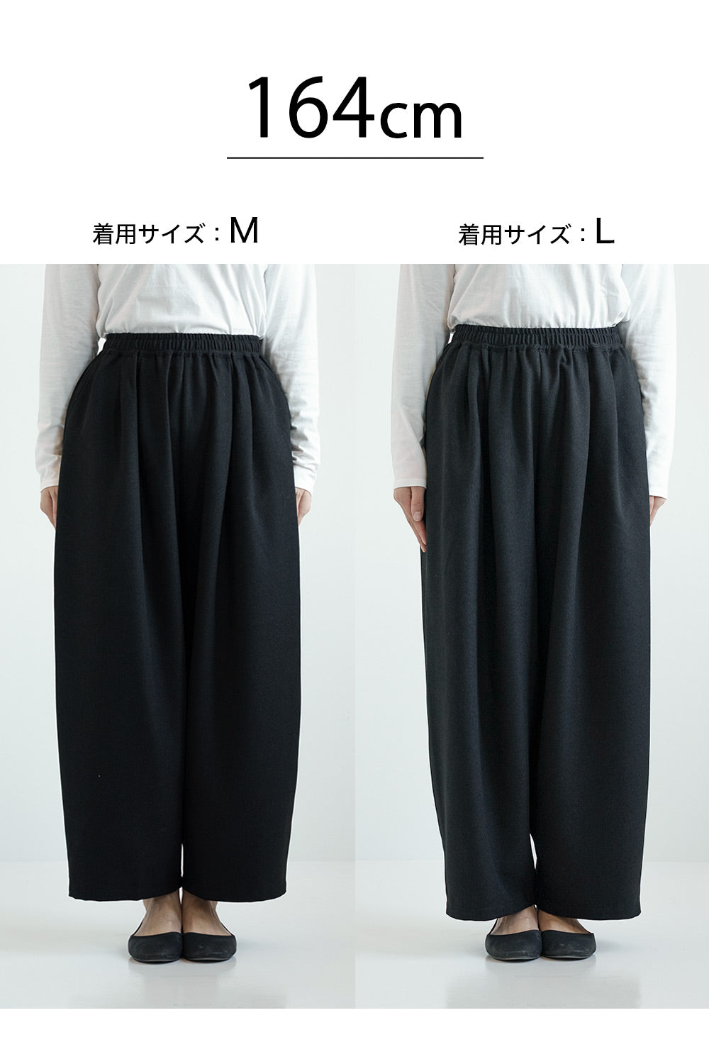 股上が深く、裾に向かって緩やかに細くなるコクーンシルエット。