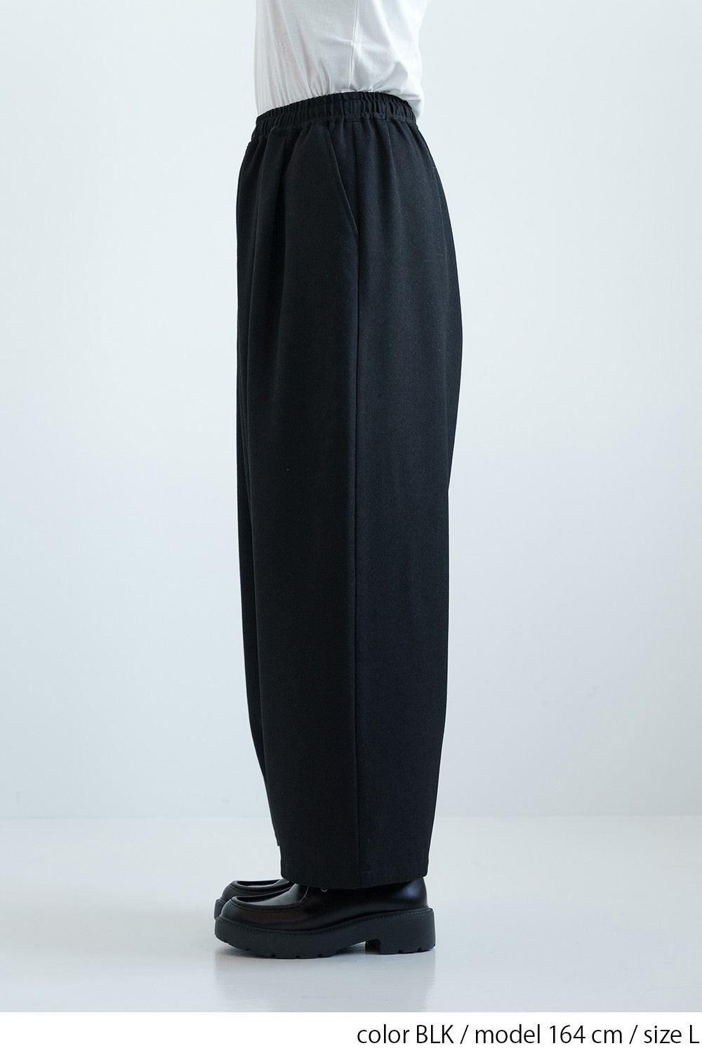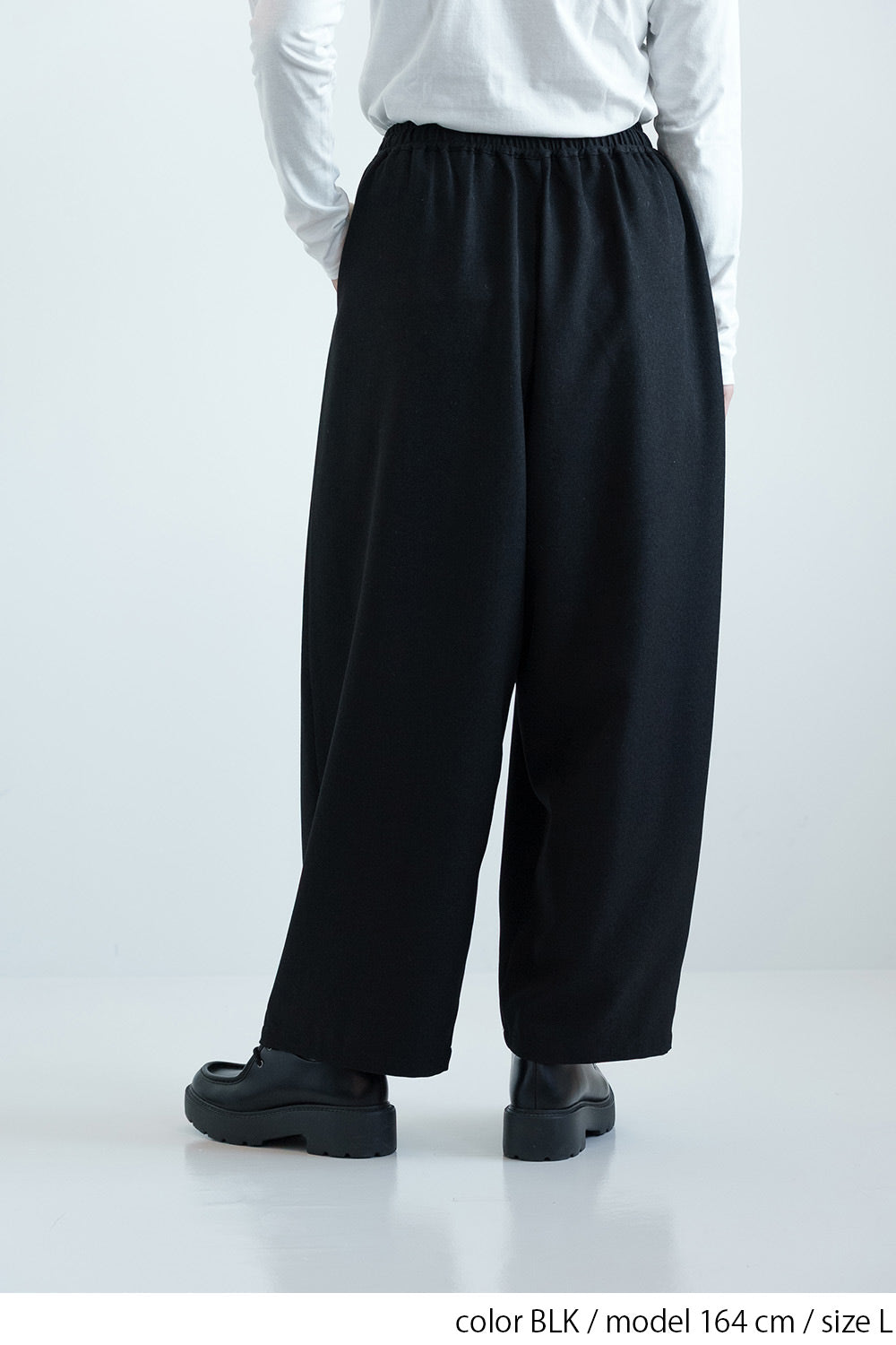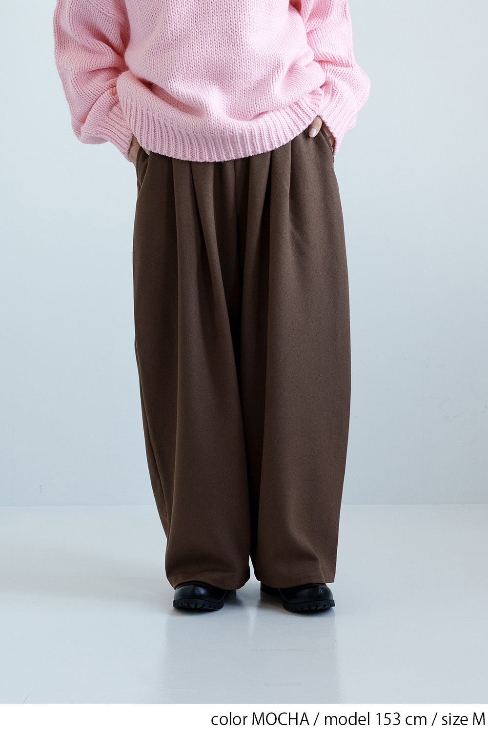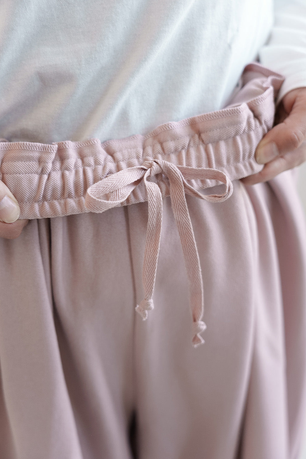 股上が深く、裾に向かって緩やかに細くなるコクーンシルエット。