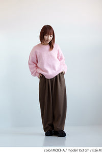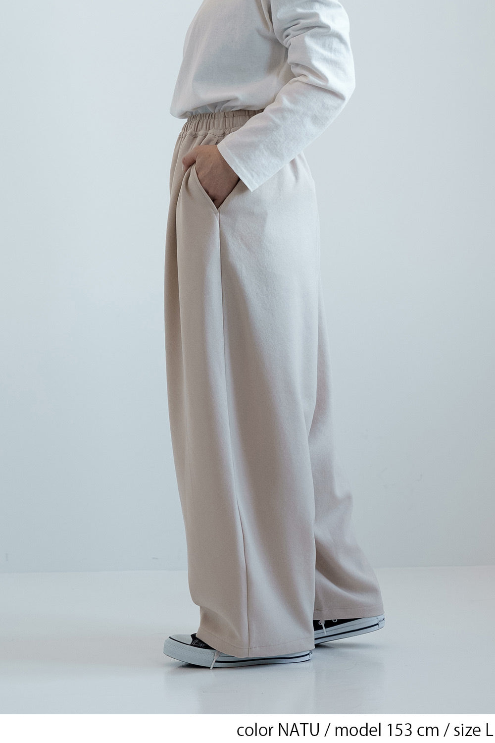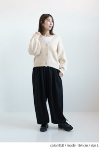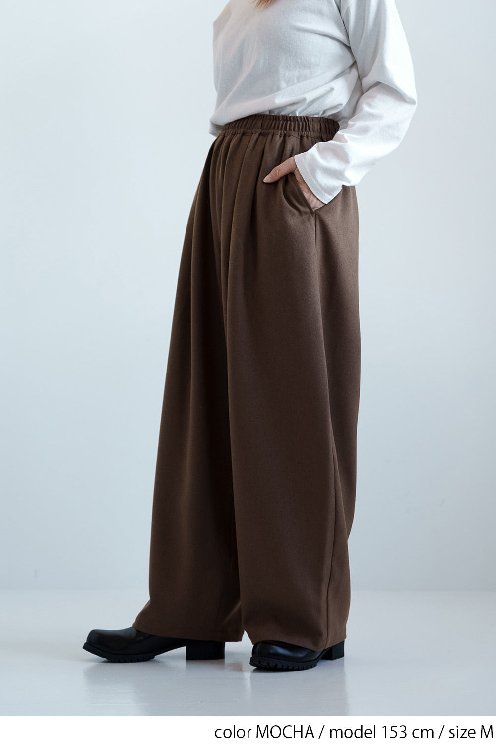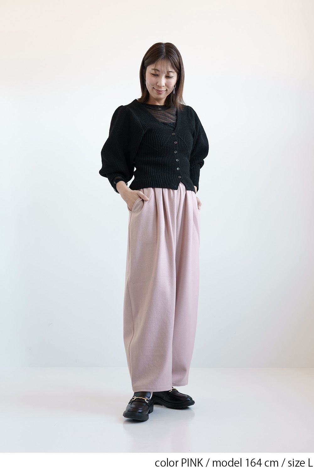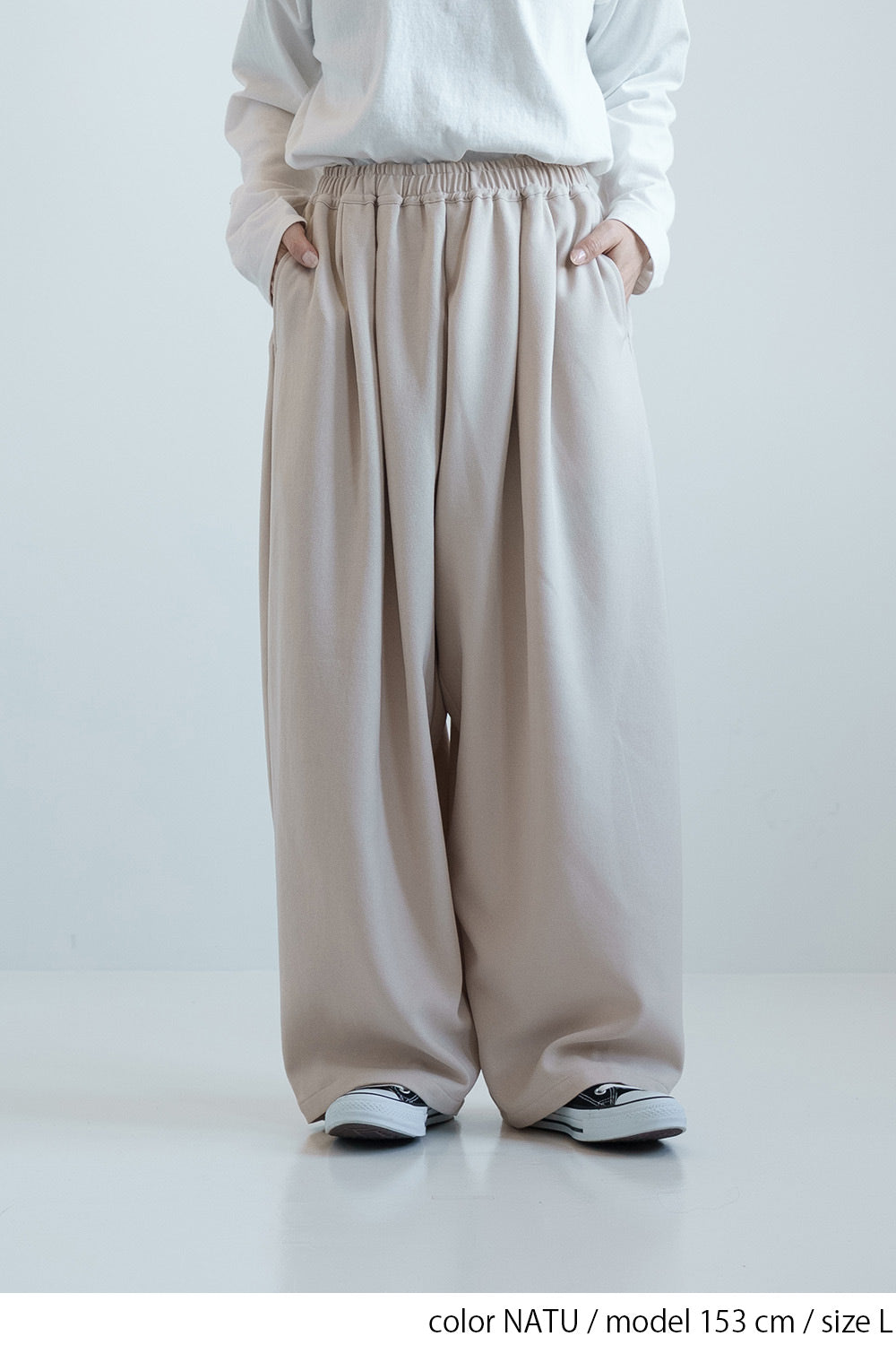 股上が深く、裾に向かって緩やかに細くなるコクーンシルエット。