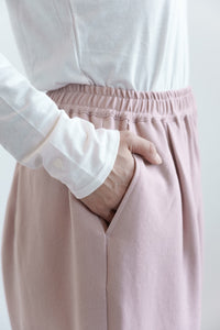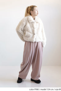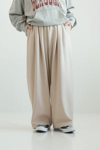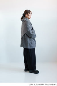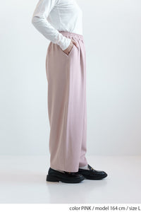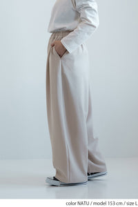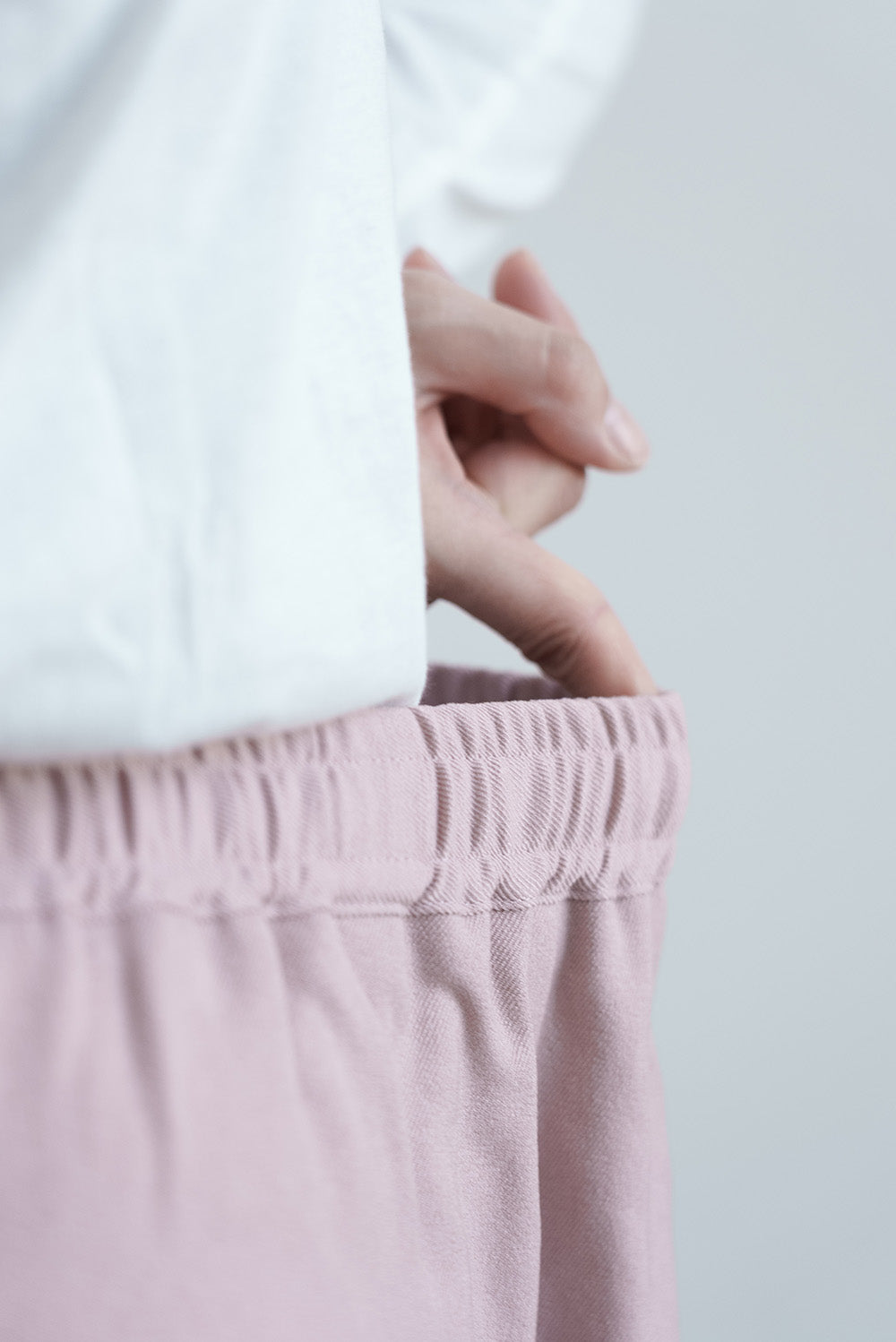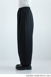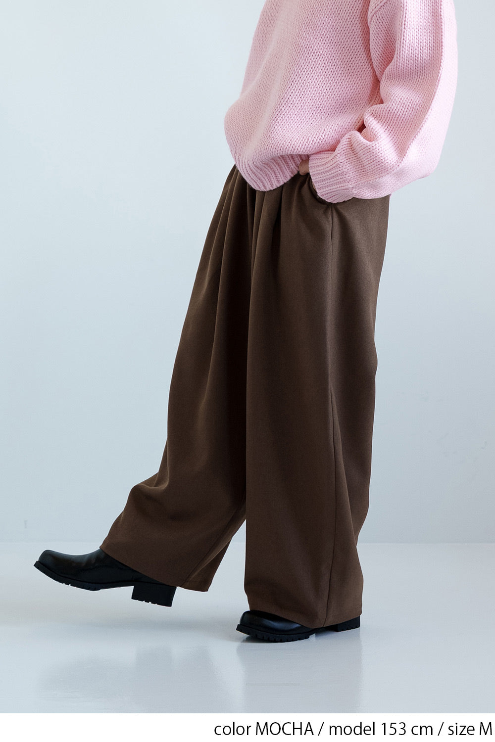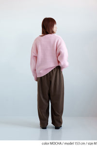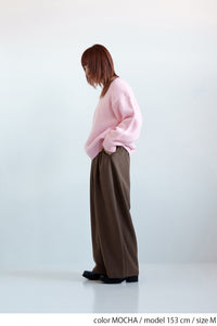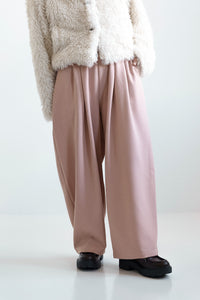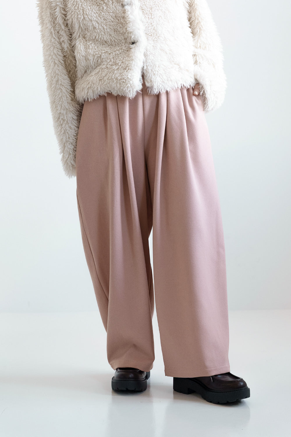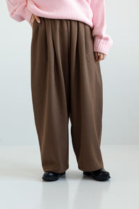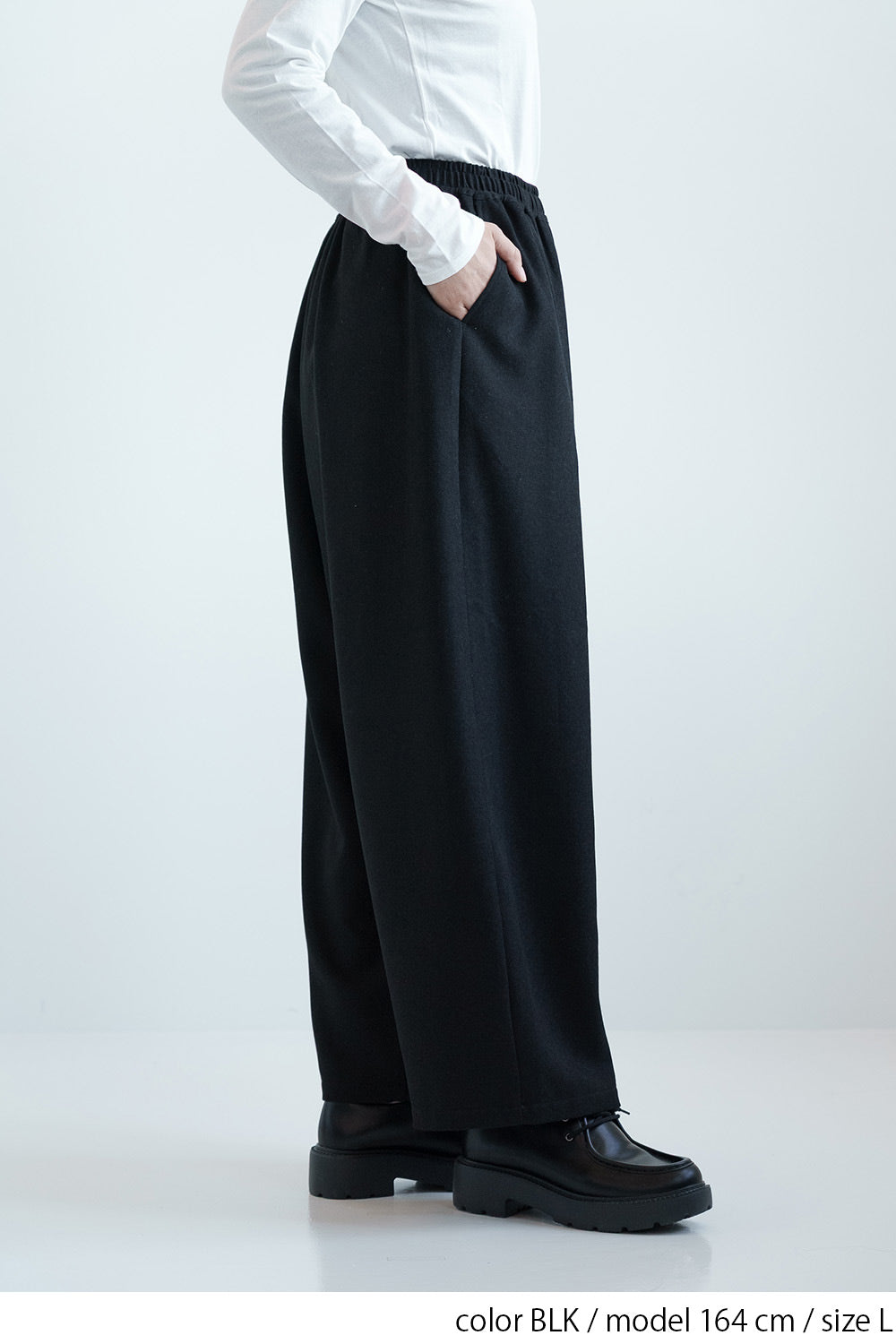 股上が深く、裾に向かって緩やかに細くなるコクーンシルエット。