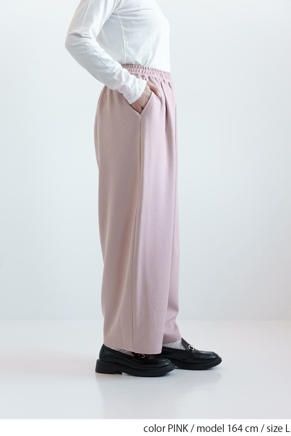 ゆとりのあるシルエットが脚のラインを拾わず、体型をカバーしてくれます。