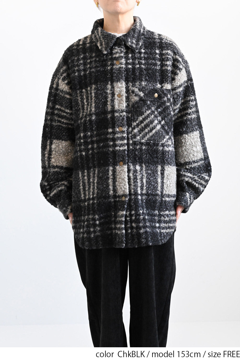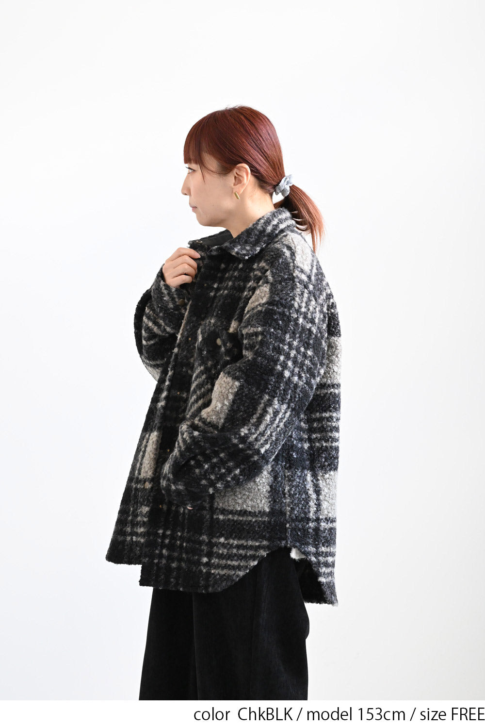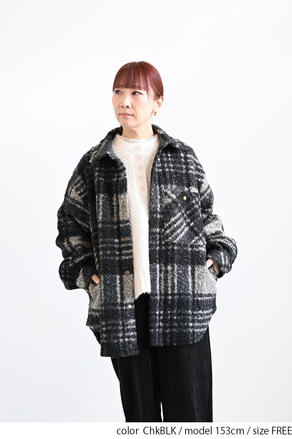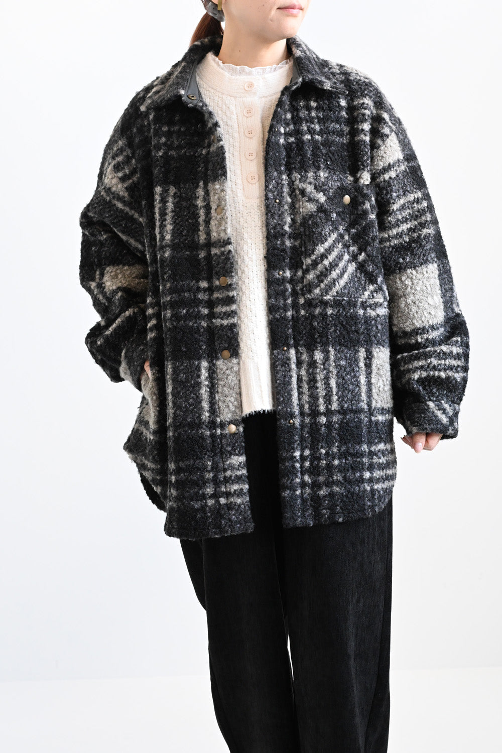 チェック柄が目を惹く、リングウール素材のライトジャケット。