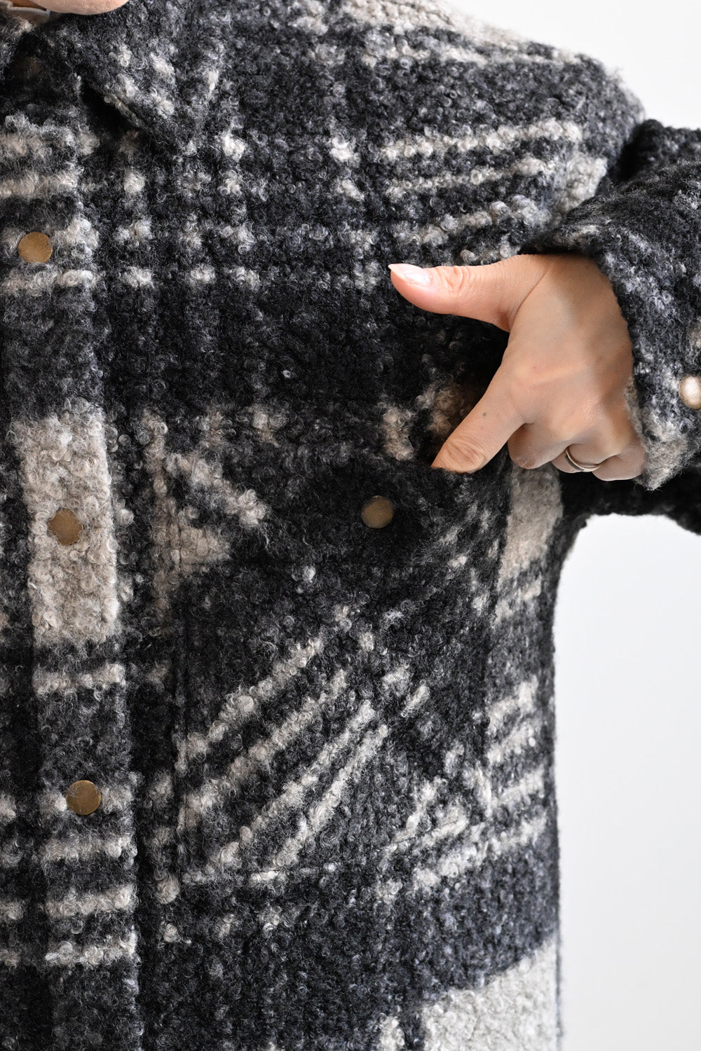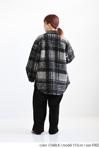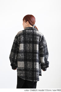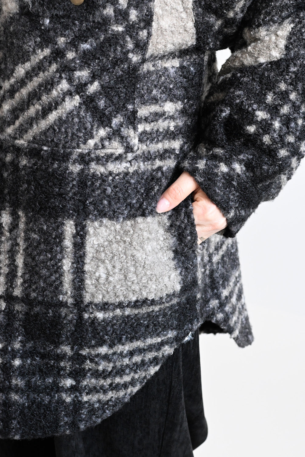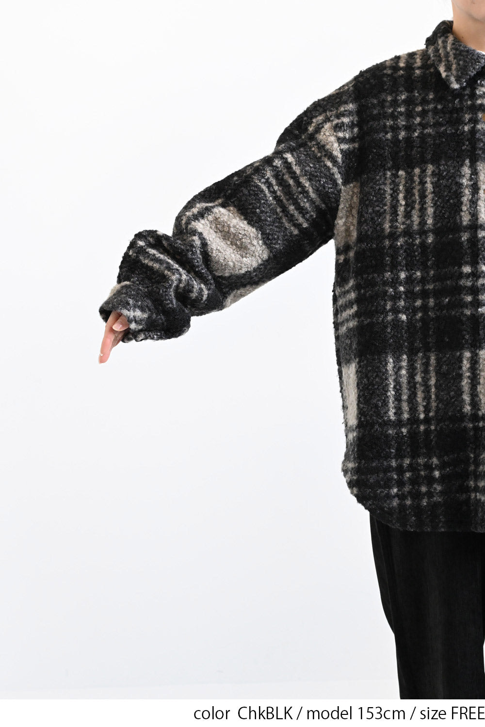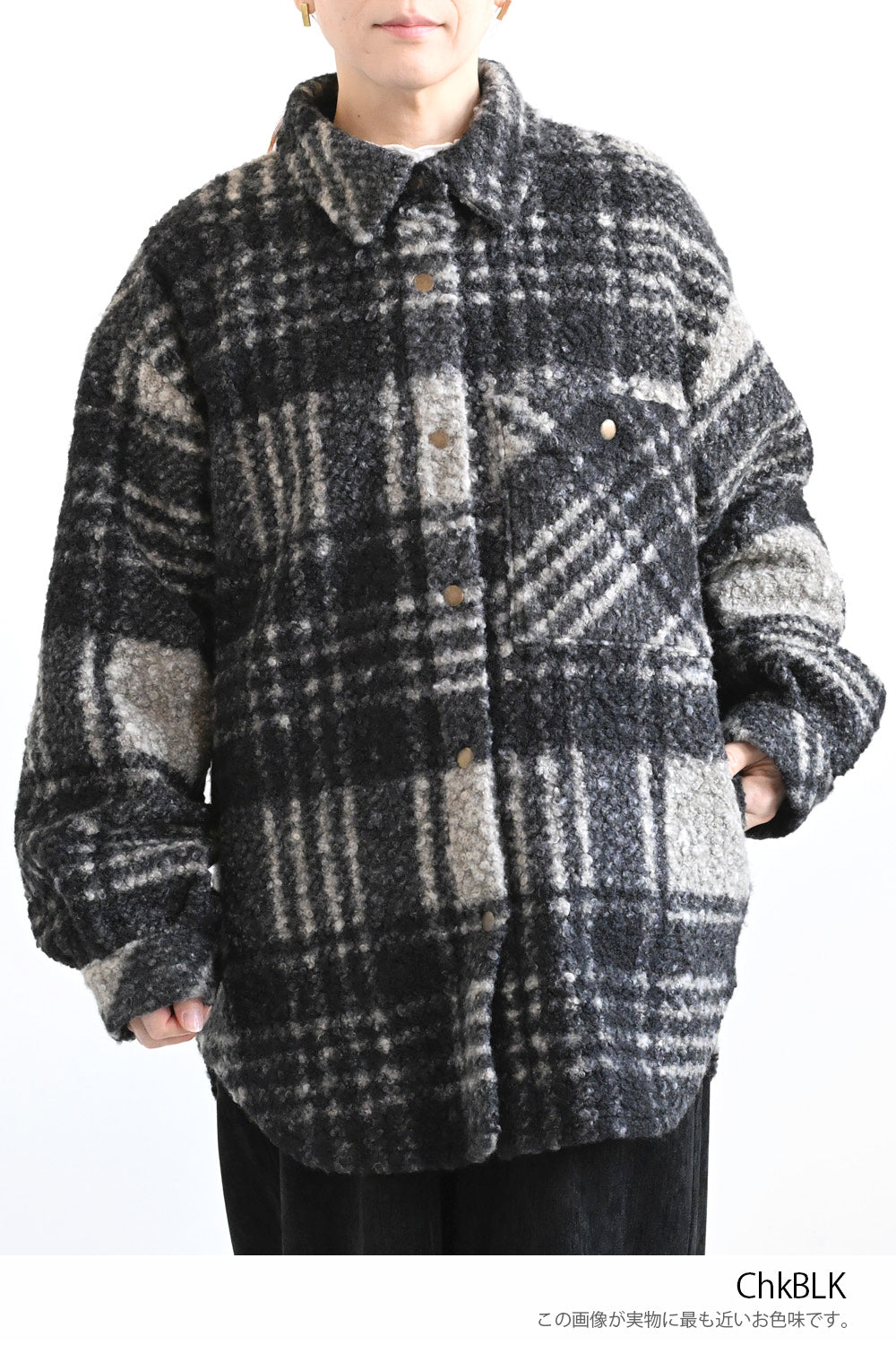 チェック柄が目を惹く、リングウール素材のライトジャケット。