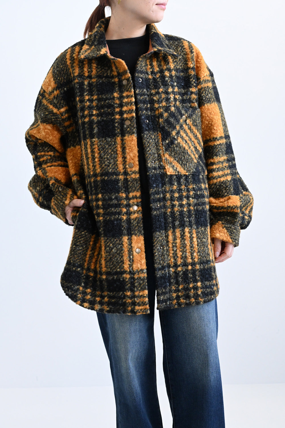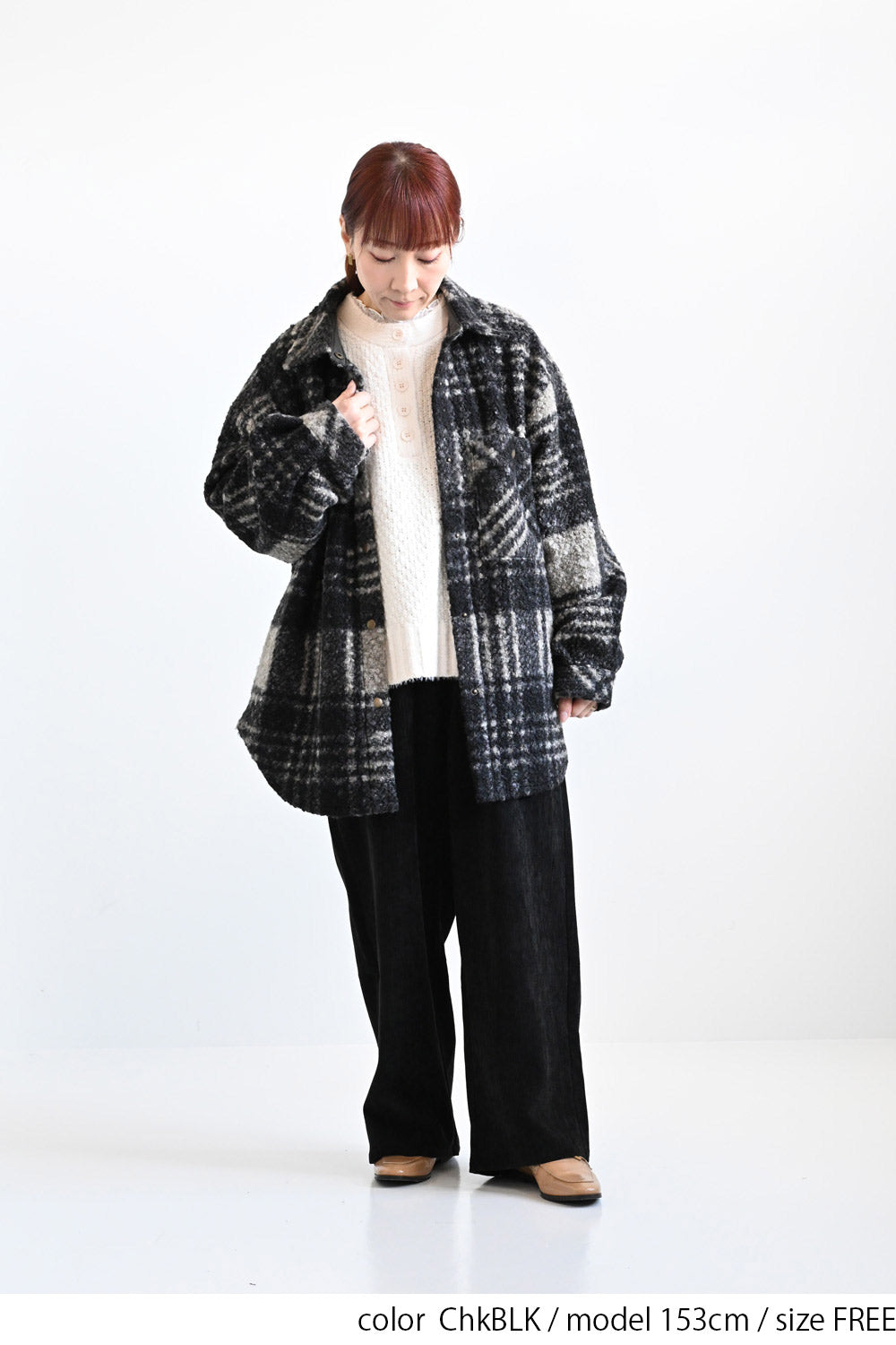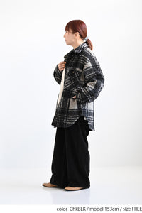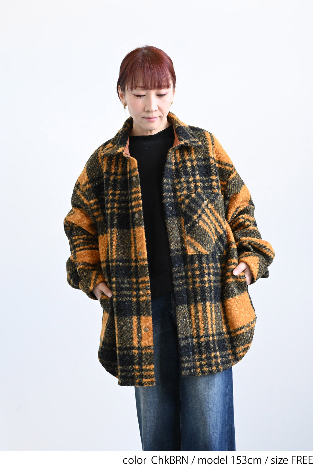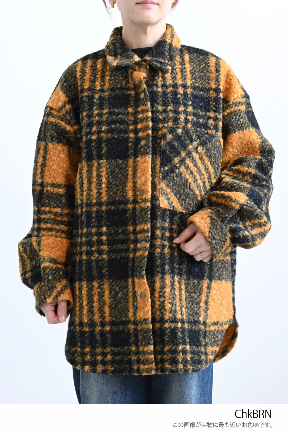 チェック柄が目を惹く、リングウール素材のライトジャケット。