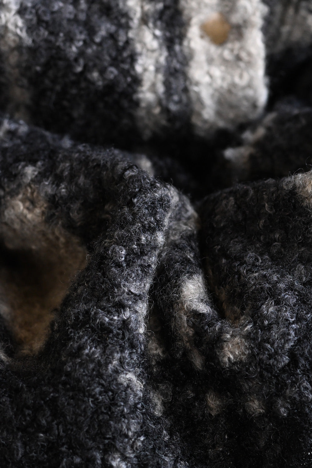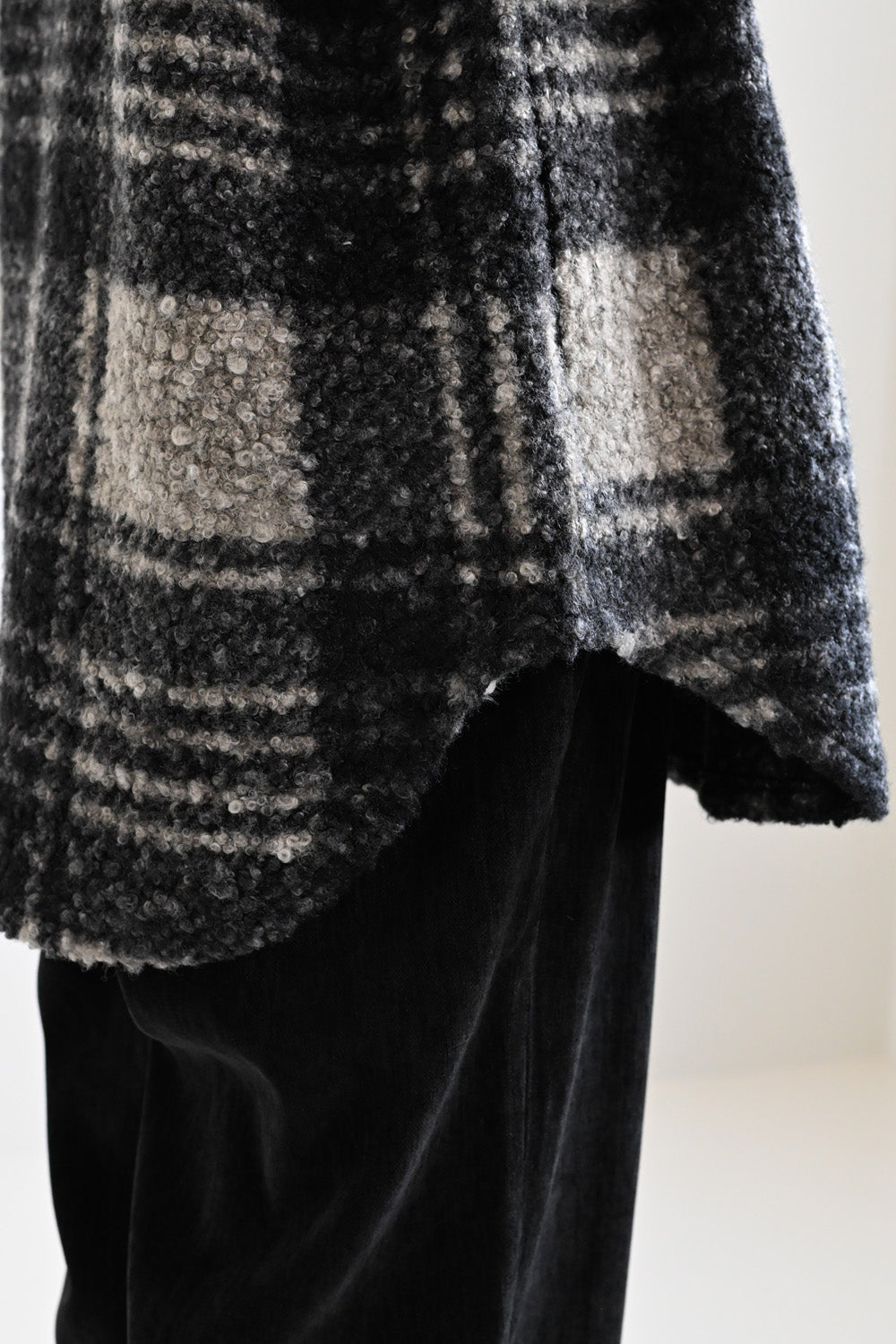 リング状の糸が生み出す凹凸感のある生地で、チェック柄に立体感と温かみを与えています。