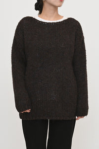 柔らかくふんわりとした糸で編み上げたニットプルオーバー。