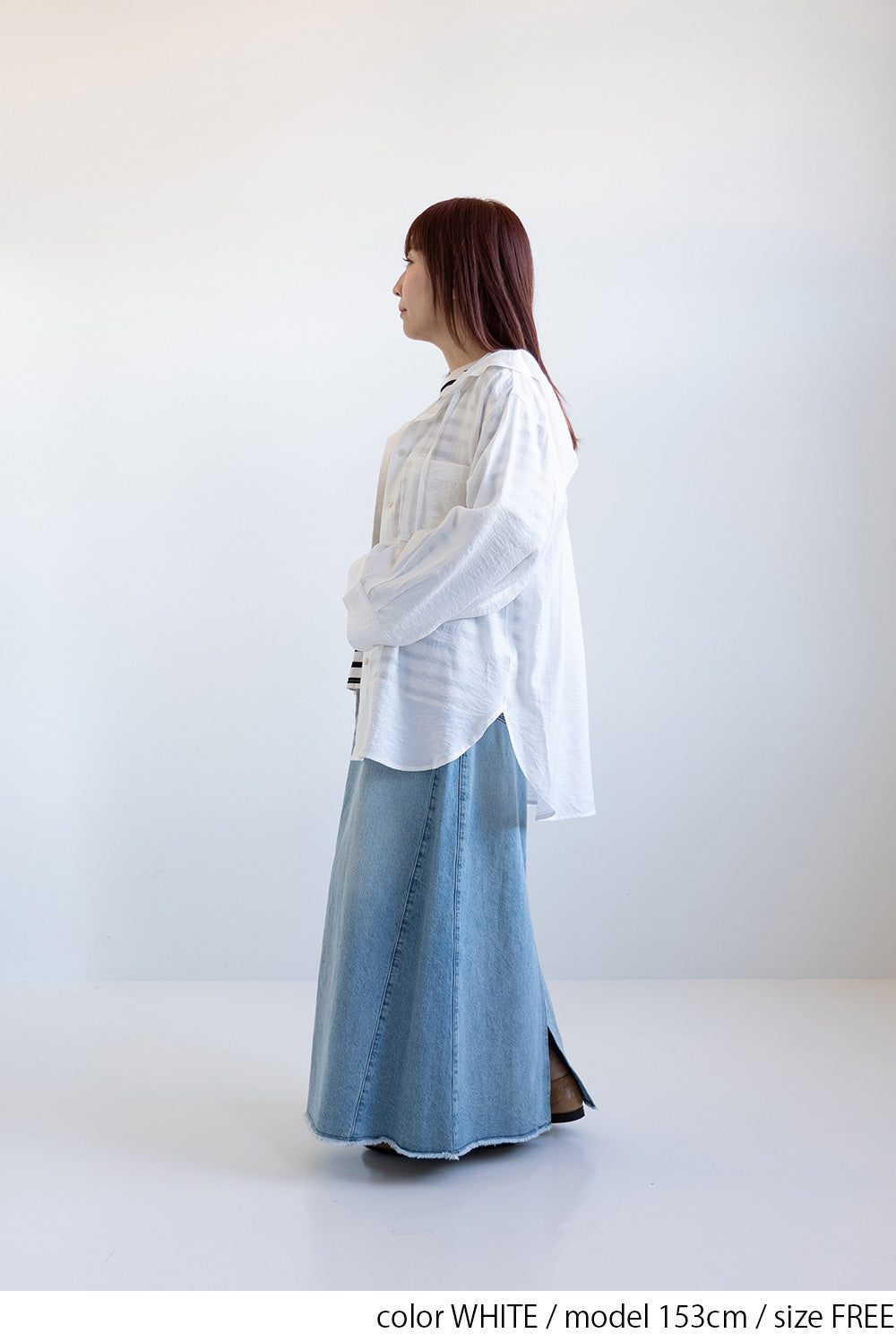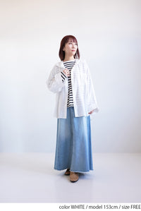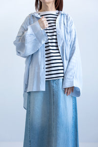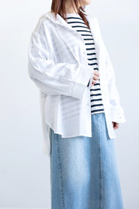 デニムやワイドパンツと合わせて、爽やかなスタイルに。