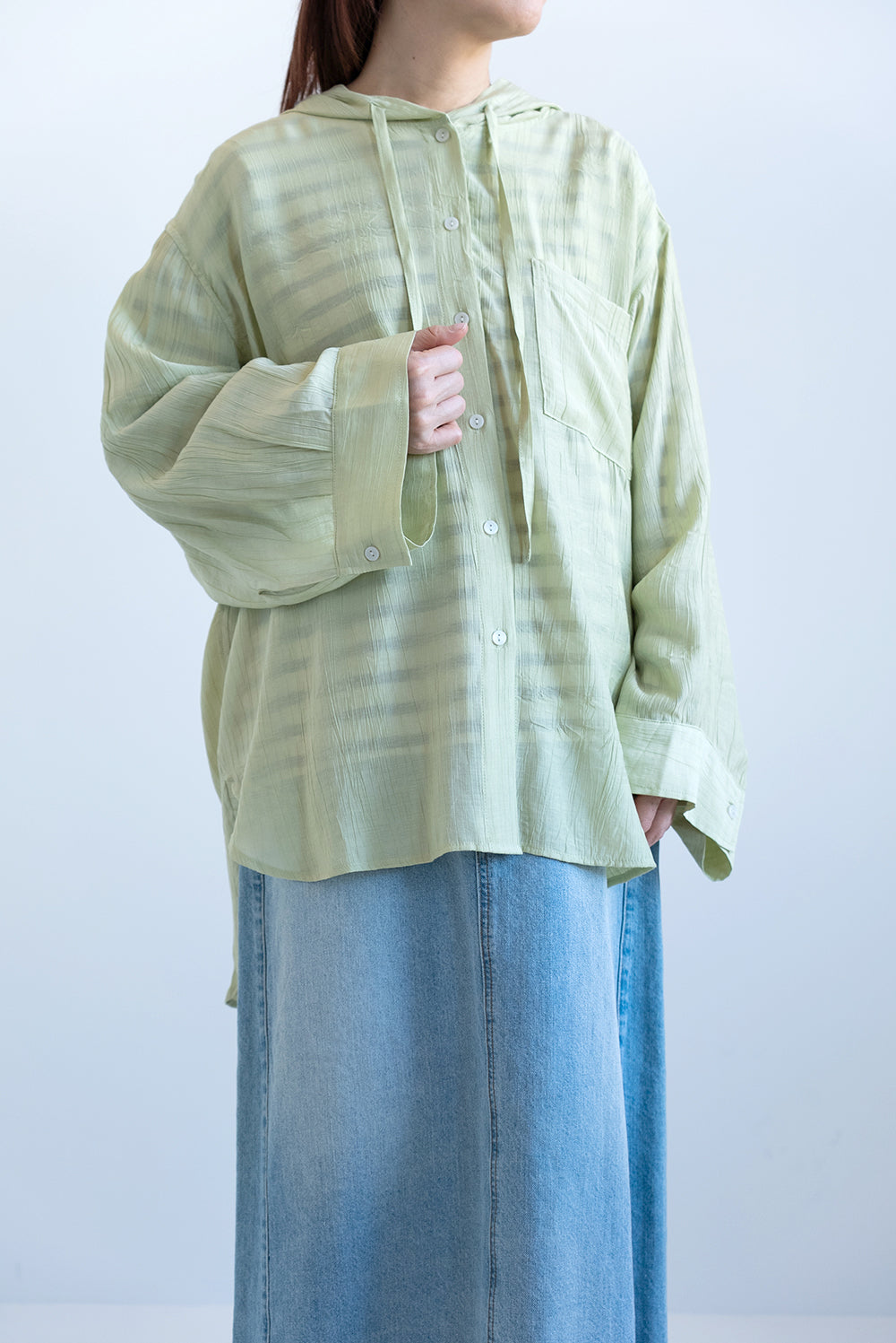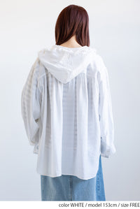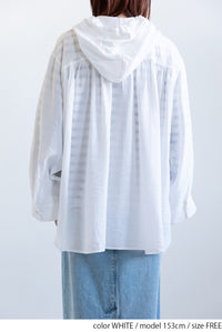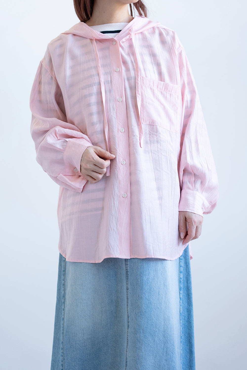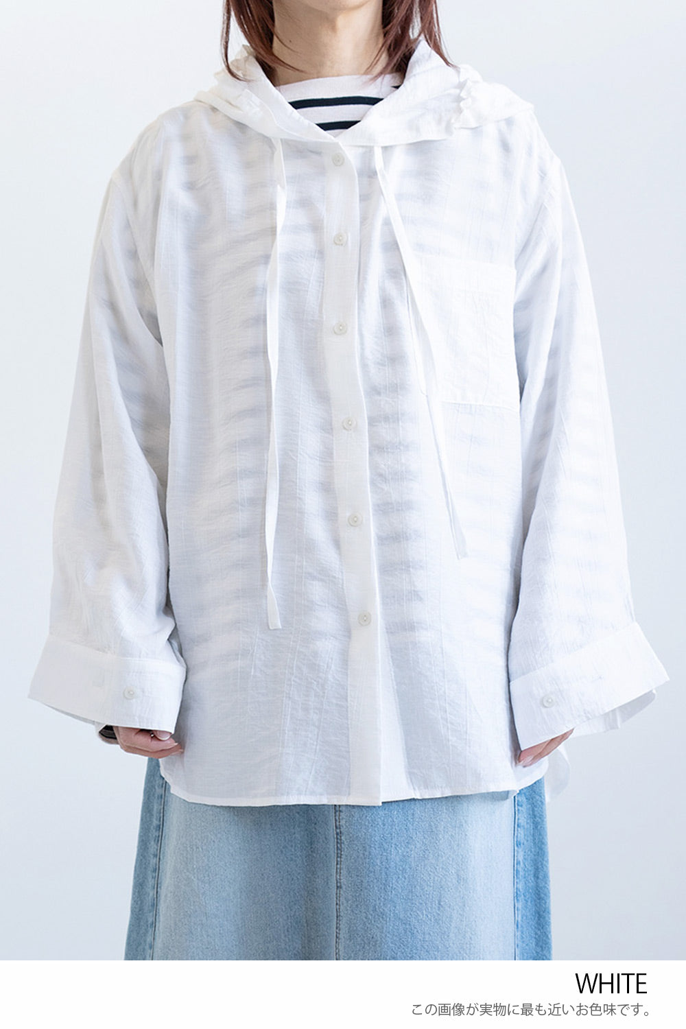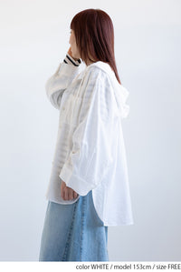 軽やかさと抜け感をまとう、フードシャツチュニック。
