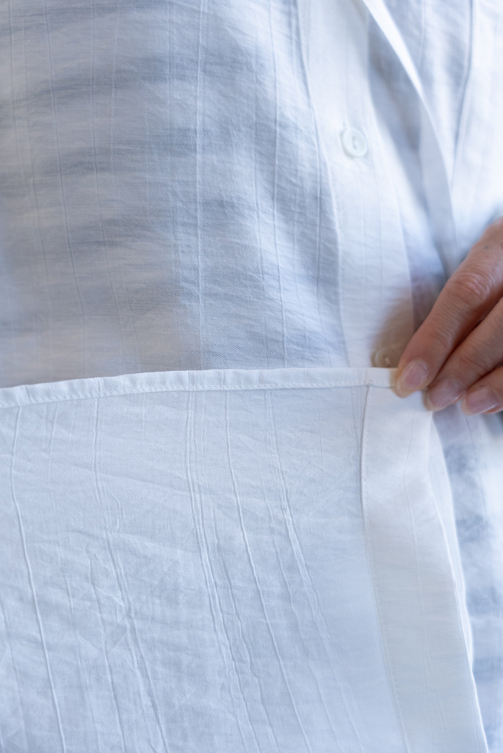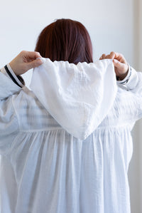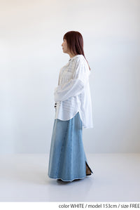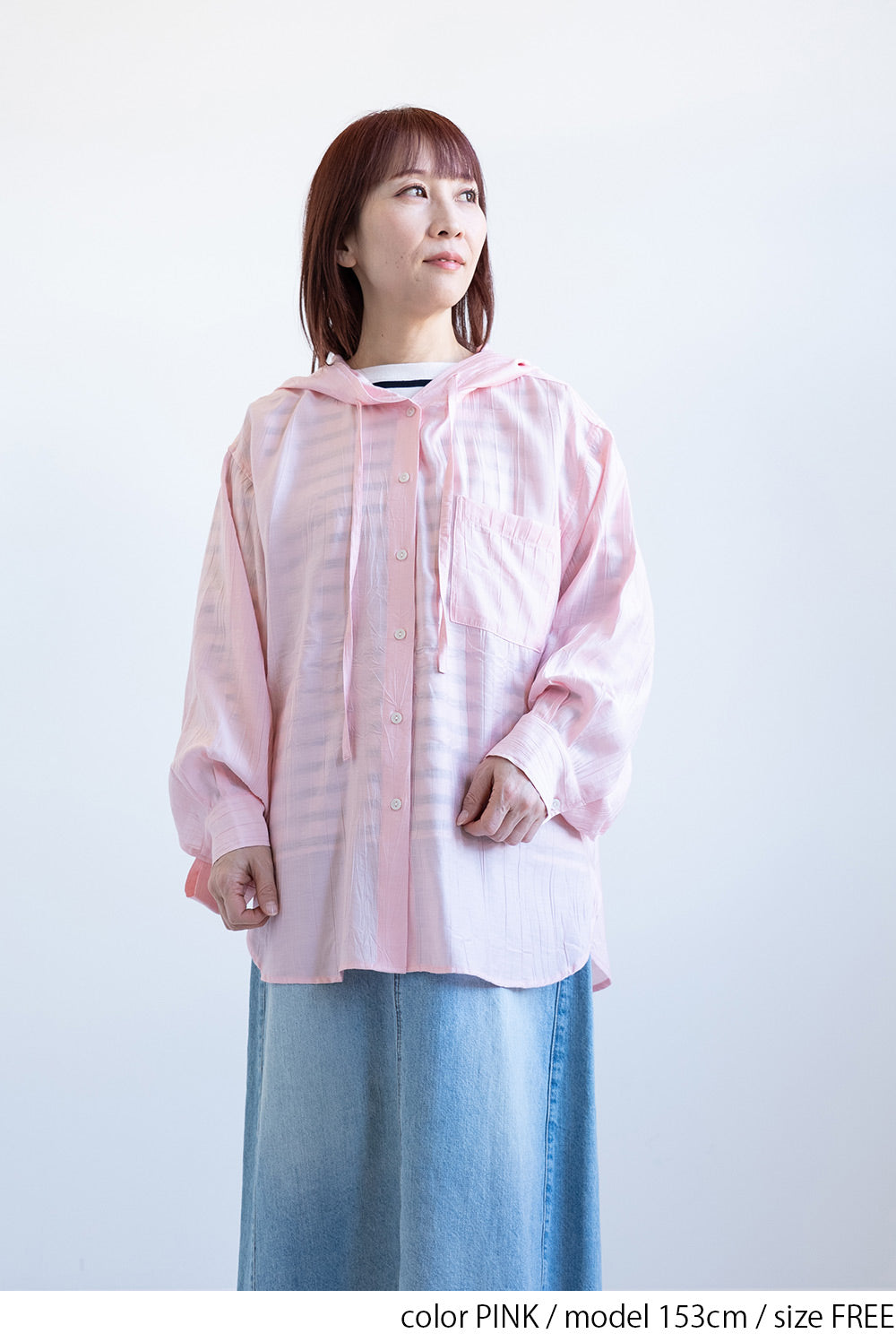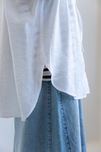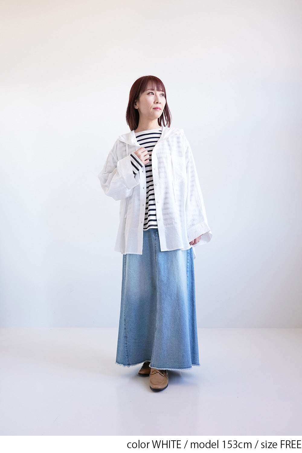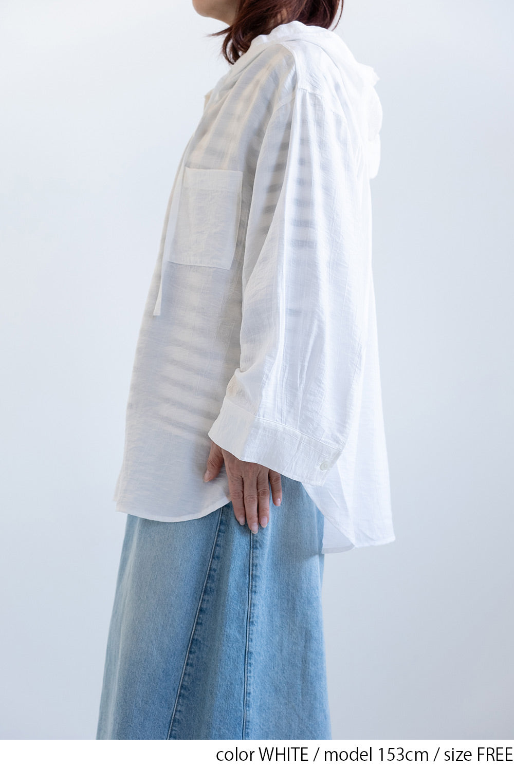 軽やかさと抜け感をまとう、フードシャツチュニック。