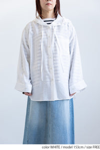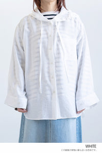 シャツデザインにフードをプラスすることで、きれいめとカジュアルをバランスよくミックスした一枚です。