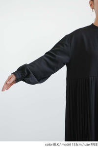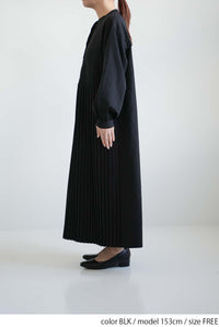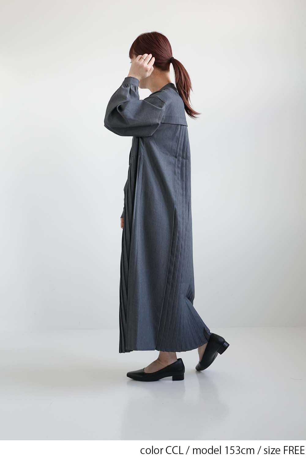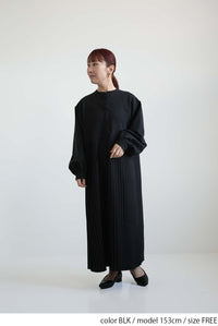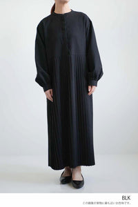 上品さとリラックス感を兼ね備えた、大人のためのプリーツワンピース。