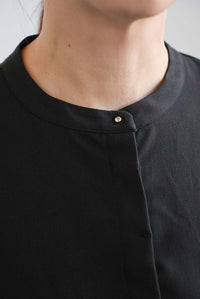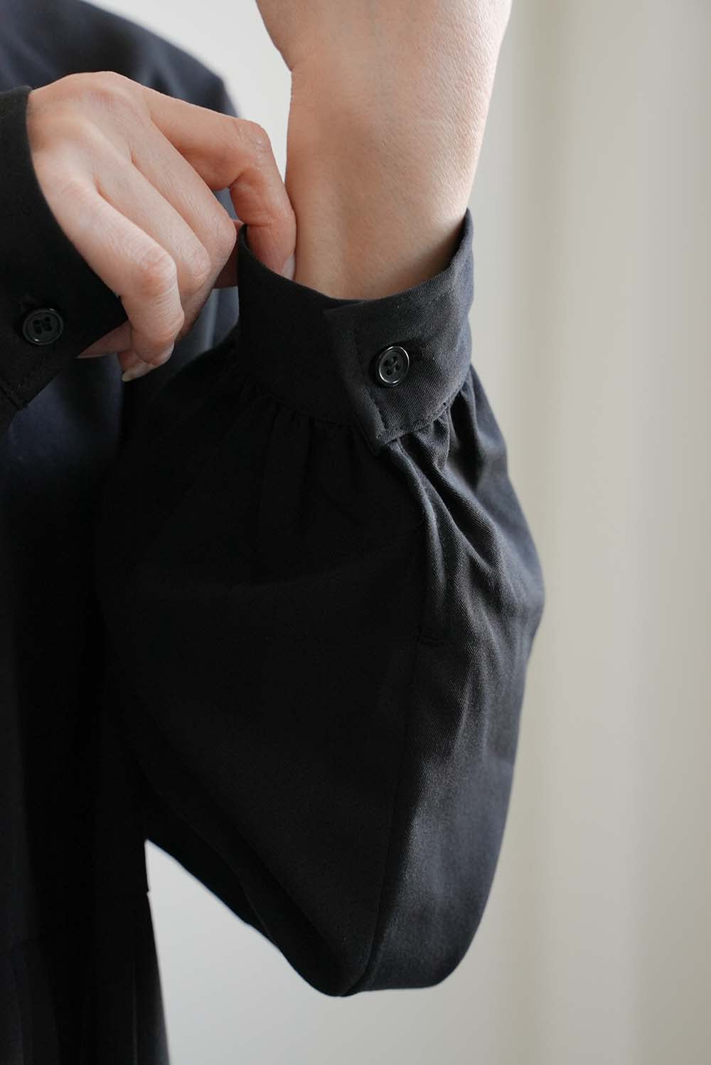 身頃はすっきりとしたクルーネックで、顔まわりをやさしく引き立てるデザイン。