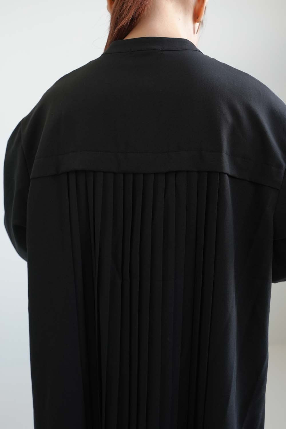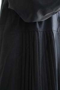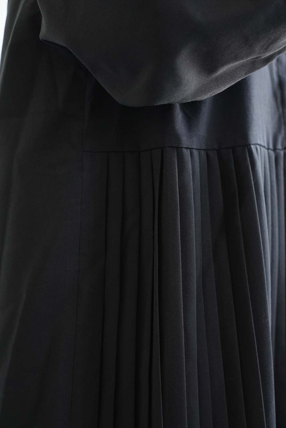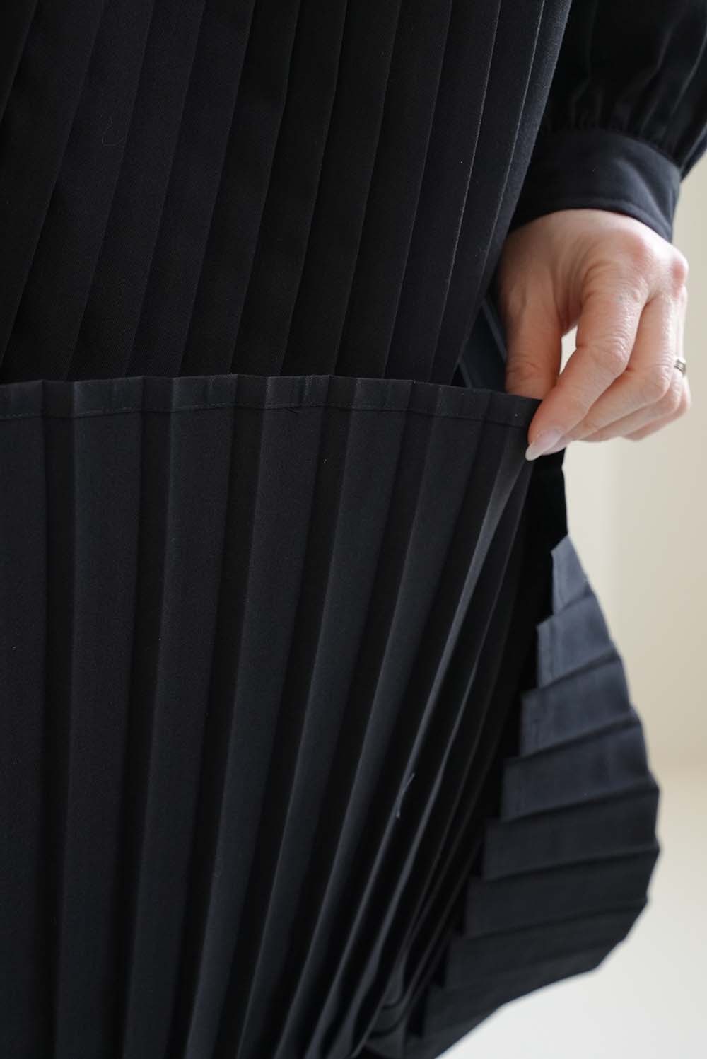 前はウエストから、後ろは背中から切り替えられた広がる細かなプリーツが、縦のラインを強調し自然とスタイルアップを叶えます。