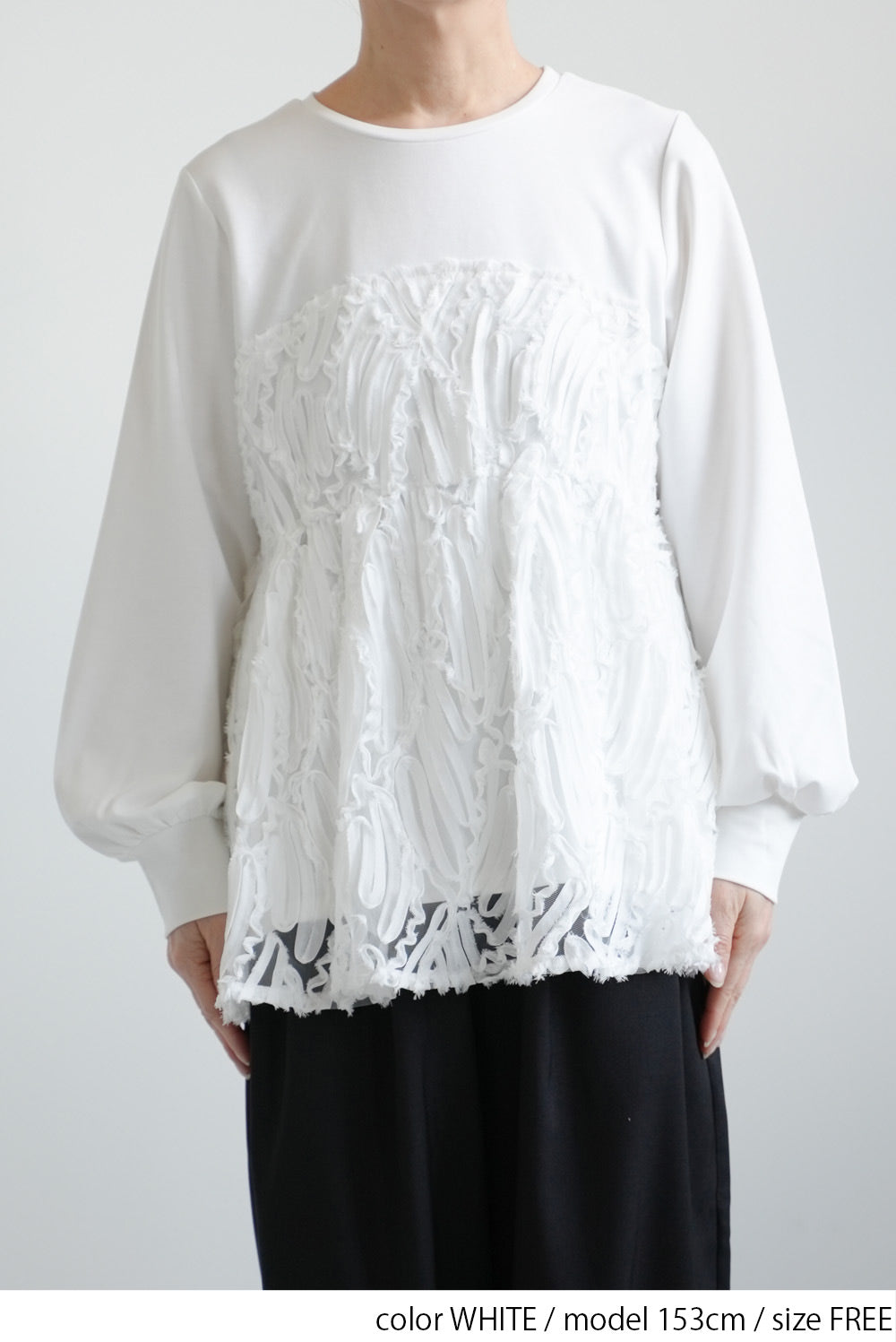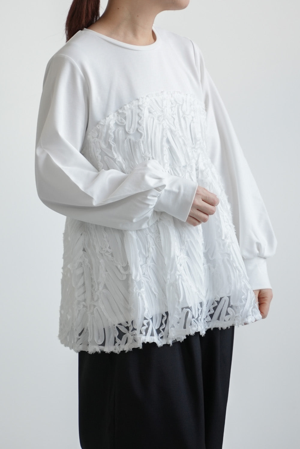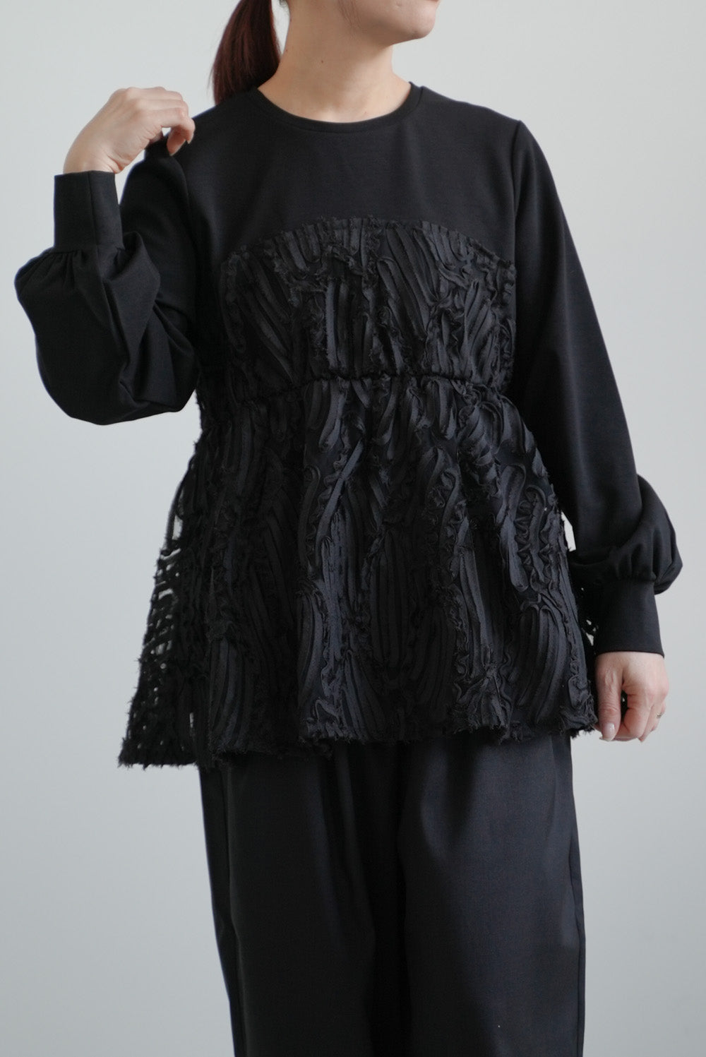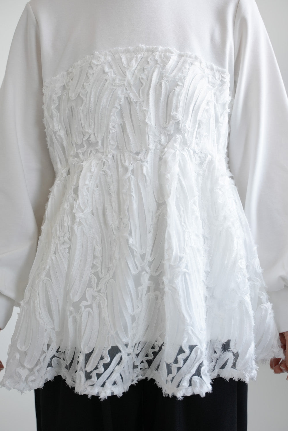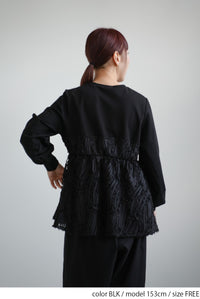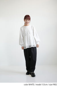 立体感のあるテープ刺繍をレイヤードした、存在感たっぷりのプルオーバー。
