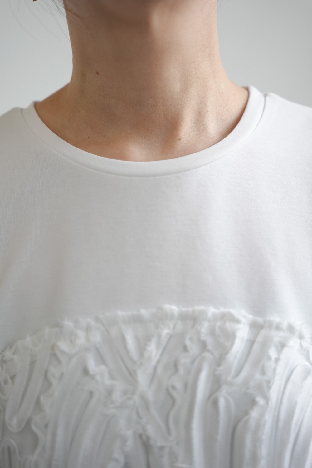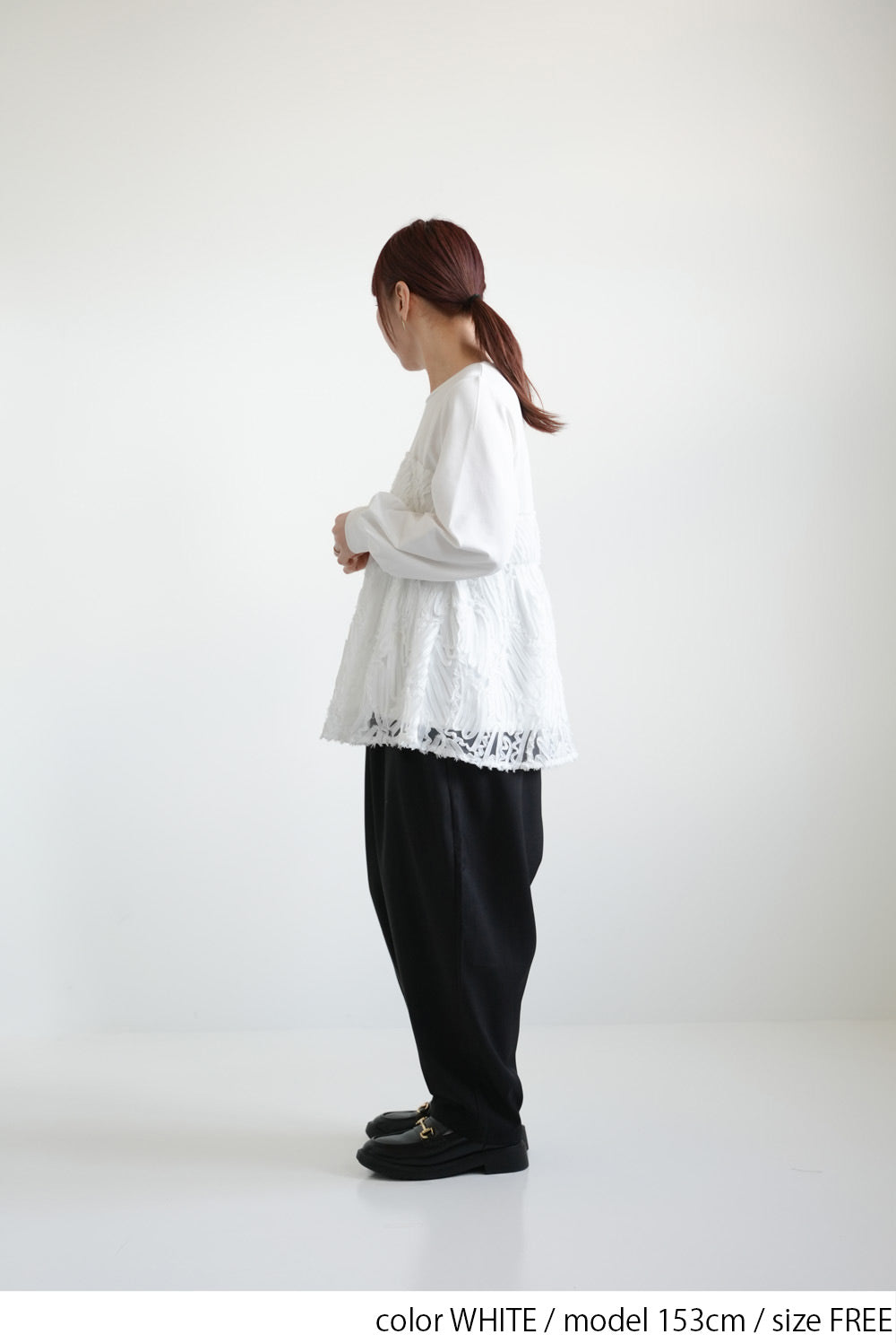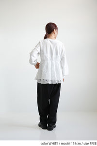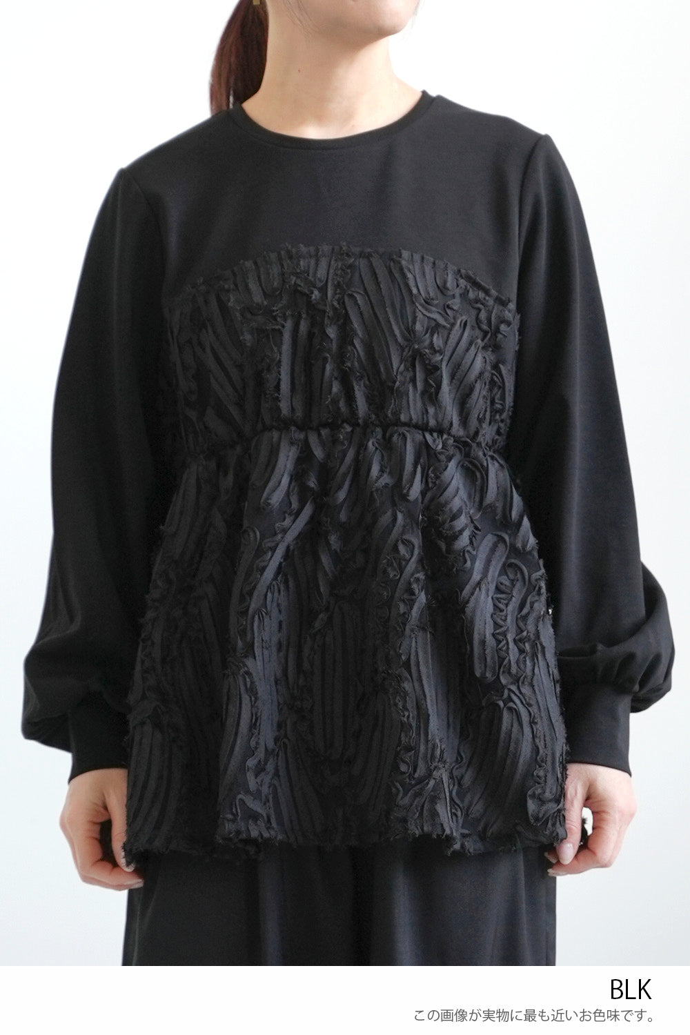 少し厚みのあるカットソー素材をベースにしているので、1枚でも安心感のある着心地です。