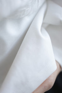 ポリエステル混でシワになりにくく、綿のやさしい肌触りを感じる素材感です。