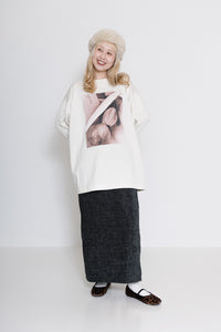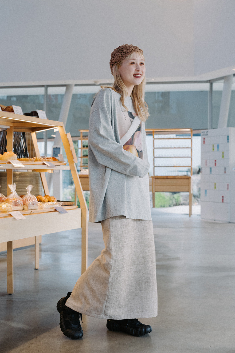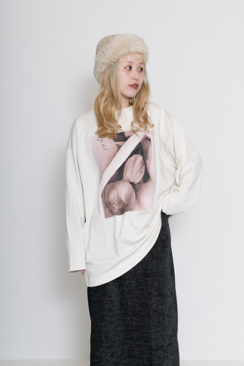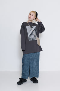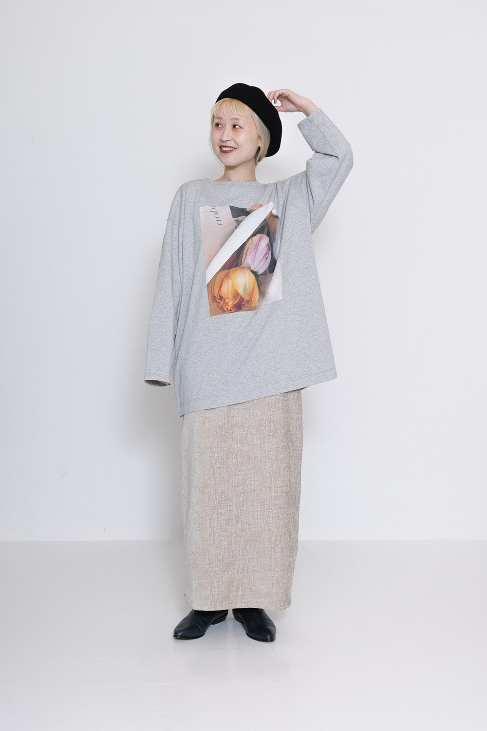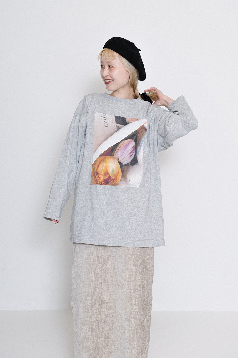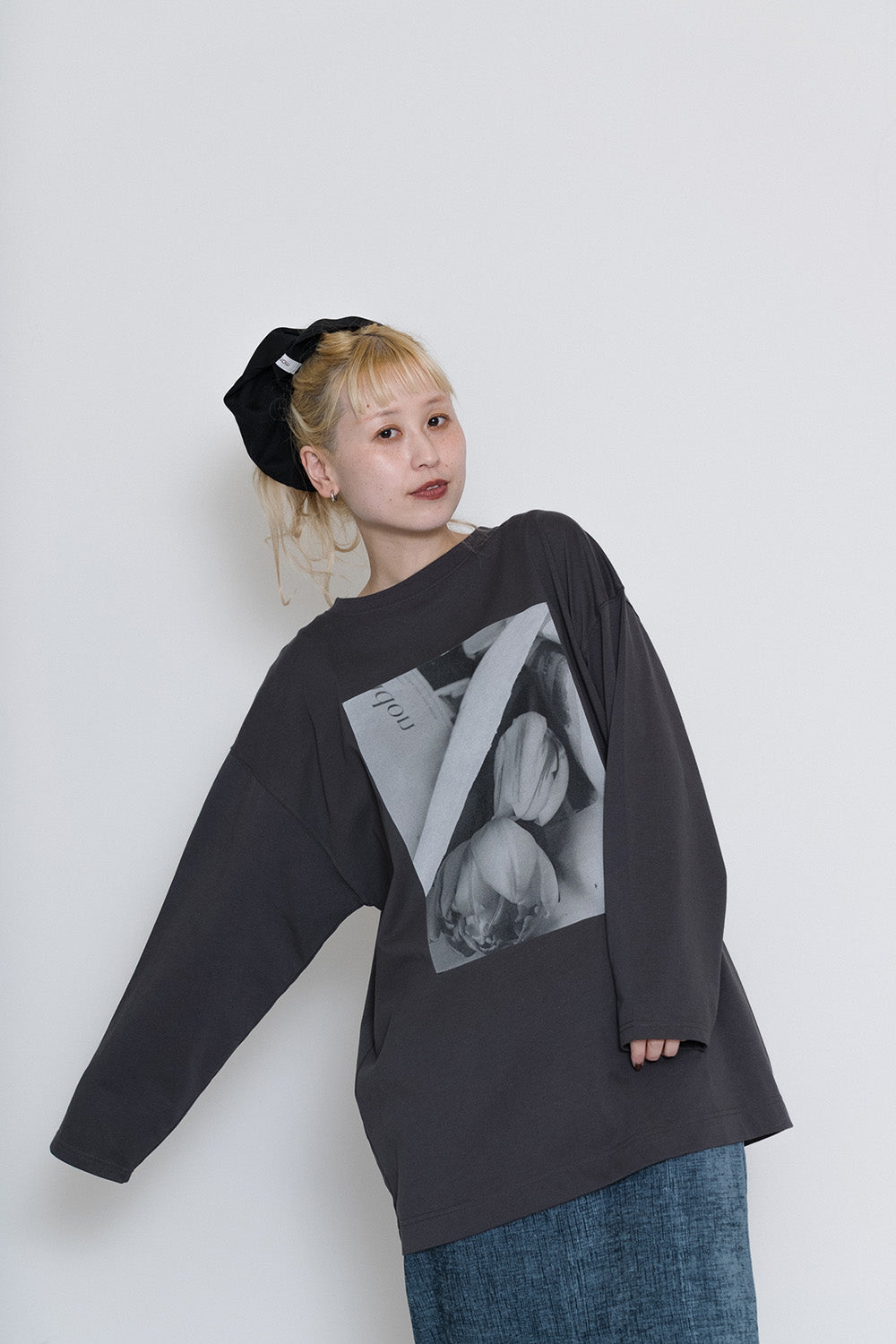 オーバーサイズにしてカジュアル感を演出しながら、フォトプリントのシックな色合いが、コーデをおしゃれにまとめてくれます。