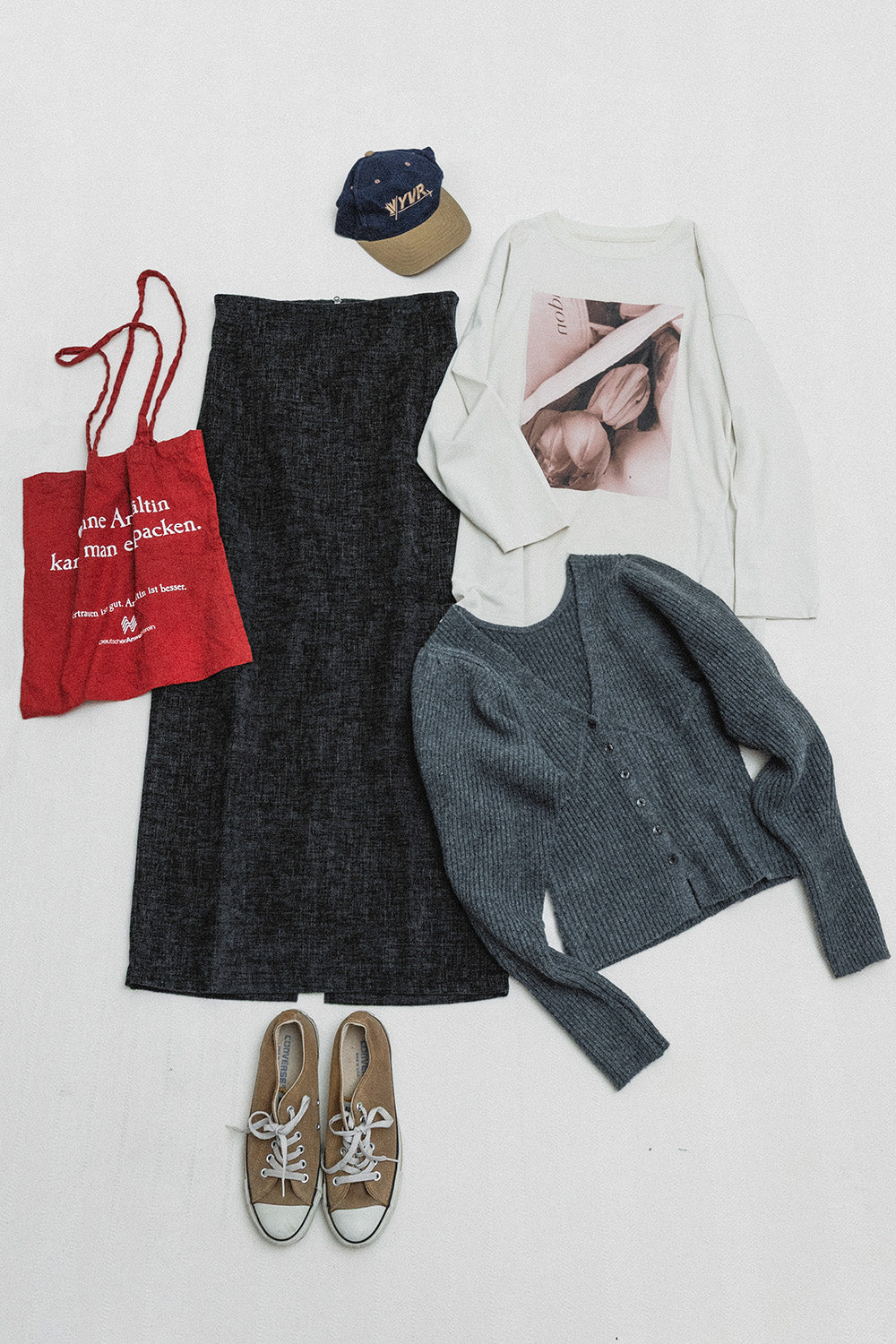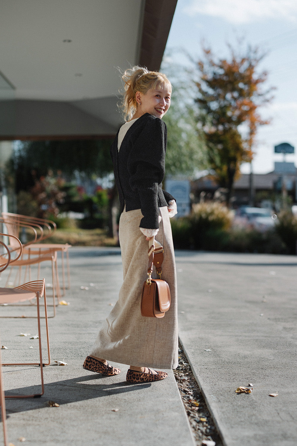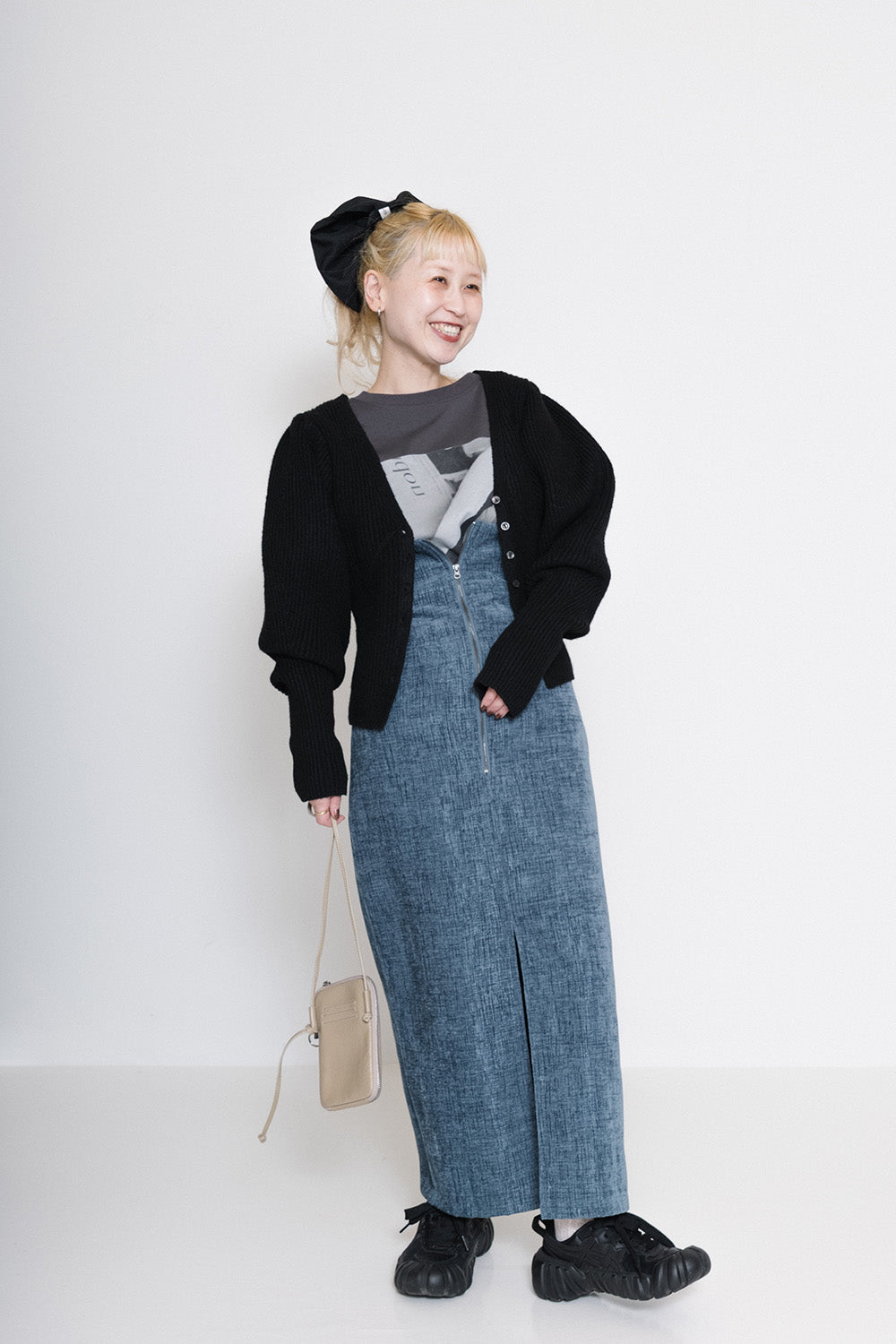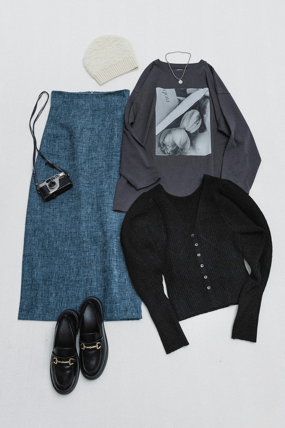 タイトスカート合わせで大人綺麗に、デニムと合わせで大人カジュアルにも。