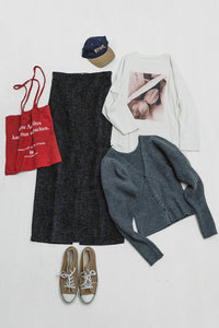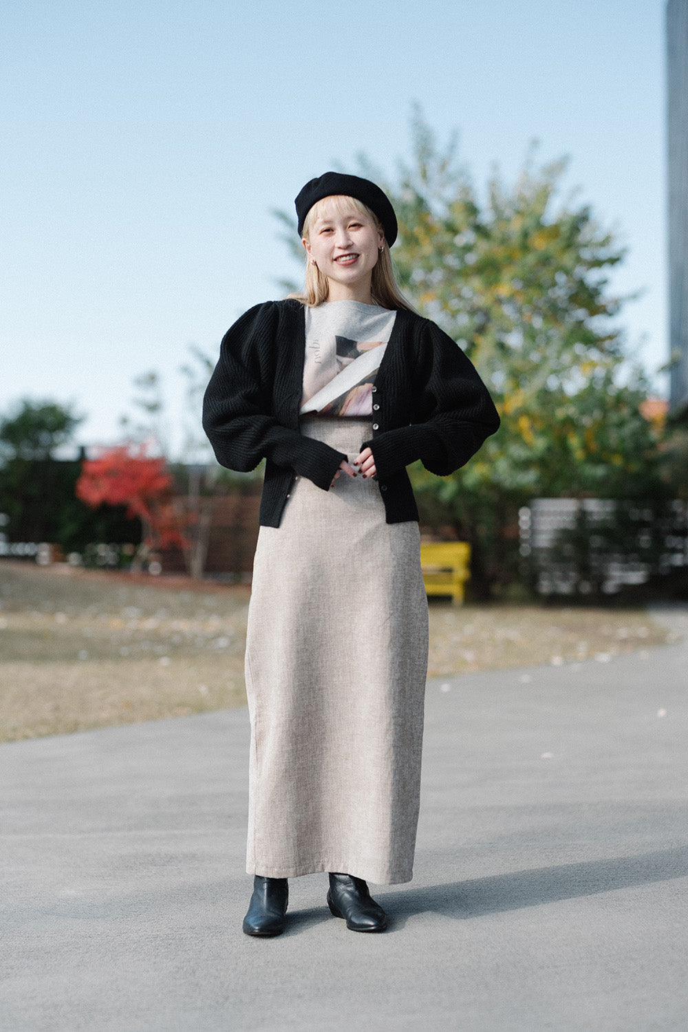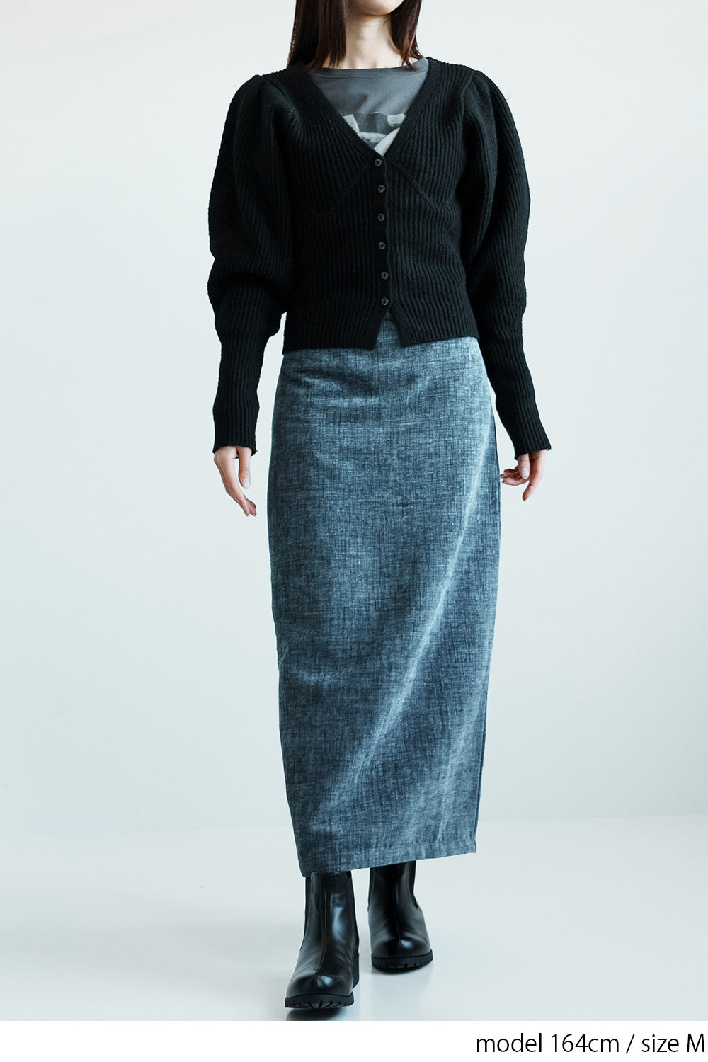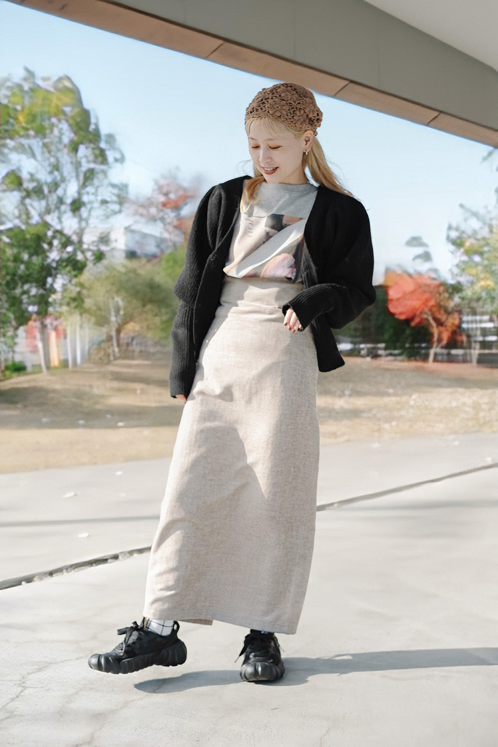 綺麗めのロングスカートに合わせて大人っぽく着まわしを楽しんで頂きたいです。