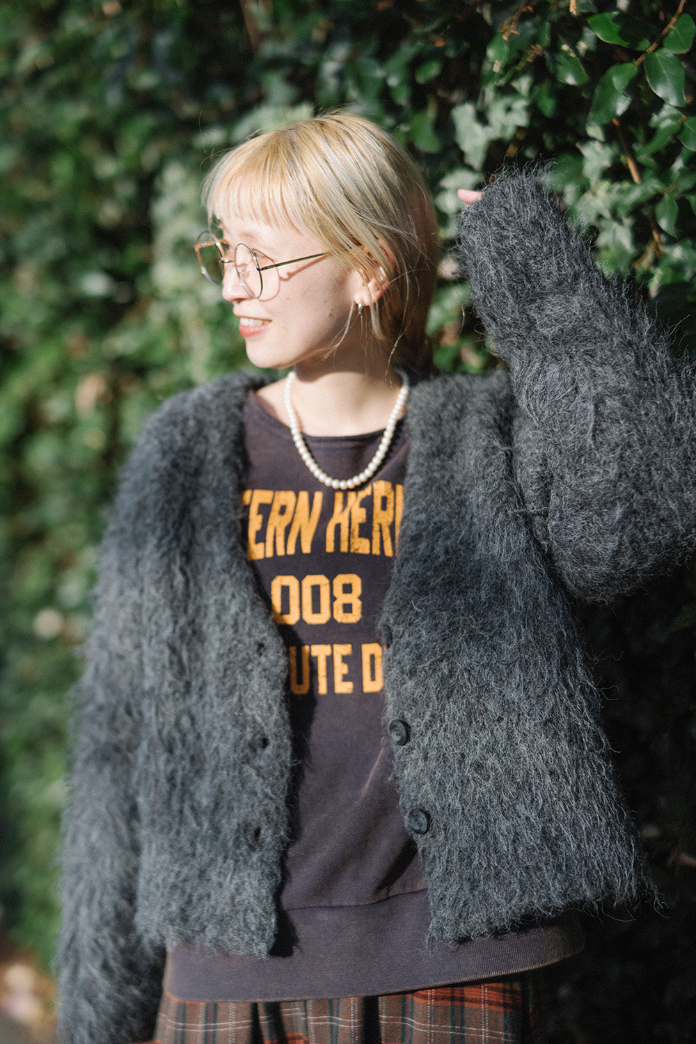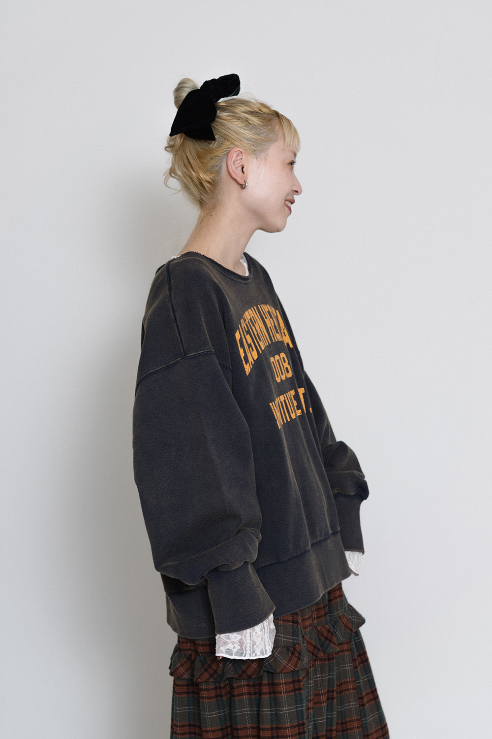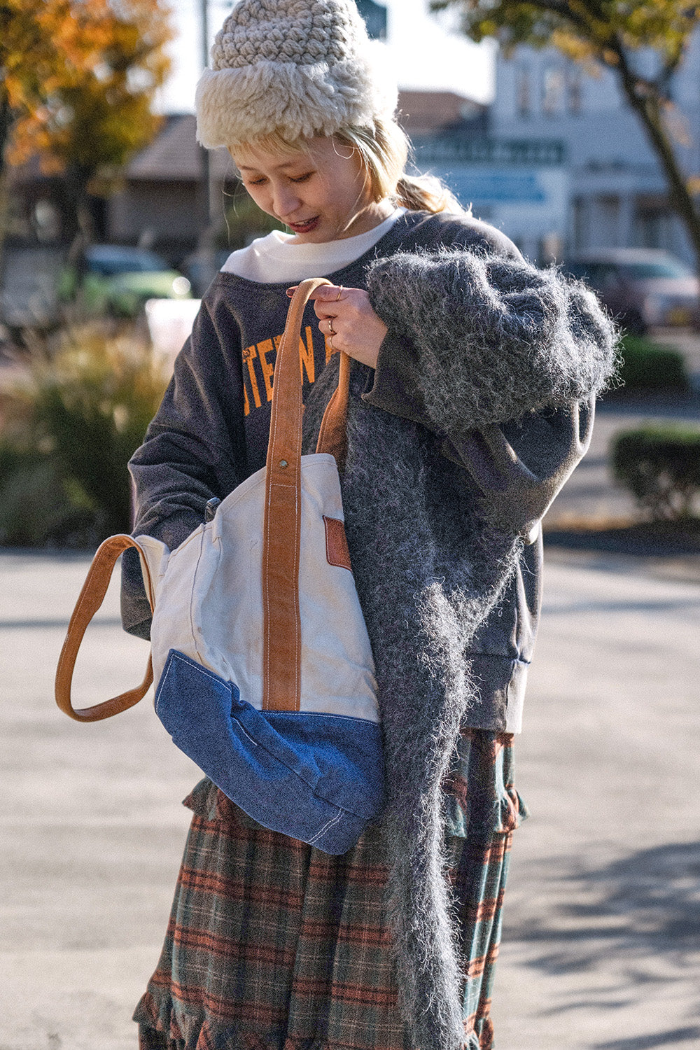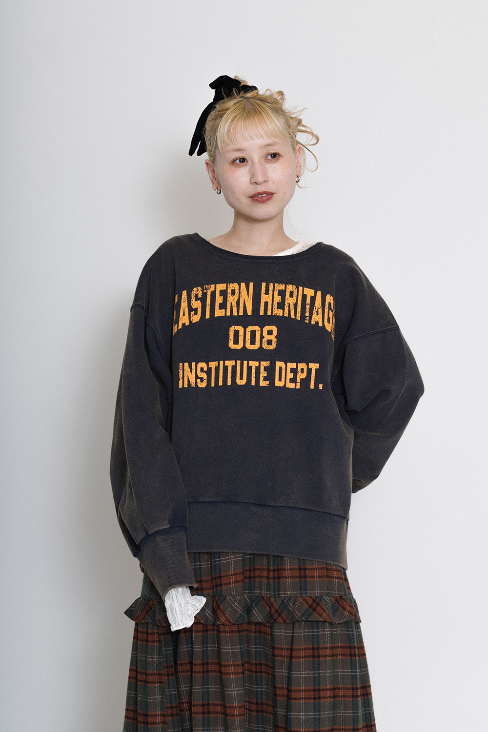 ボリューム感のあるチェックスカートがアクセントに。