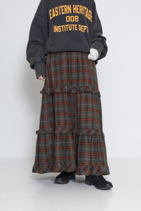 ・ティアードボリュームスカート - ChkGRN / FREE