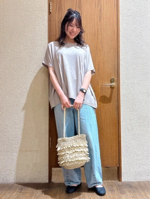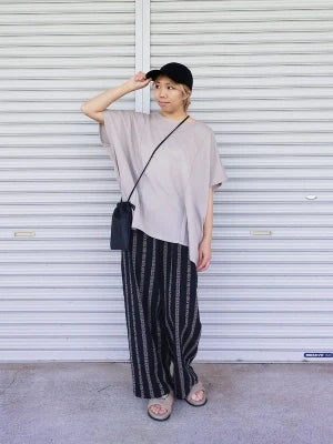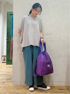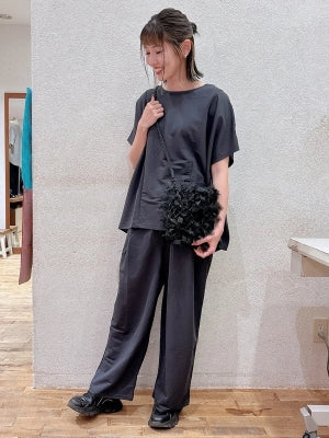 同素材のパンツ(タックワイドパンツ,ベイカーワイドパンツ)と合わせたセットアップスタイルもおすすめです。