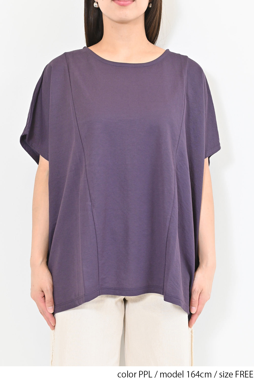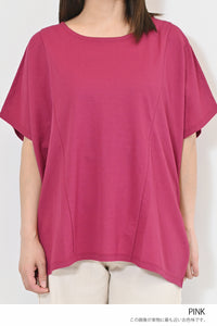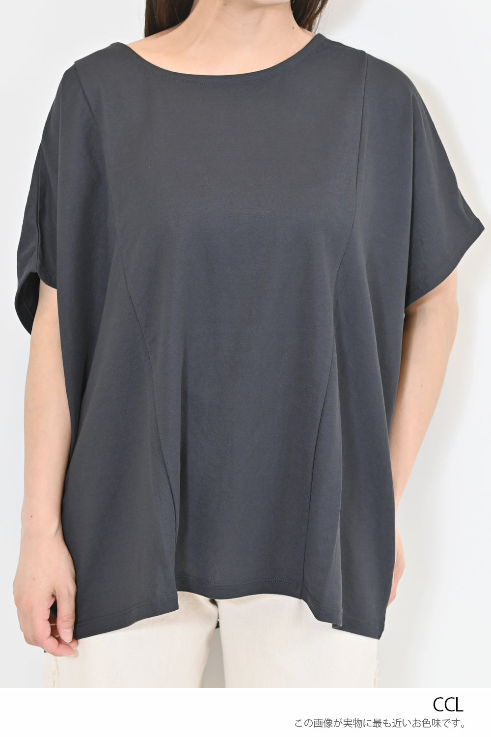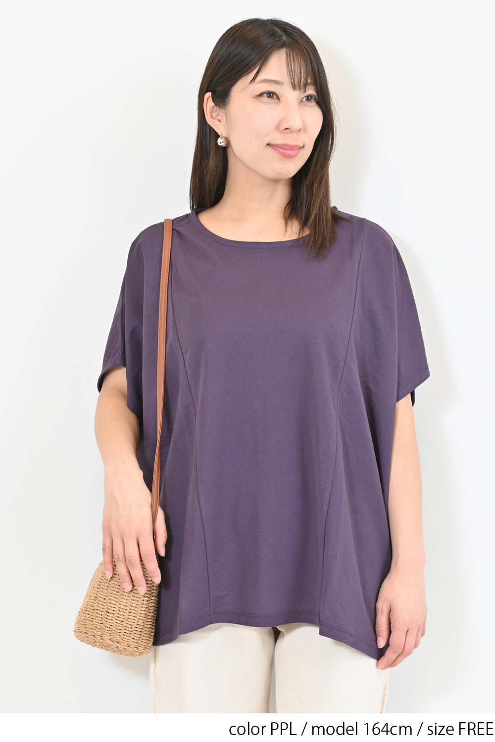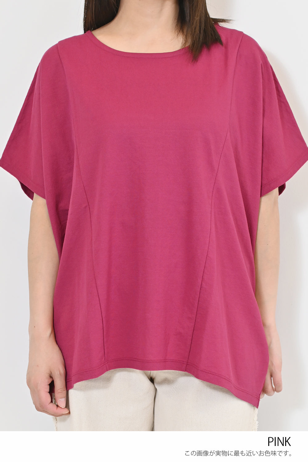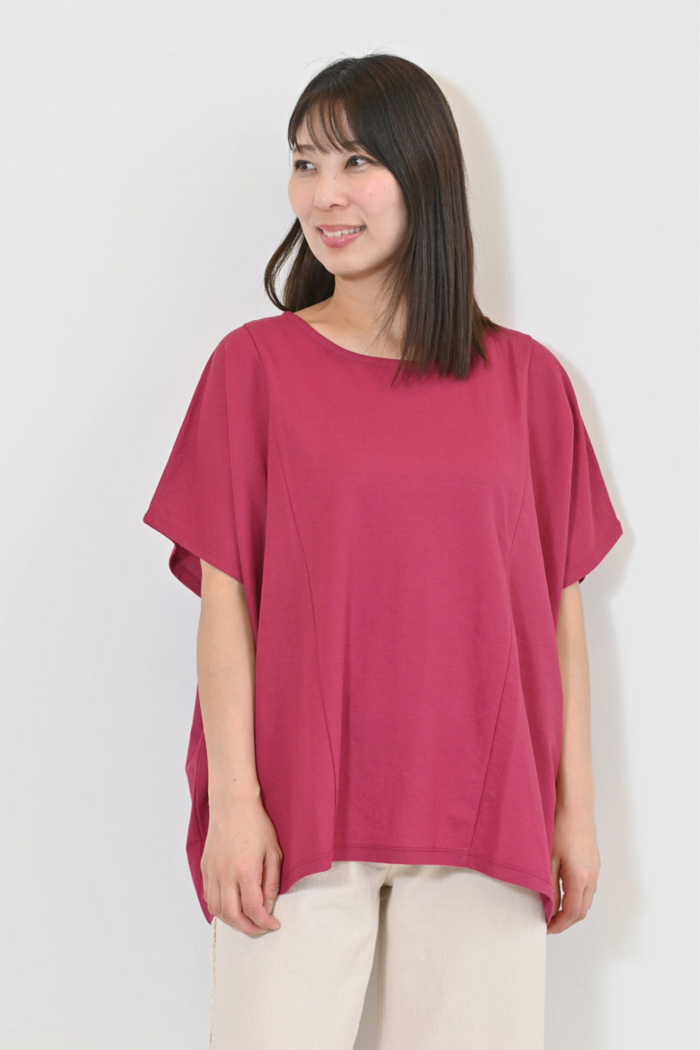 シンプルで着回しやすい、ドルマンシルエットのゆったりプルオーバー。