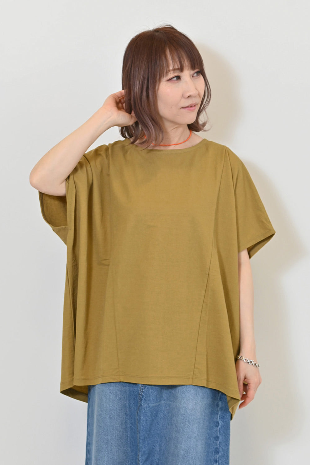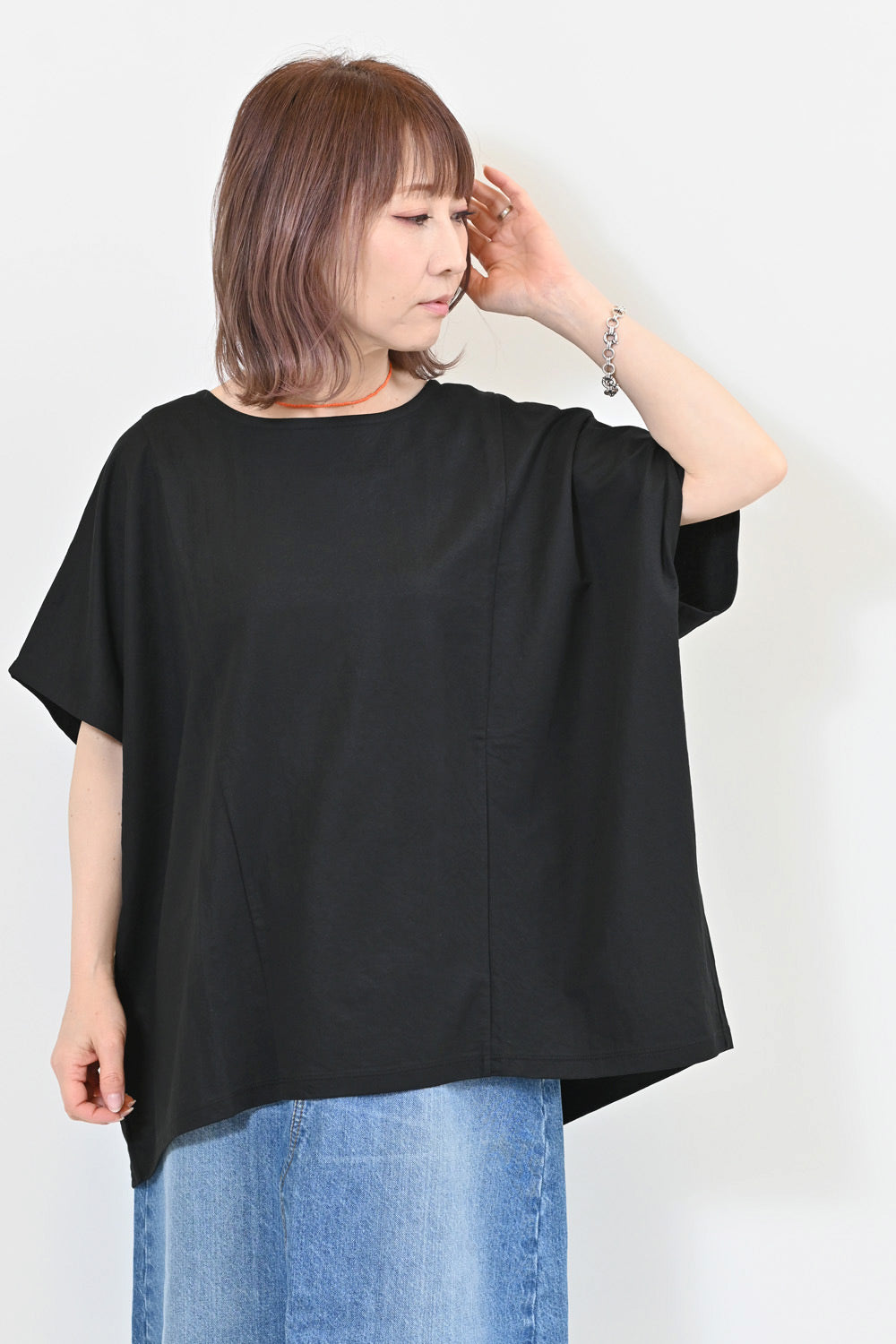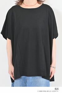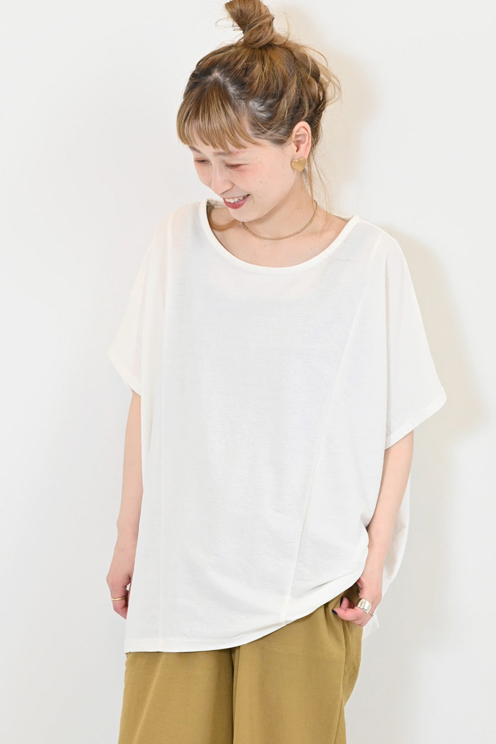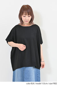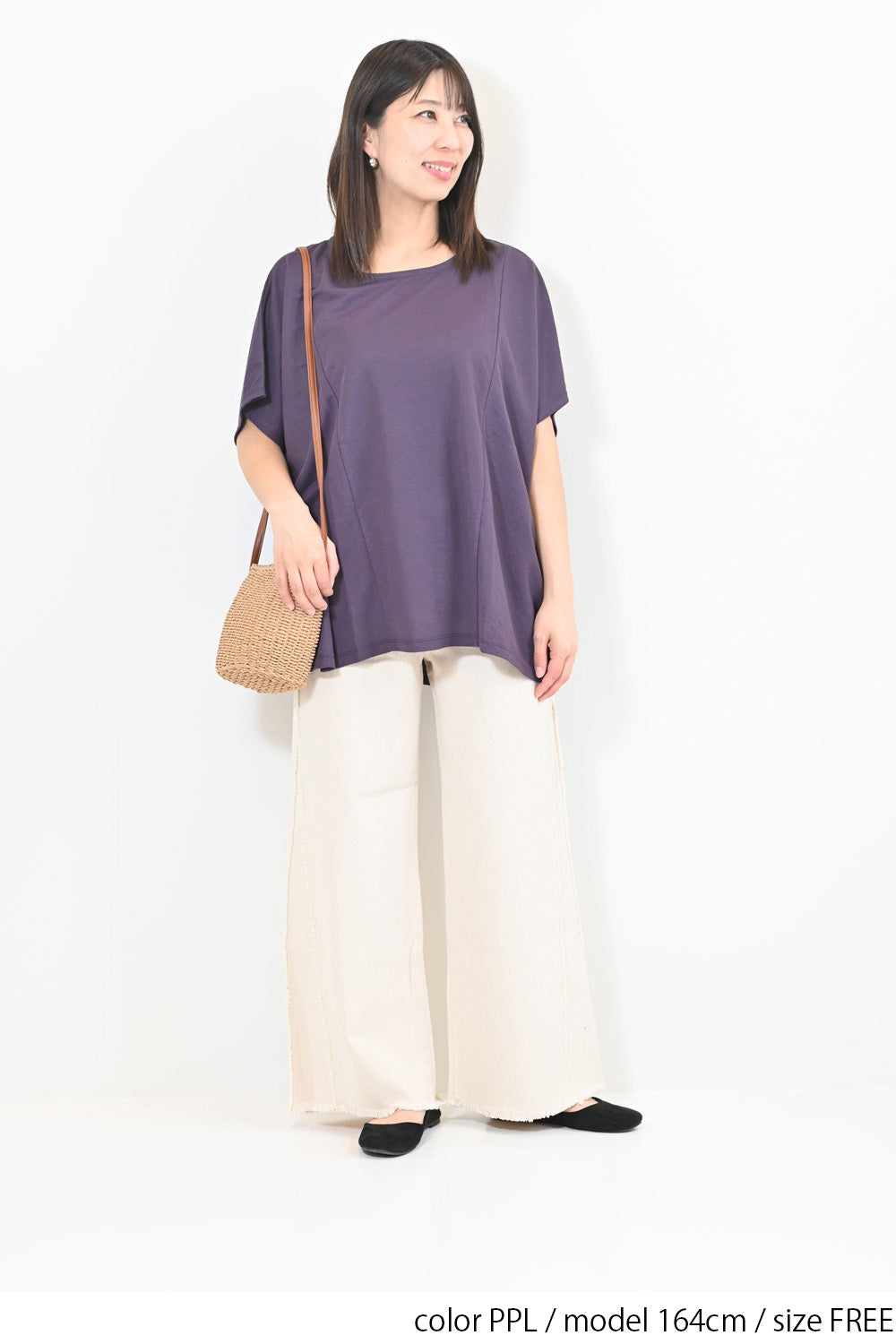 シンプルで着回しやすい、ドルマンシルエットのゆったりプルオーバー。