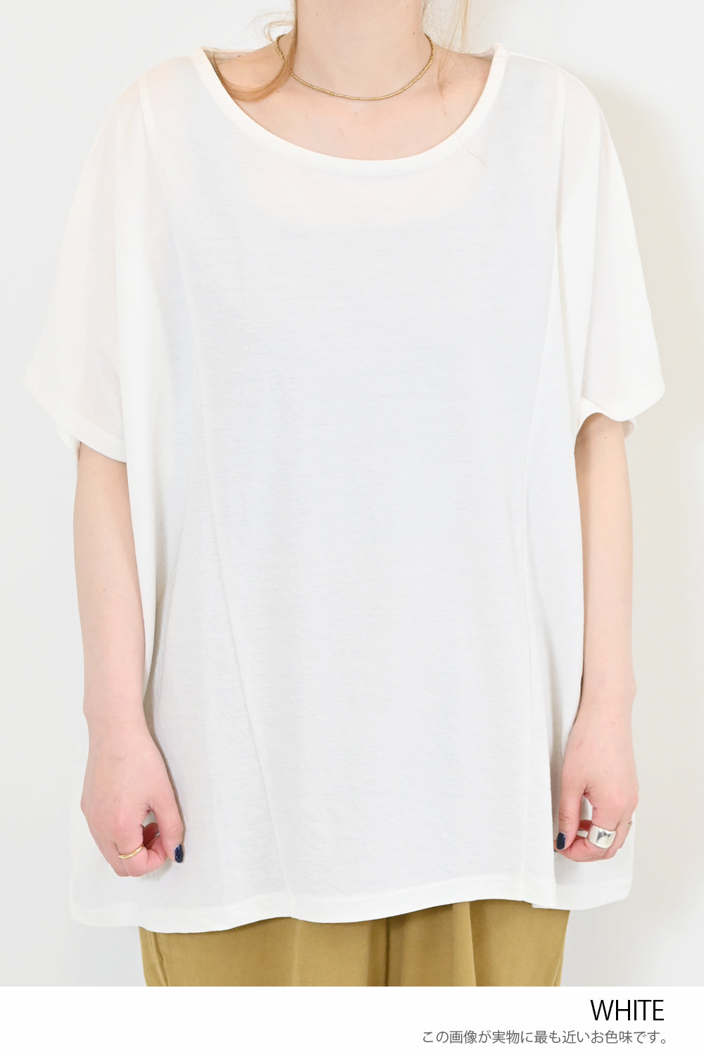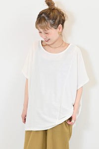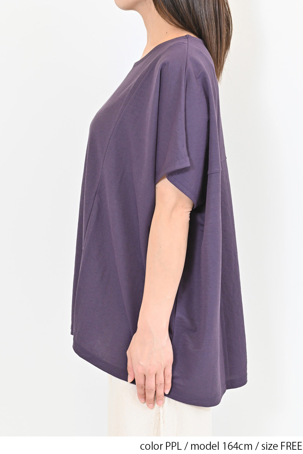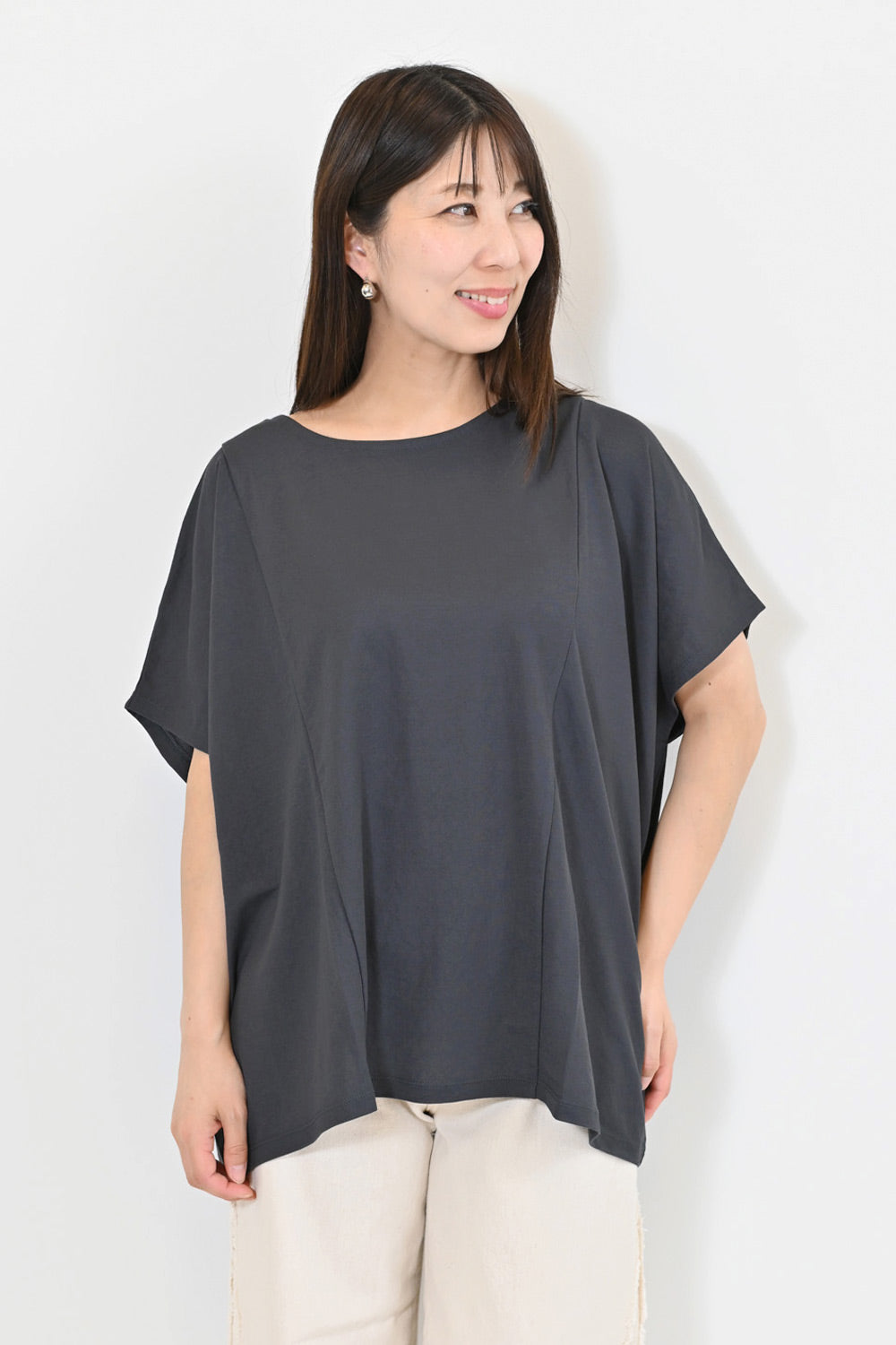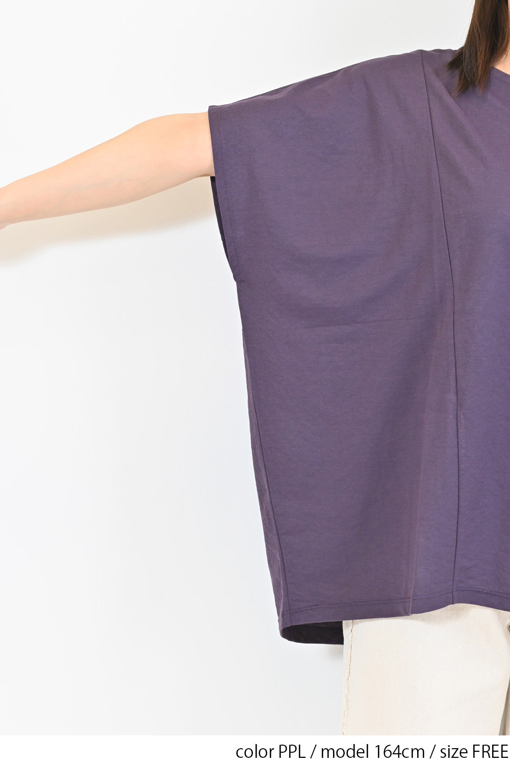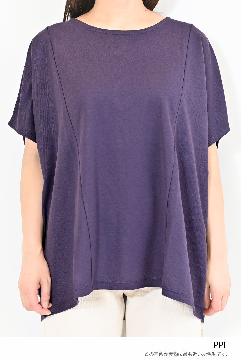 シンプルで着回しやすい、ドルマンシルエットのゆったりプルオーバー。