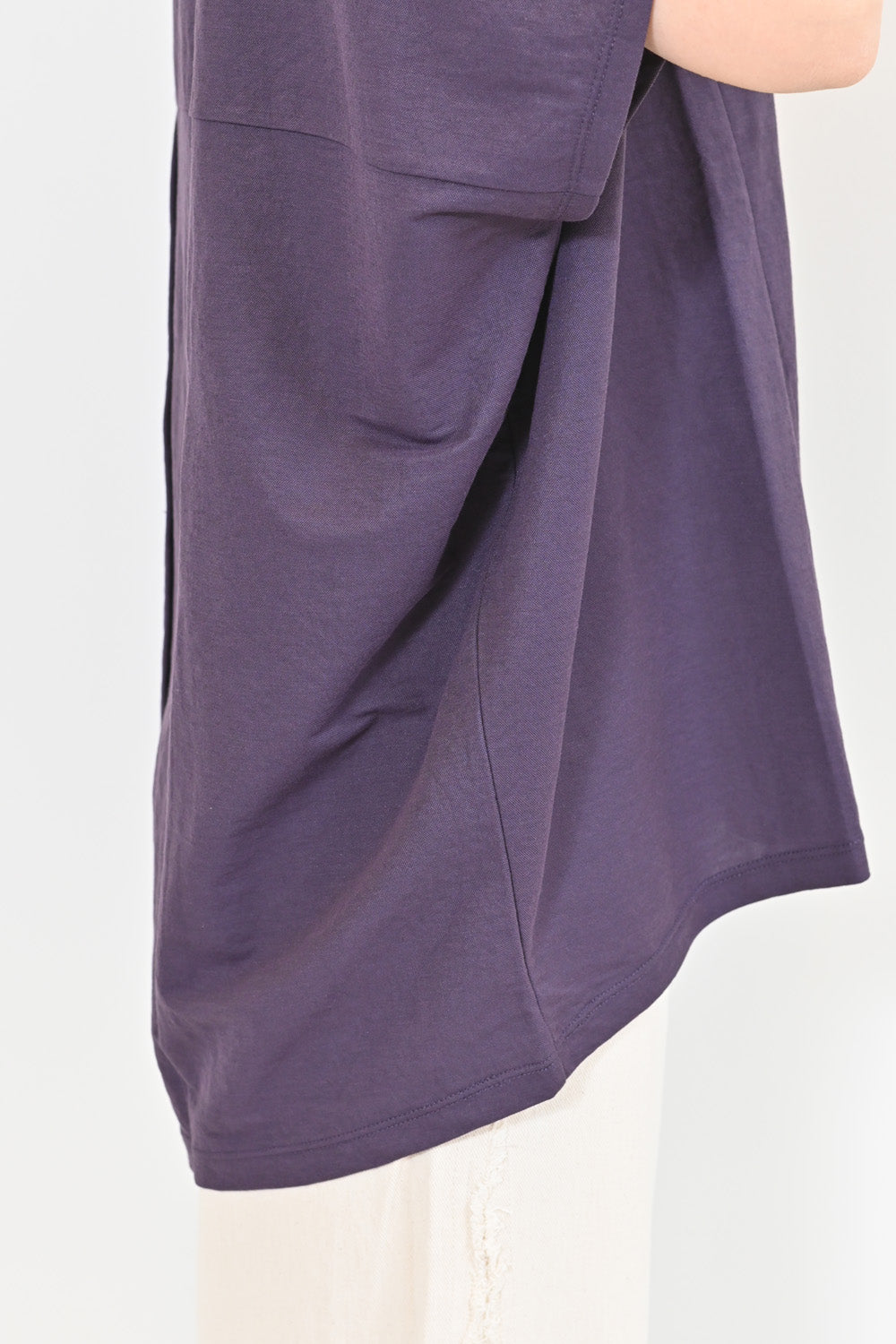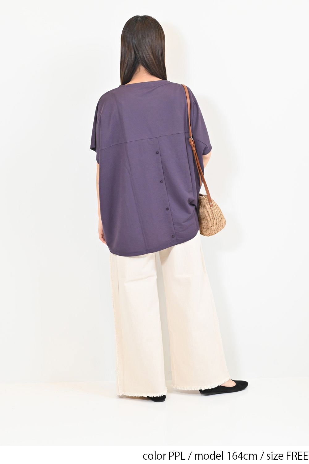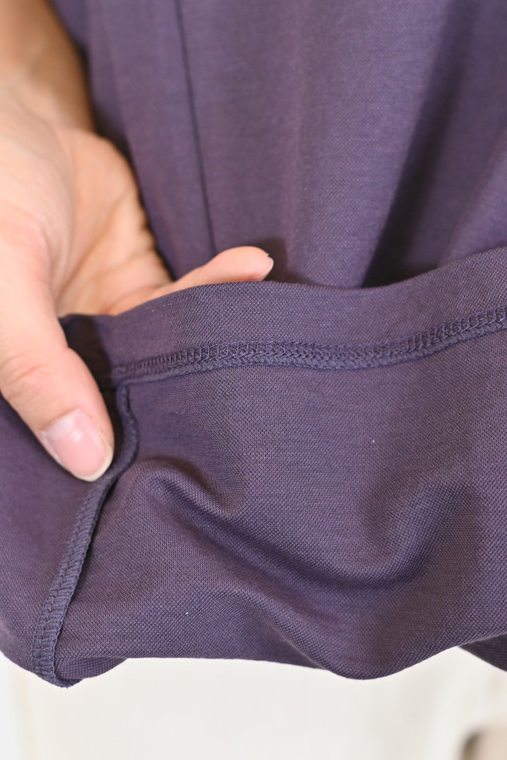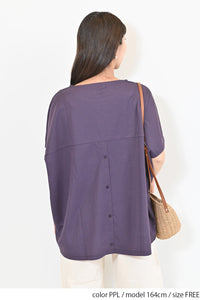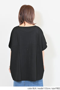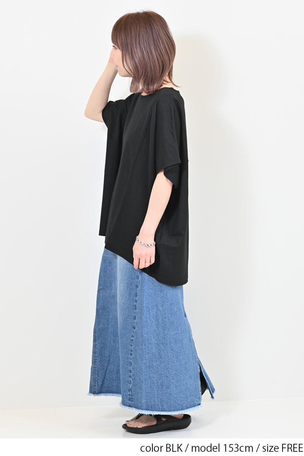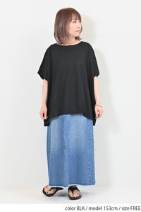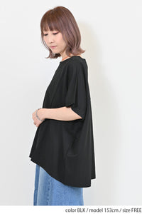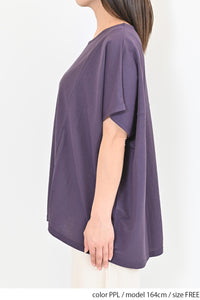シンプルで着回しやすい、ドルマンシルエットのゆったりプルオーバー。