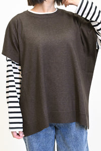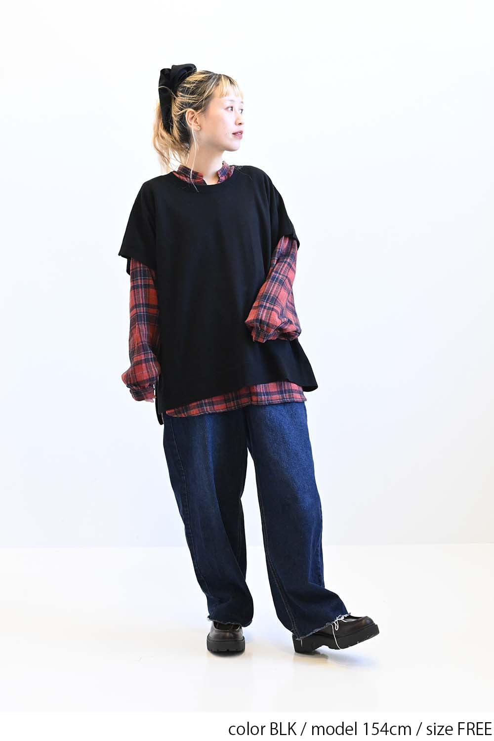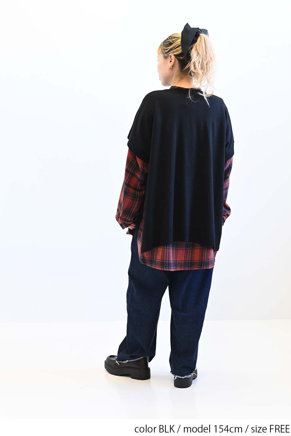 シンプルなシャツや柄物のTシャツなど、お手持ちのトップスと合わせるだけで、ベストのゆったり感を活かして程よくラフなバランスに。