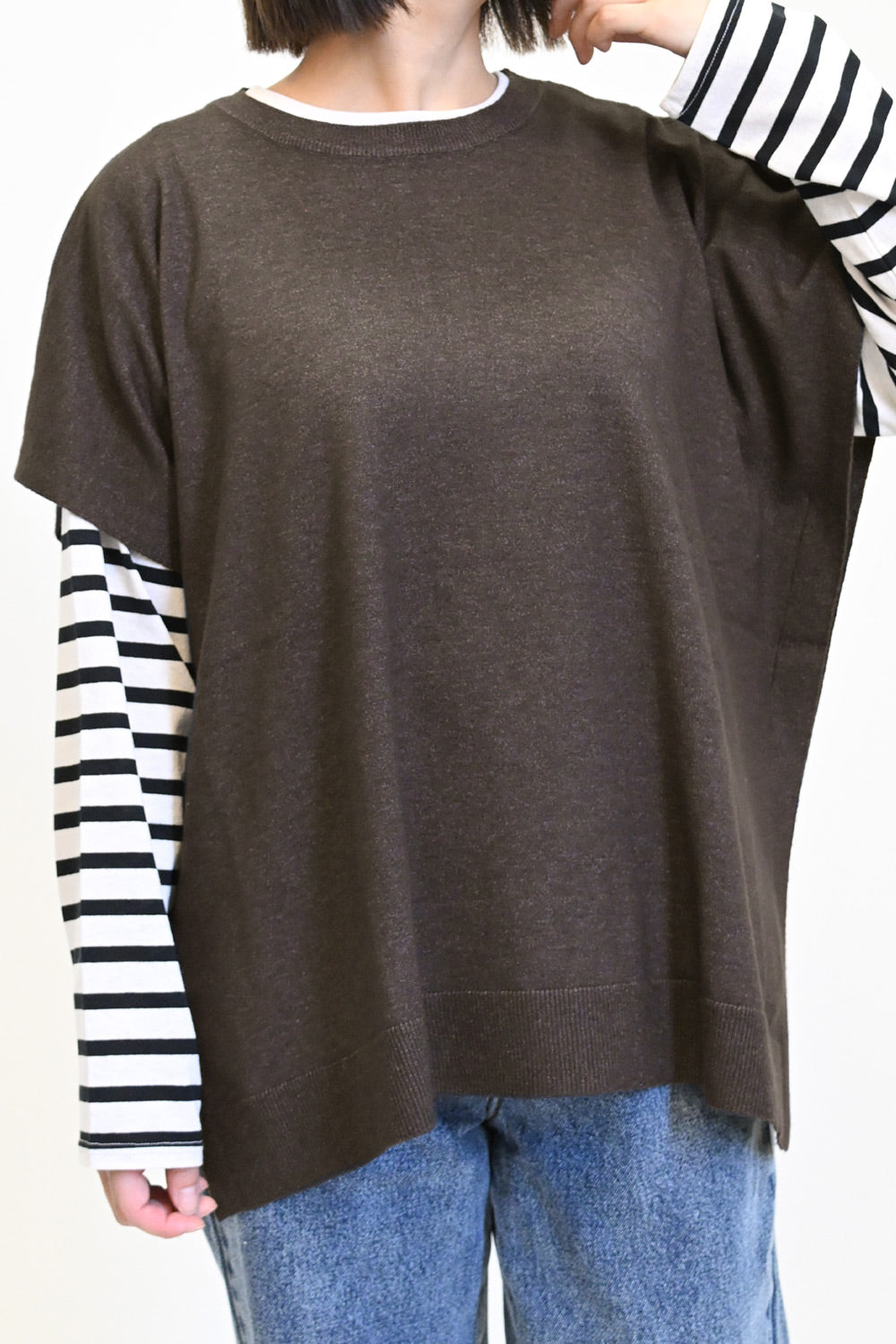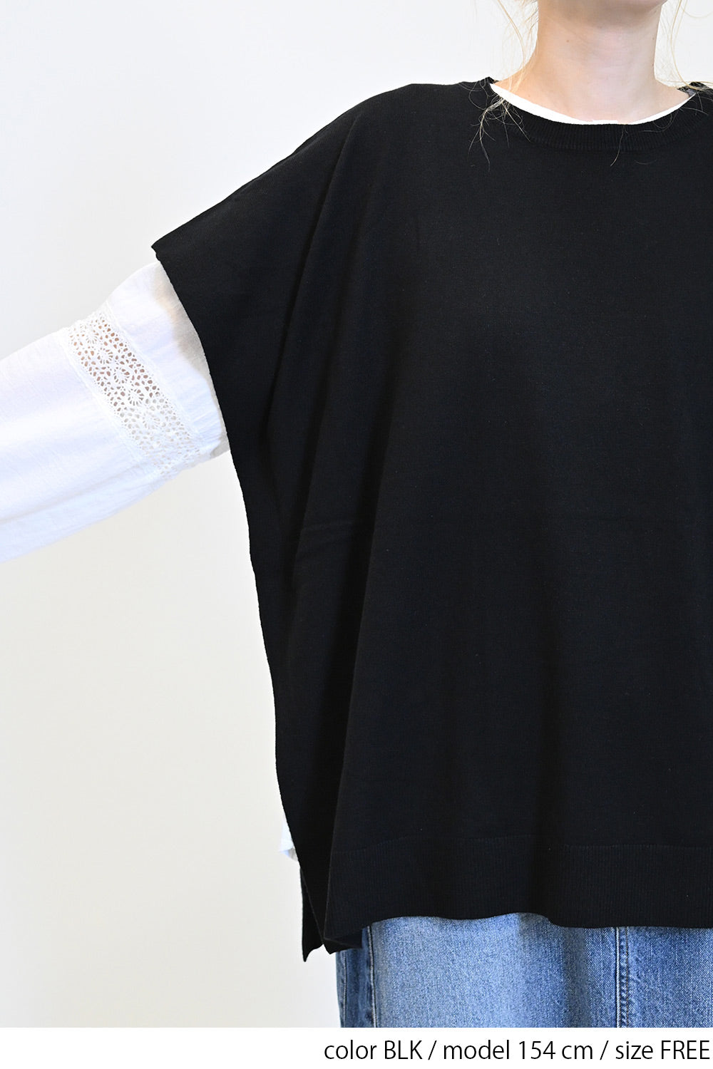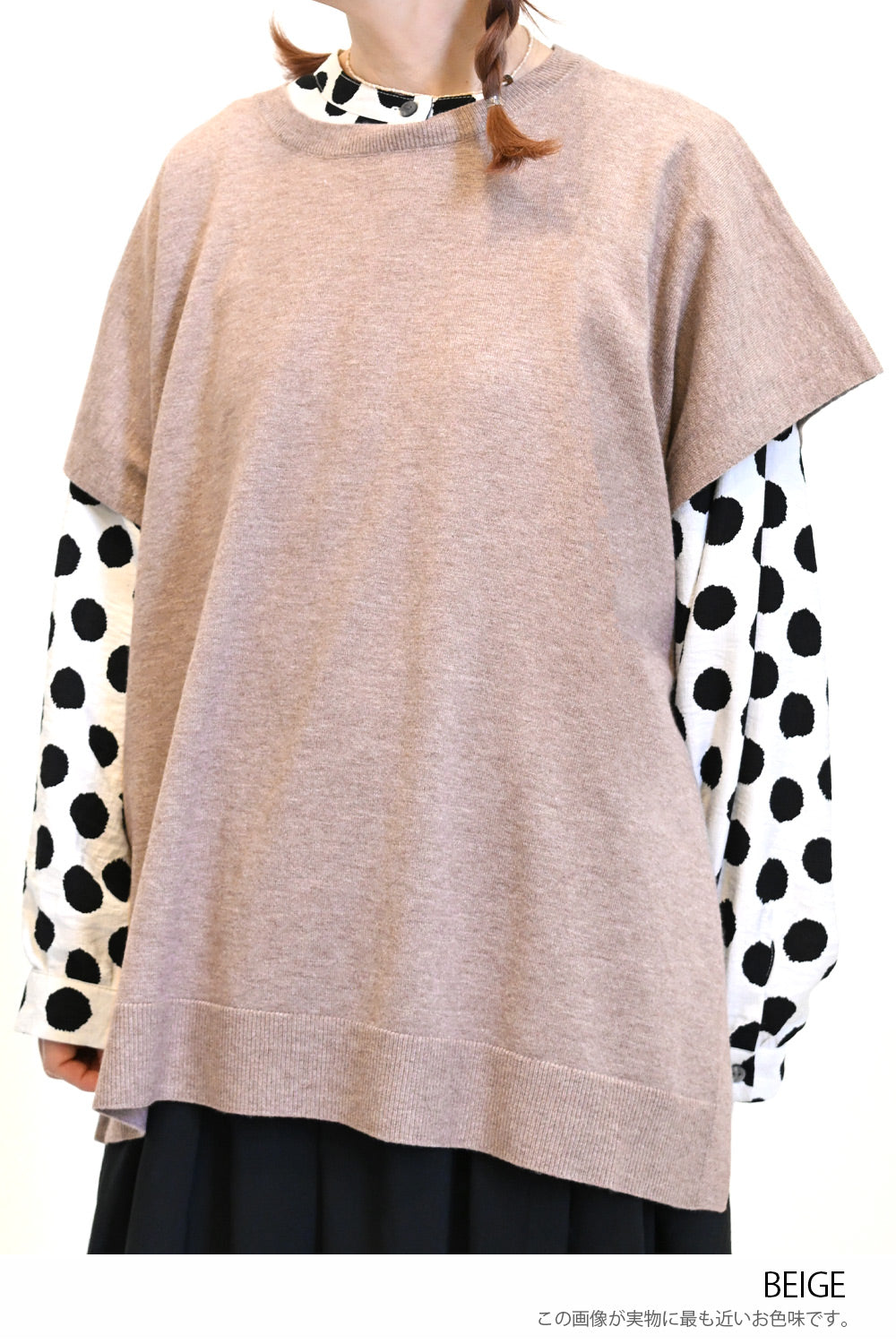 しっとり柔らかな肌触りが心地よいニットポンチョベストです。