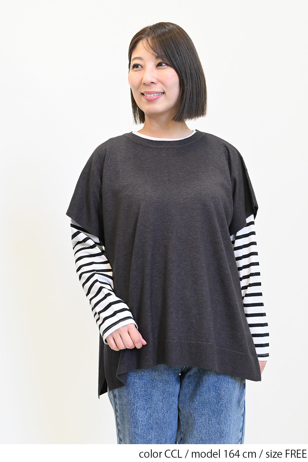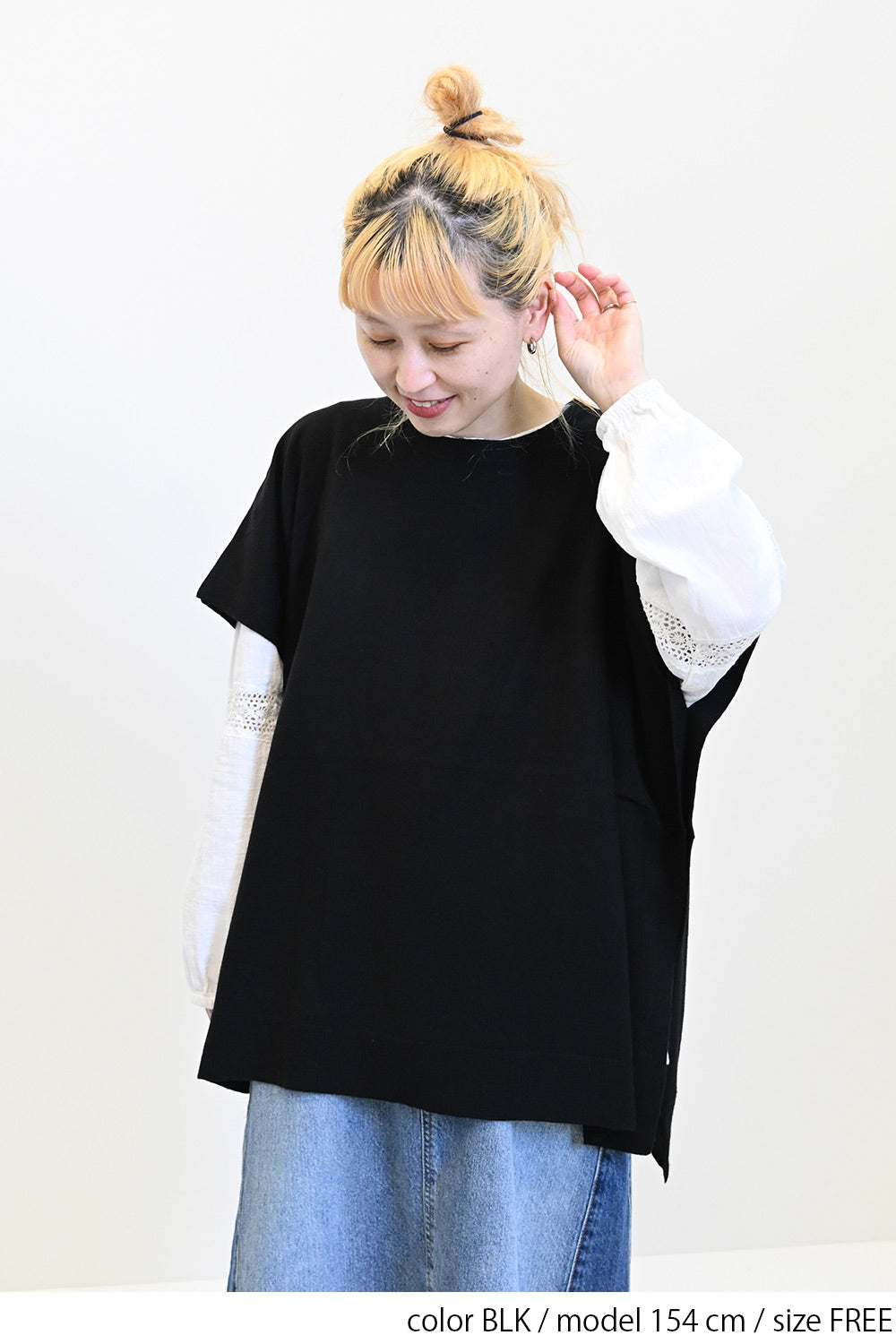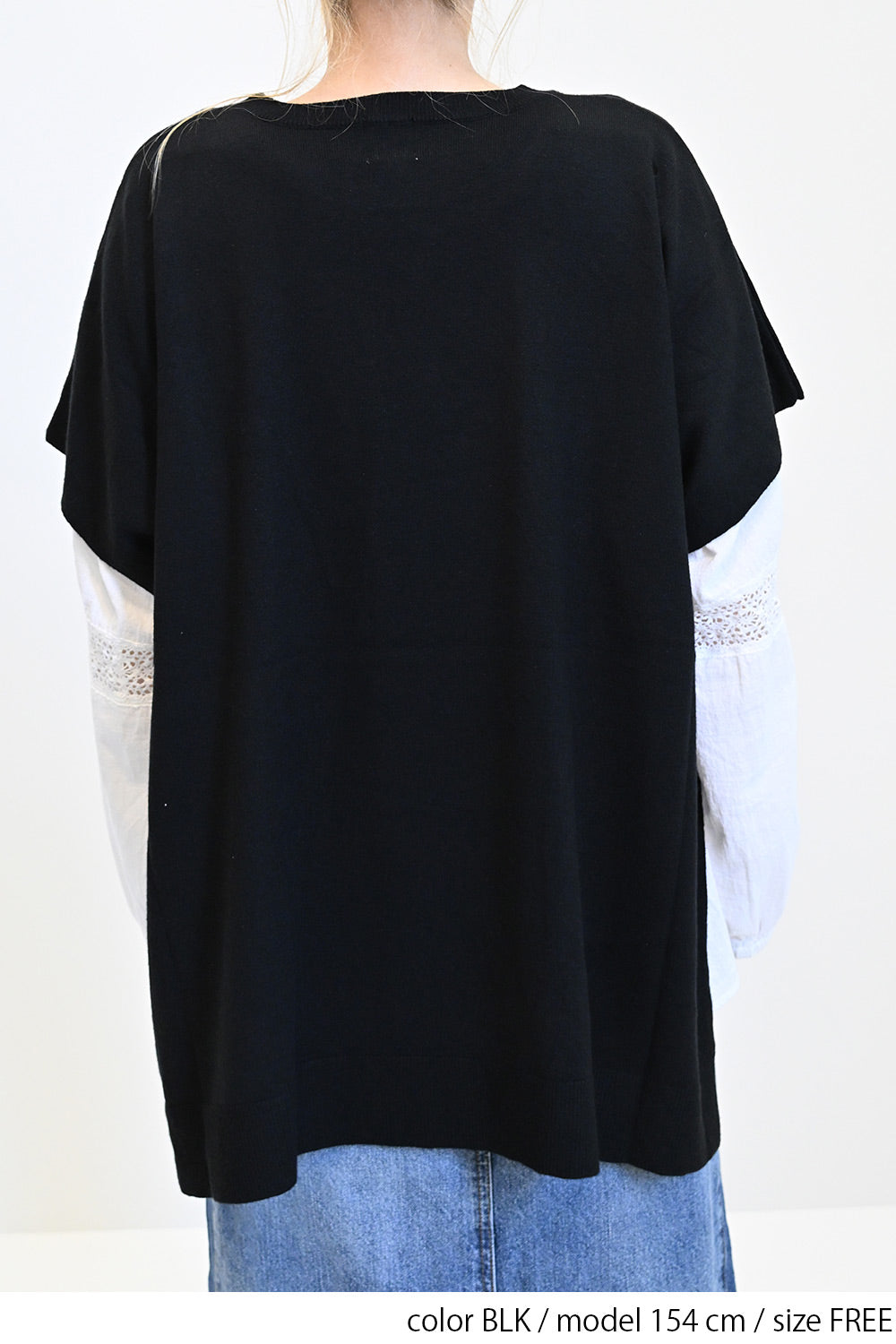 しっとり柔らかな肌触りが心地よいニットポンチョベストです。