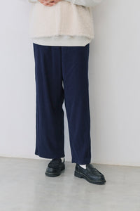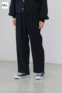 腰回りや太ももにはゆとりがあり、裾に向かって少し絞られることで、丸みとすっきり感を両立。