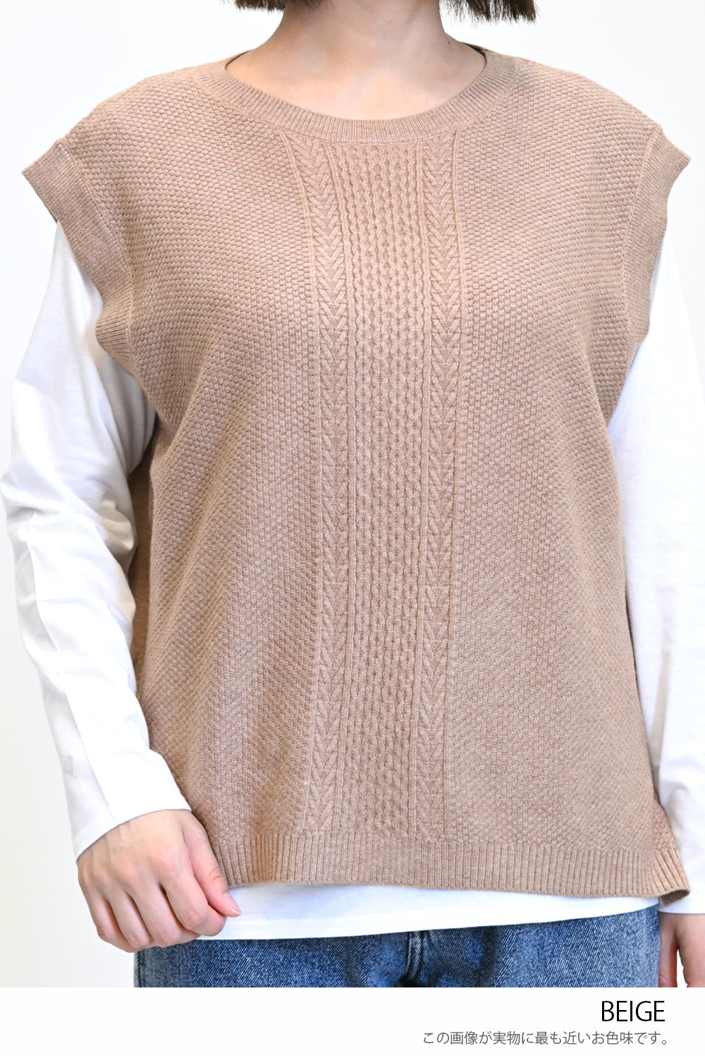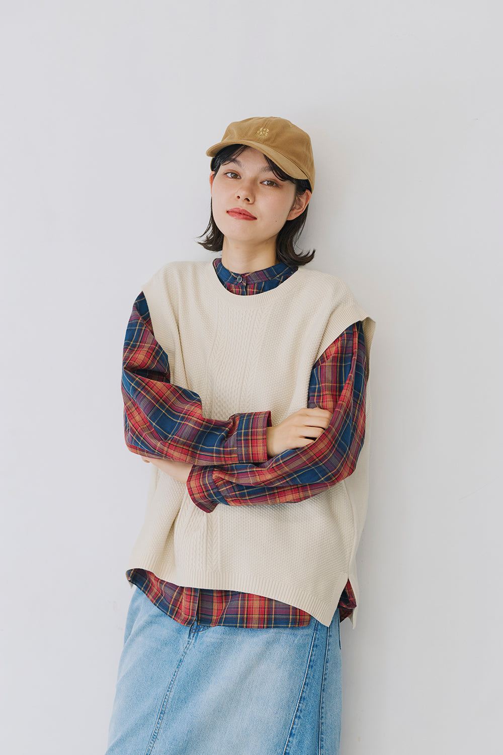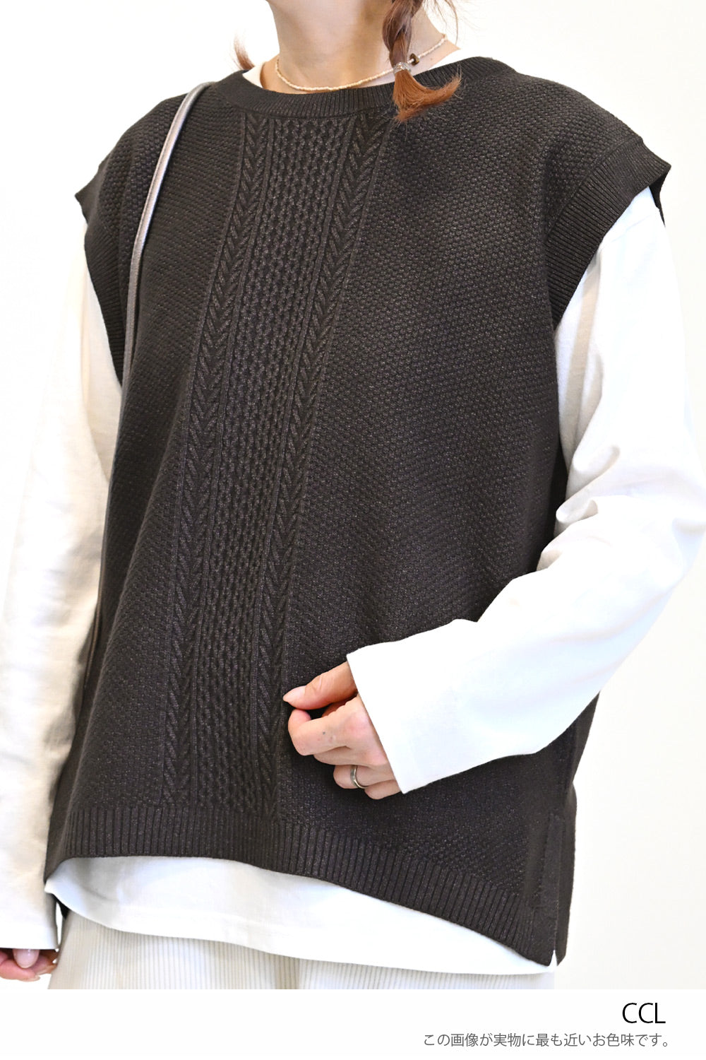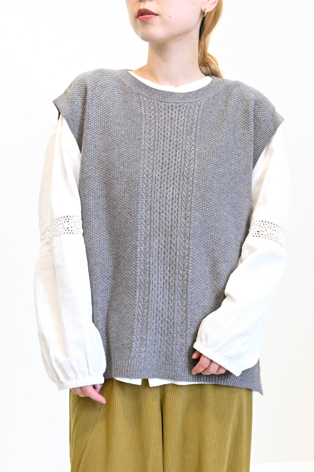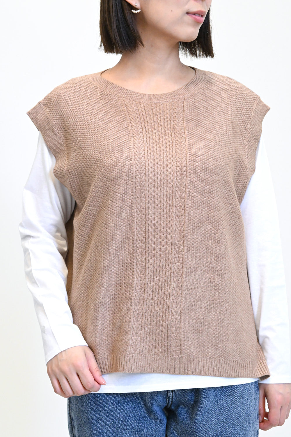 クラシックなケーブル編みが、上品さをプラスするニットベスト。