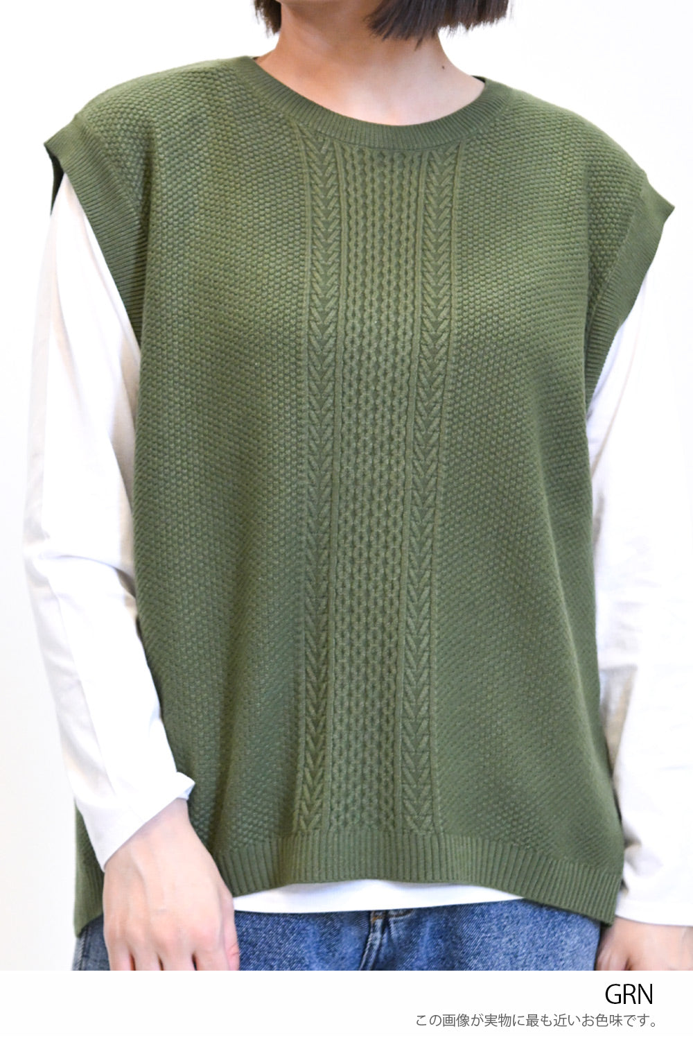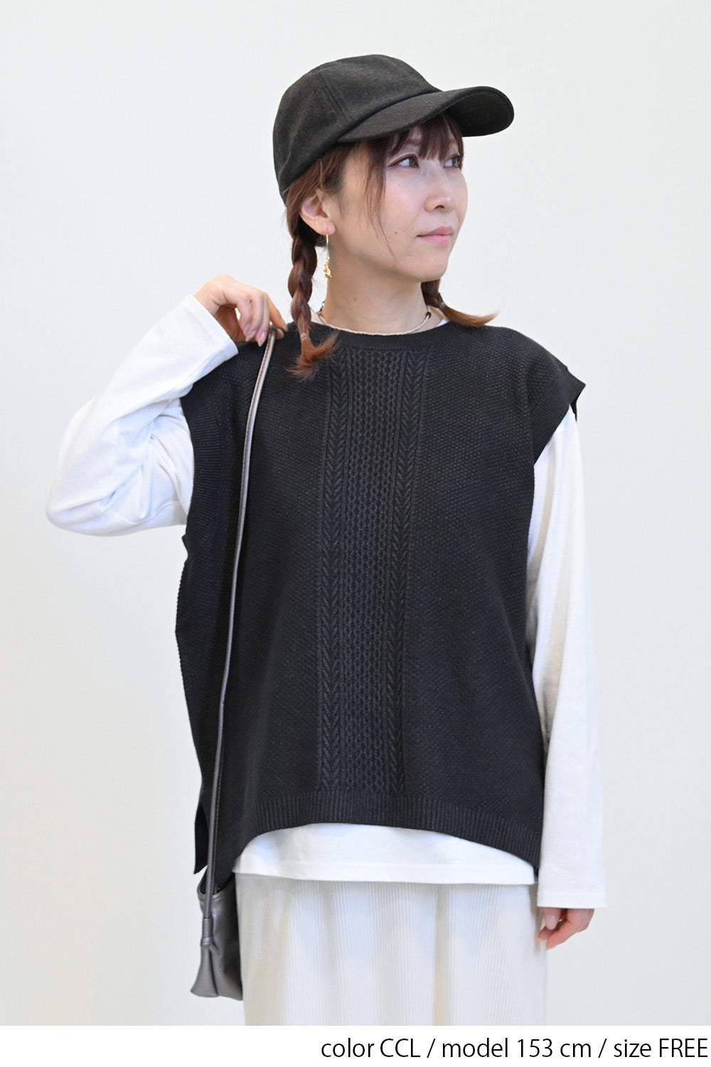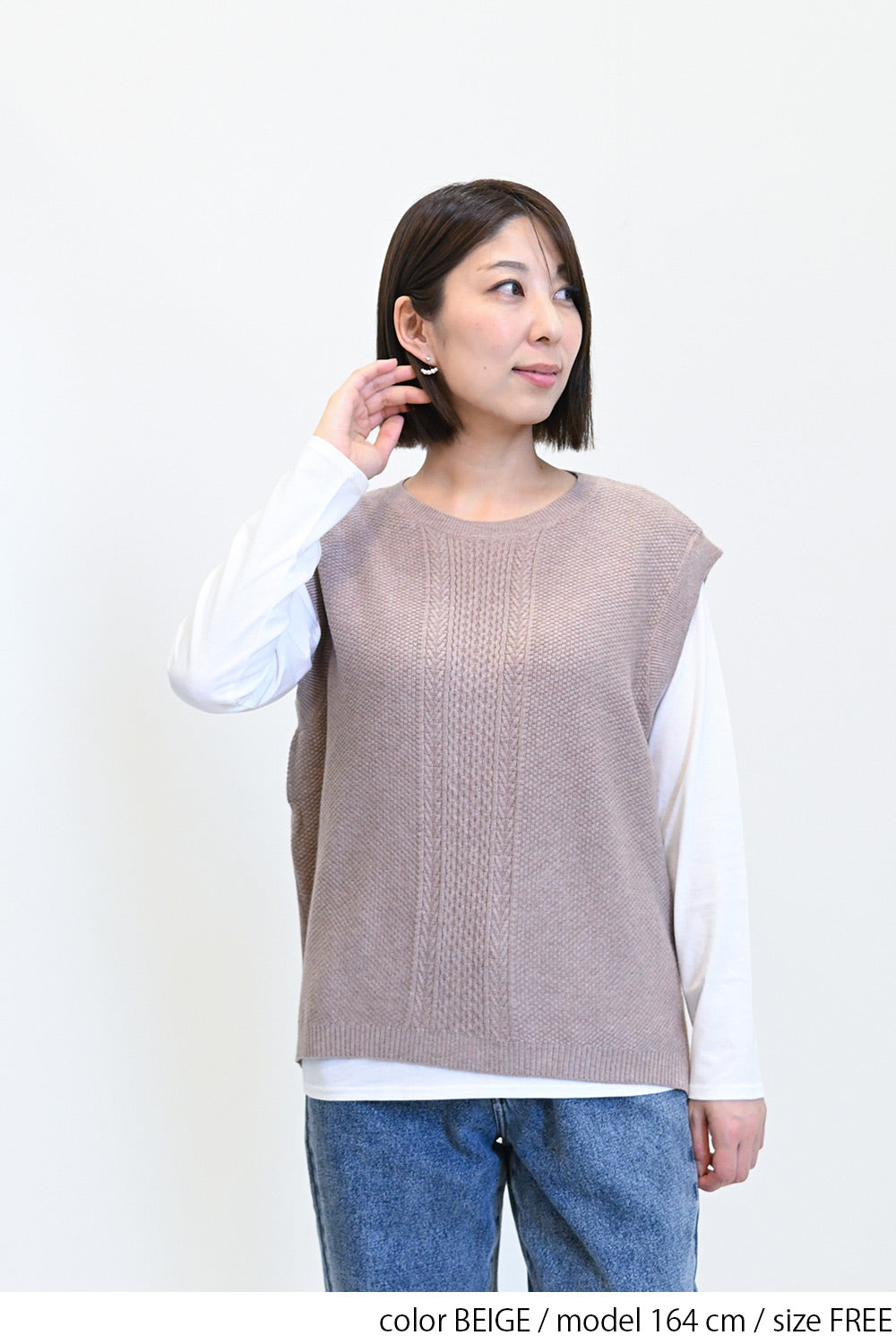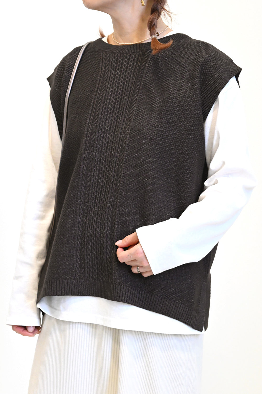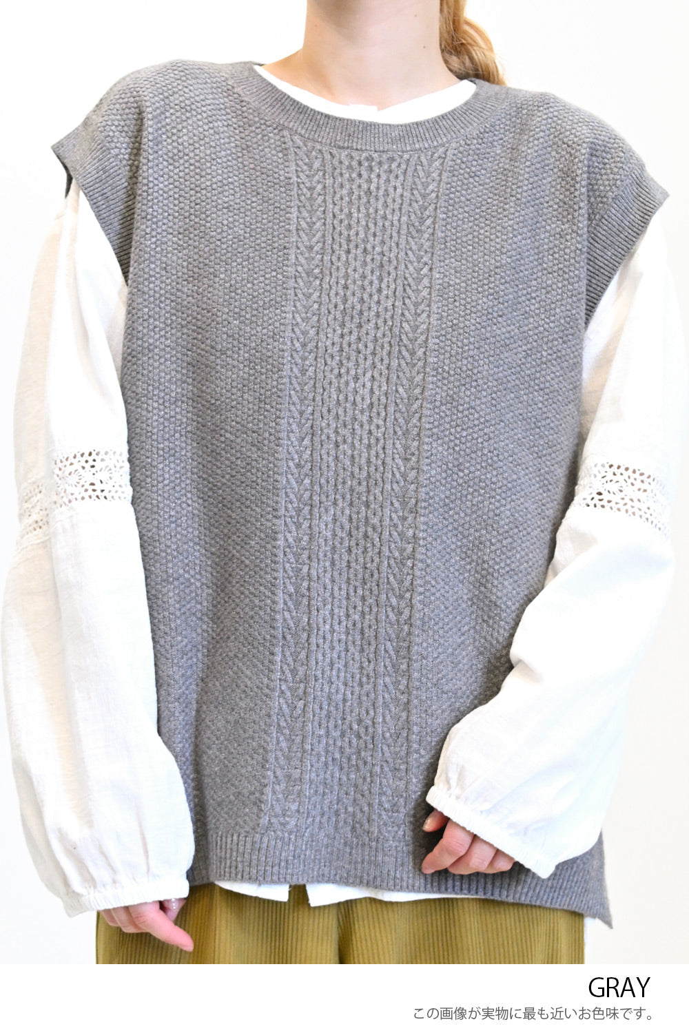 クラシックなケーブル編みが、上品さをプラスするニットベスト。