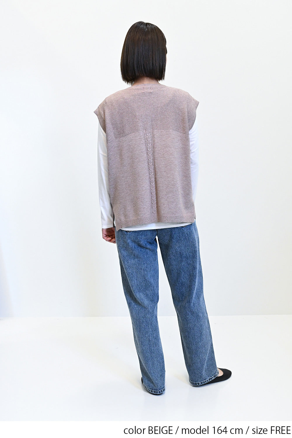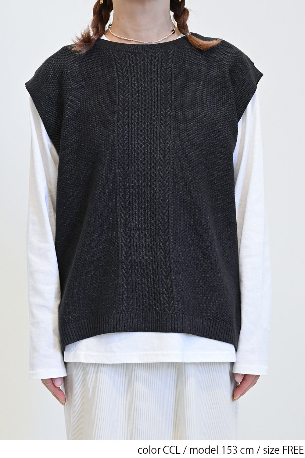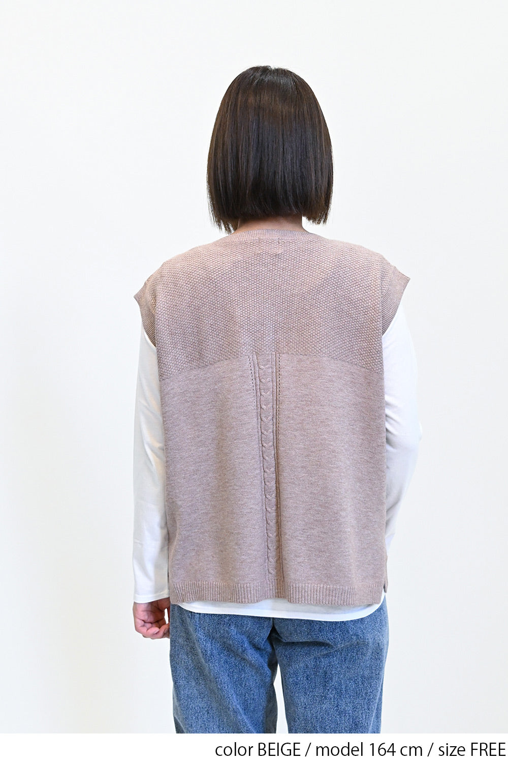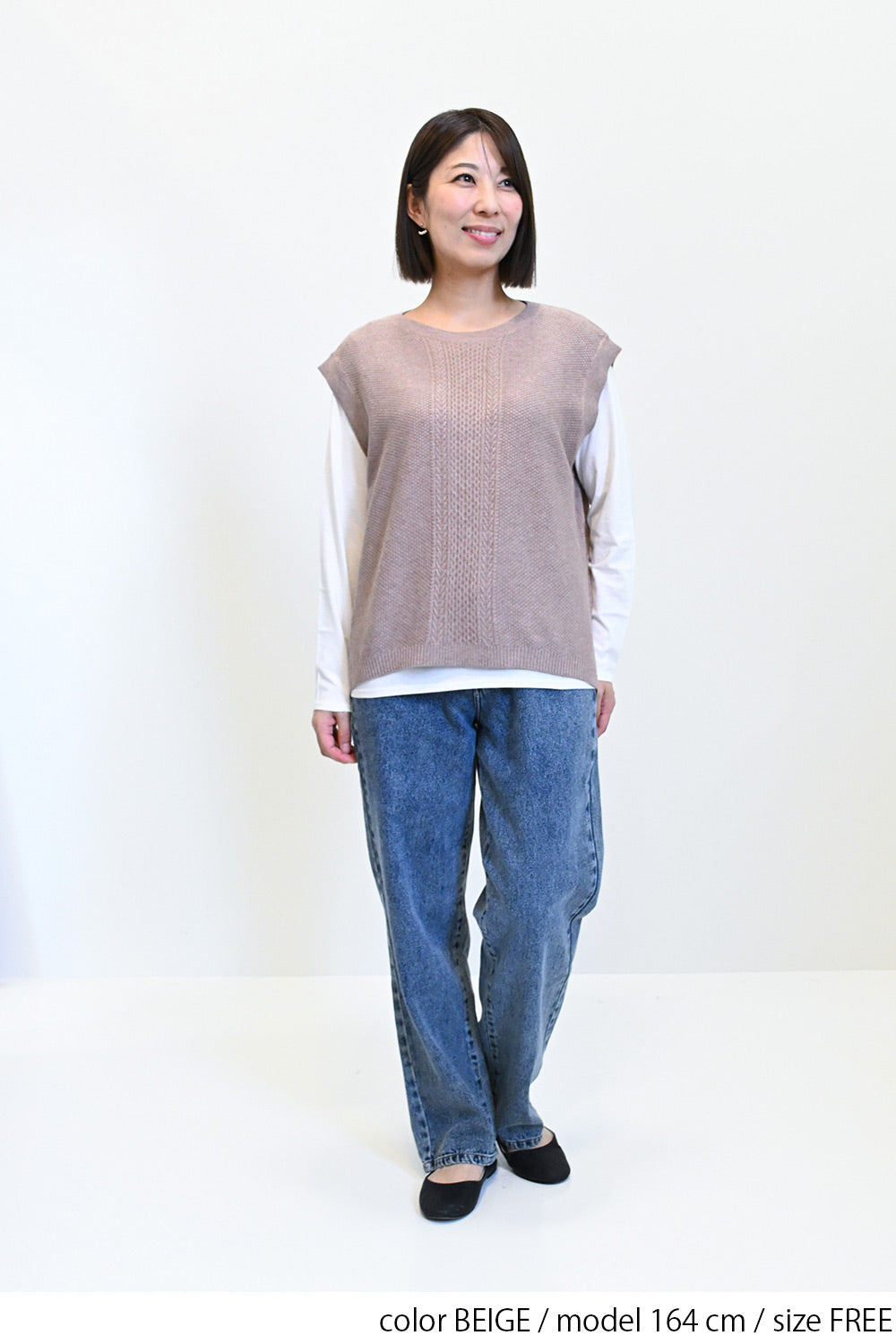 クラシックなケーブル編みが、上品さをプラスするニットベスト。