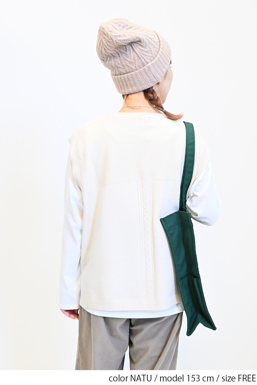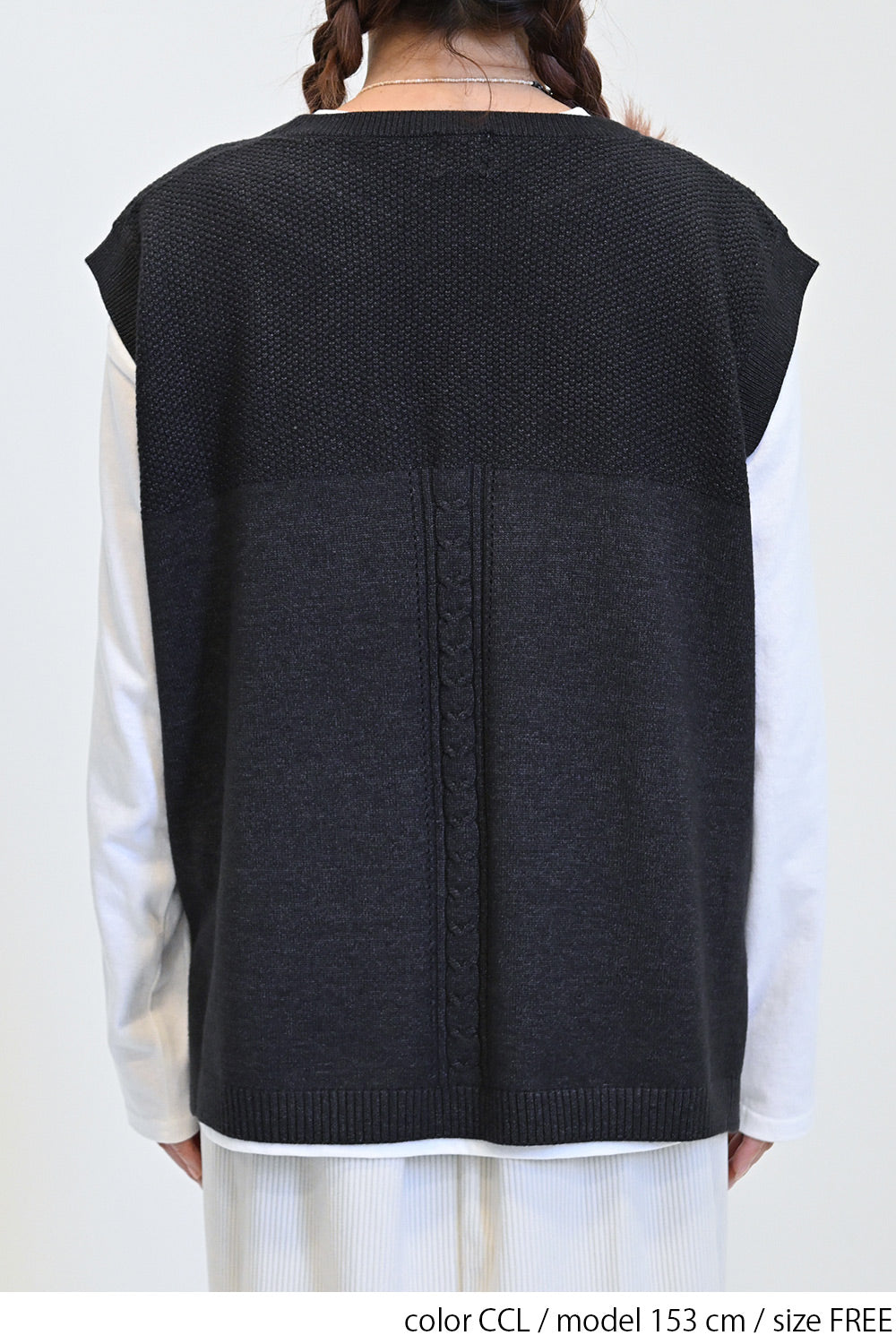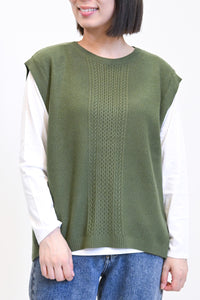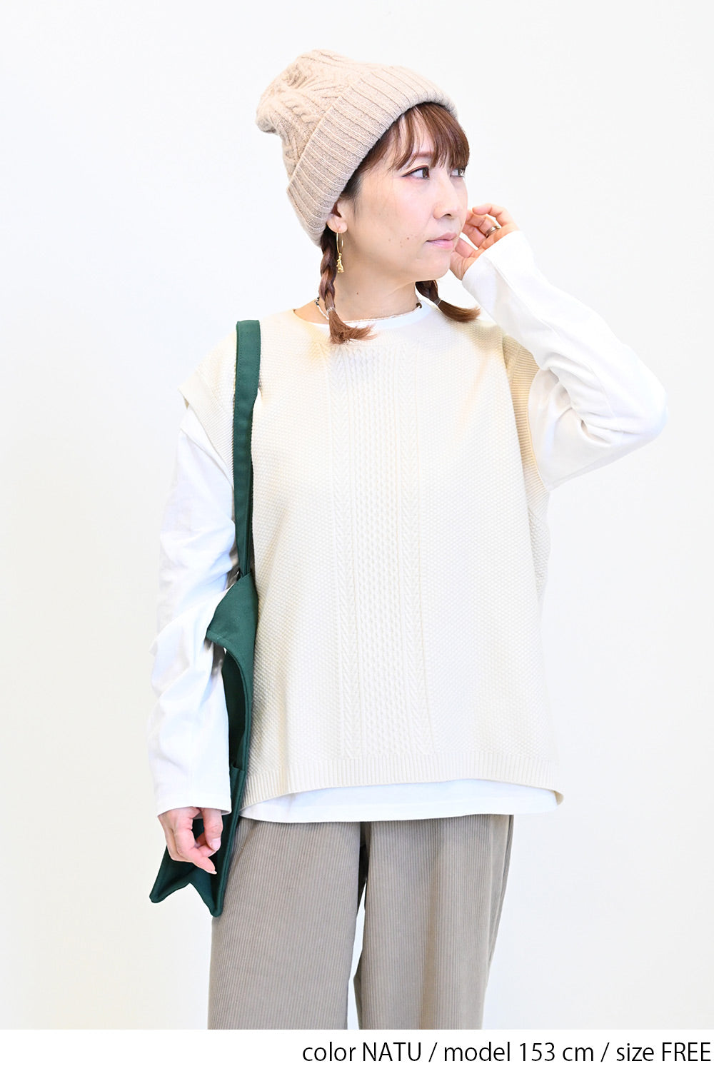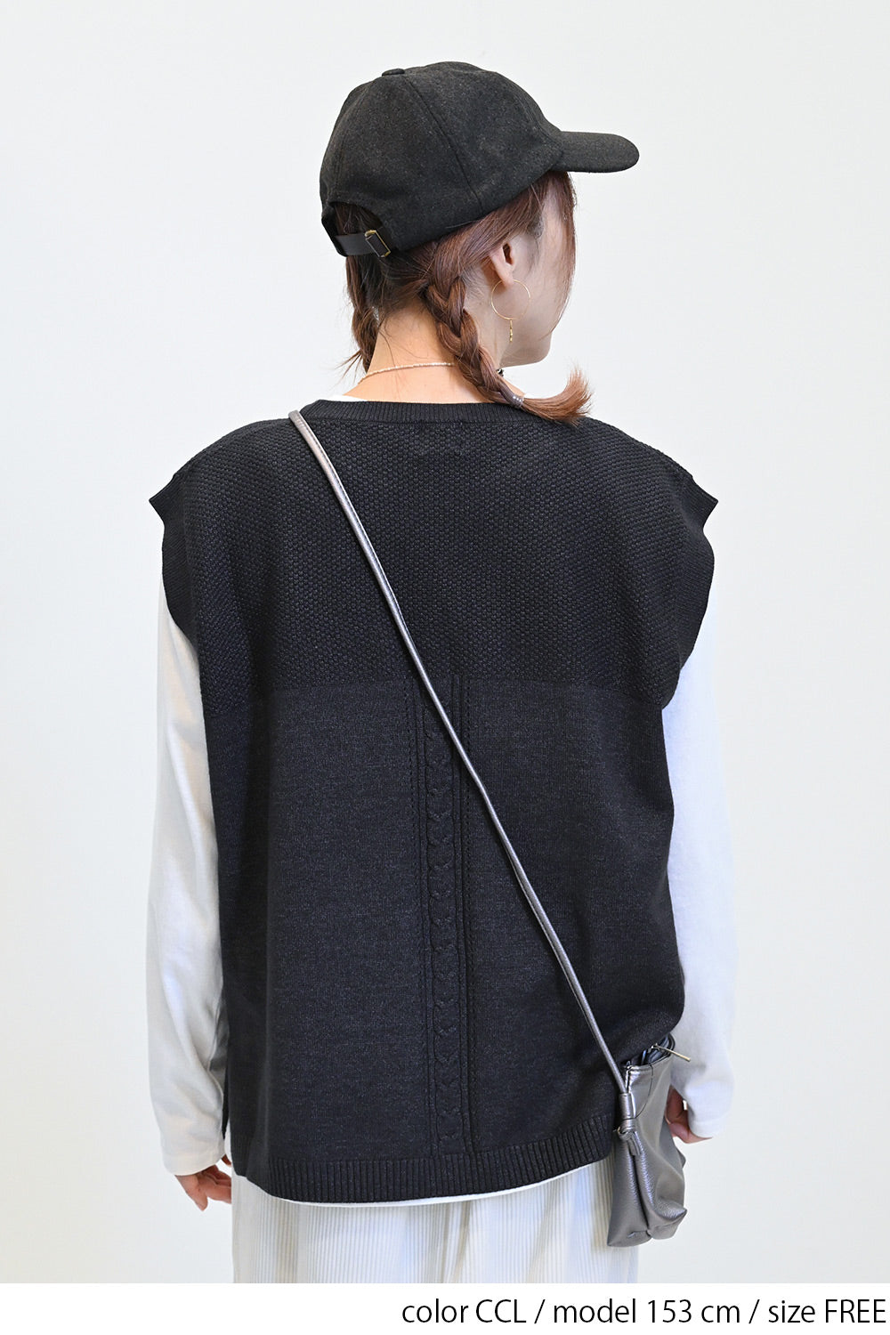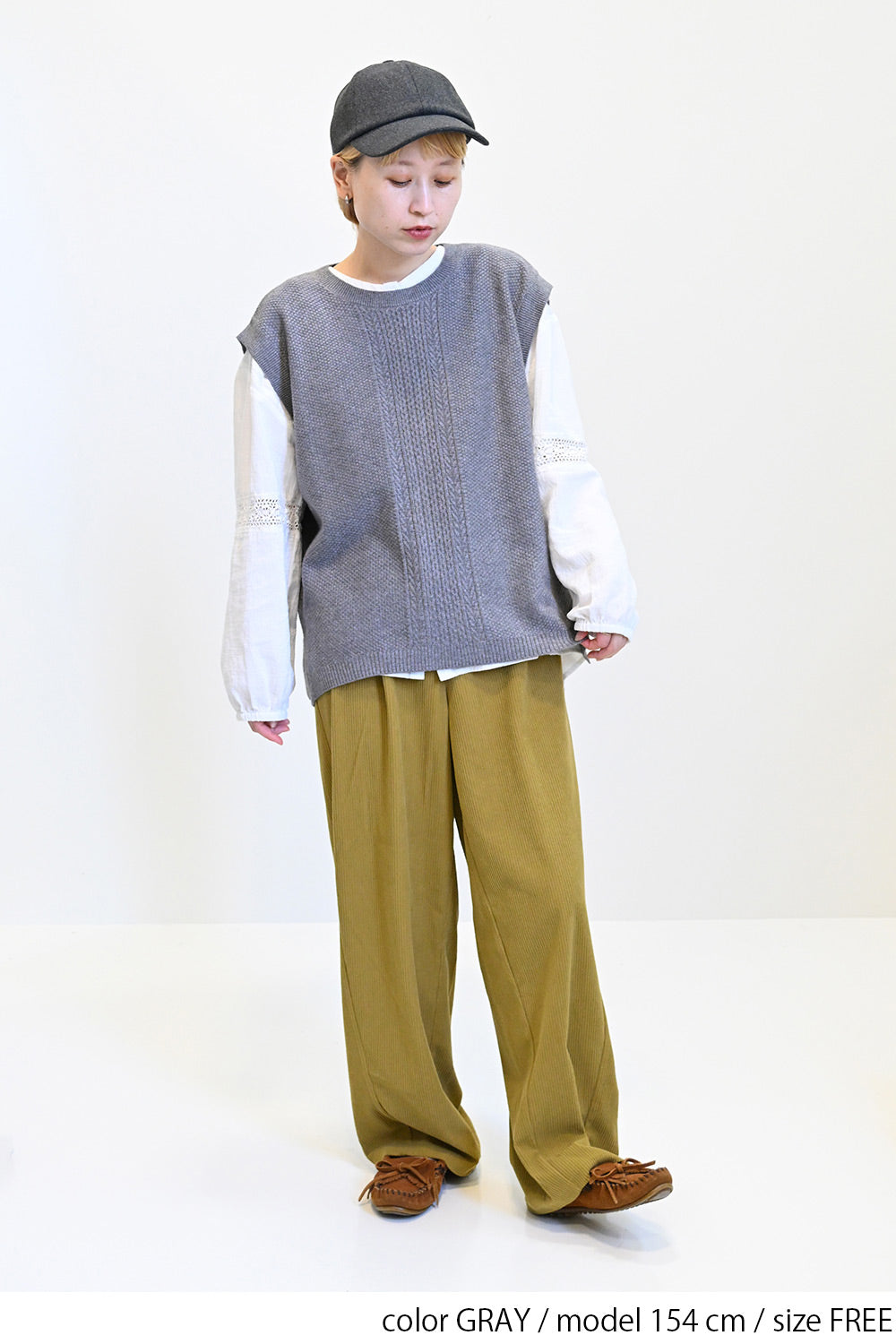 クラシックなケーブル編みが、上品さをプラスするニットベスト。