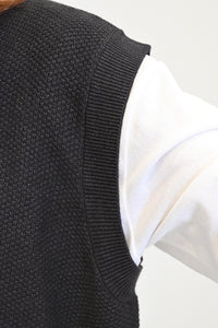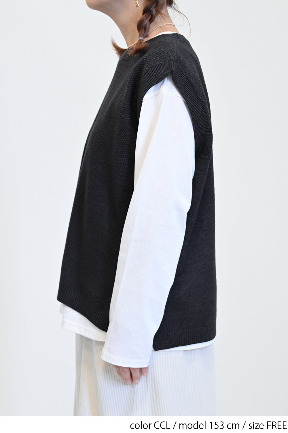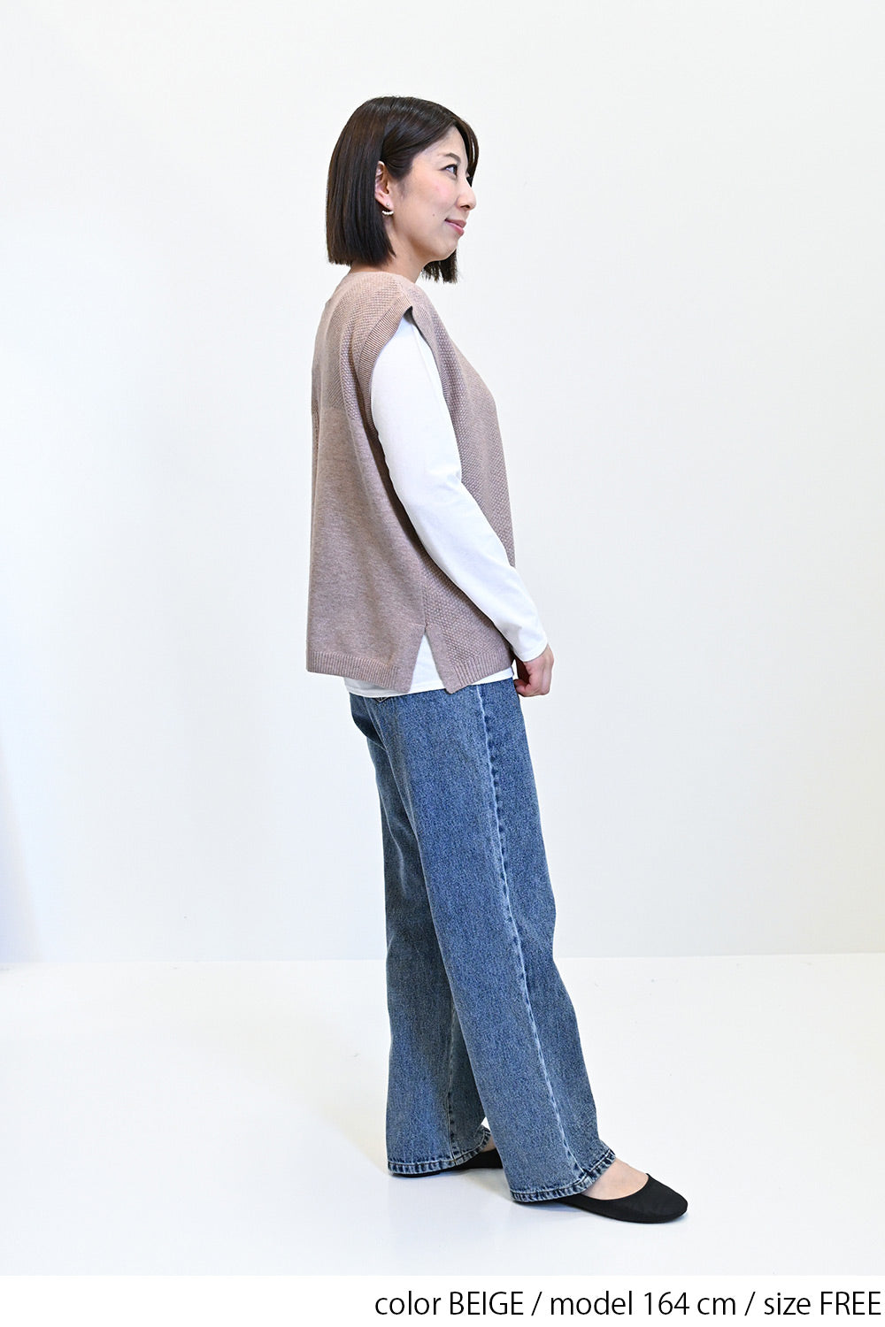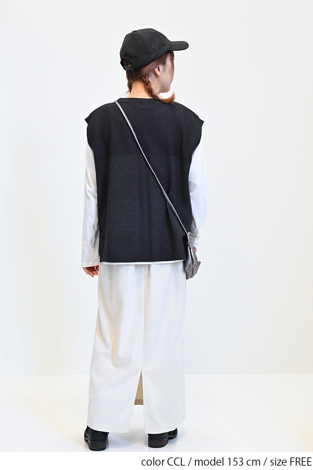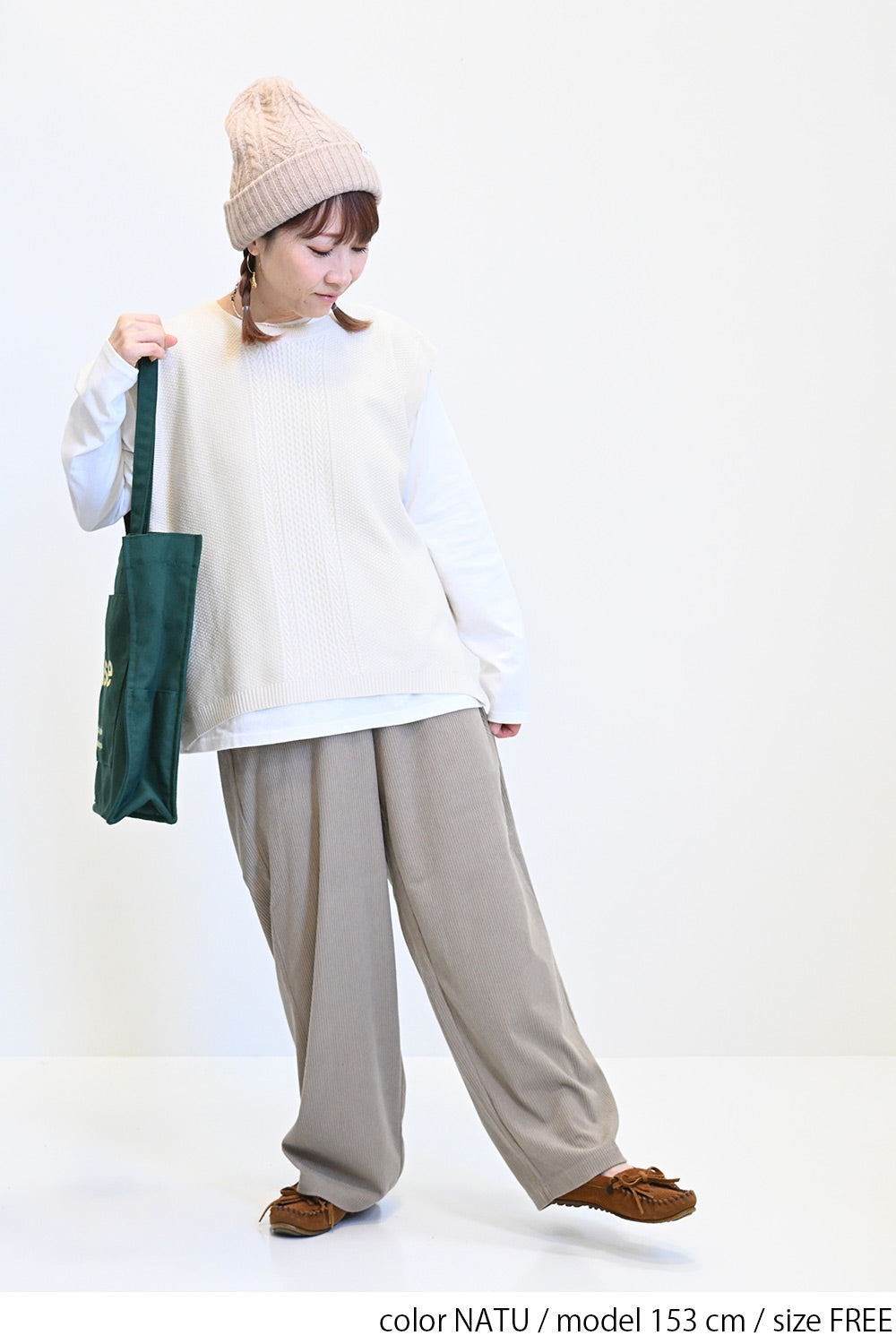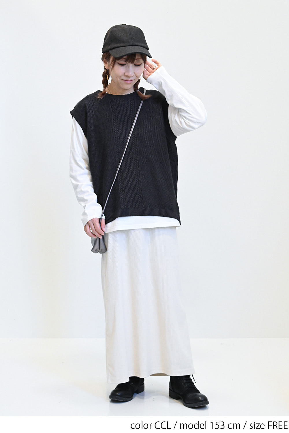 クラシックなケーブル編みが、上品さをプラスするニットベスト。